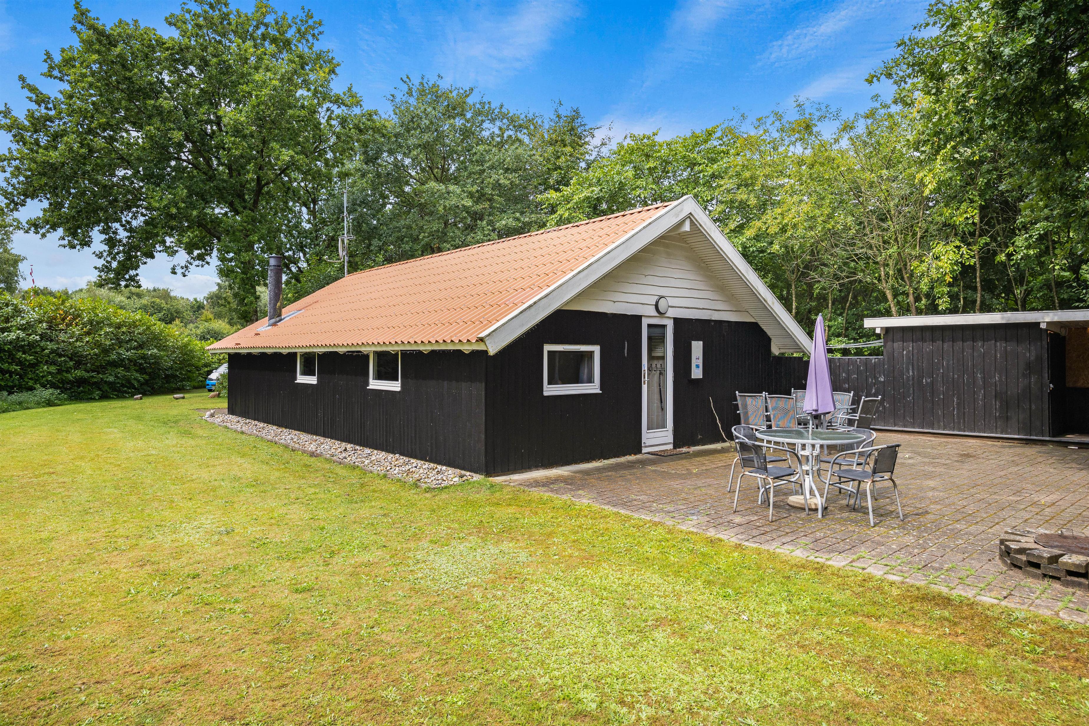 Sommerhuset Fyrrelunden 61 ligger på en stor grund omgivet af træer, så her kan I holde en uforstyrret ferie i fred og ro.