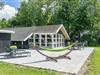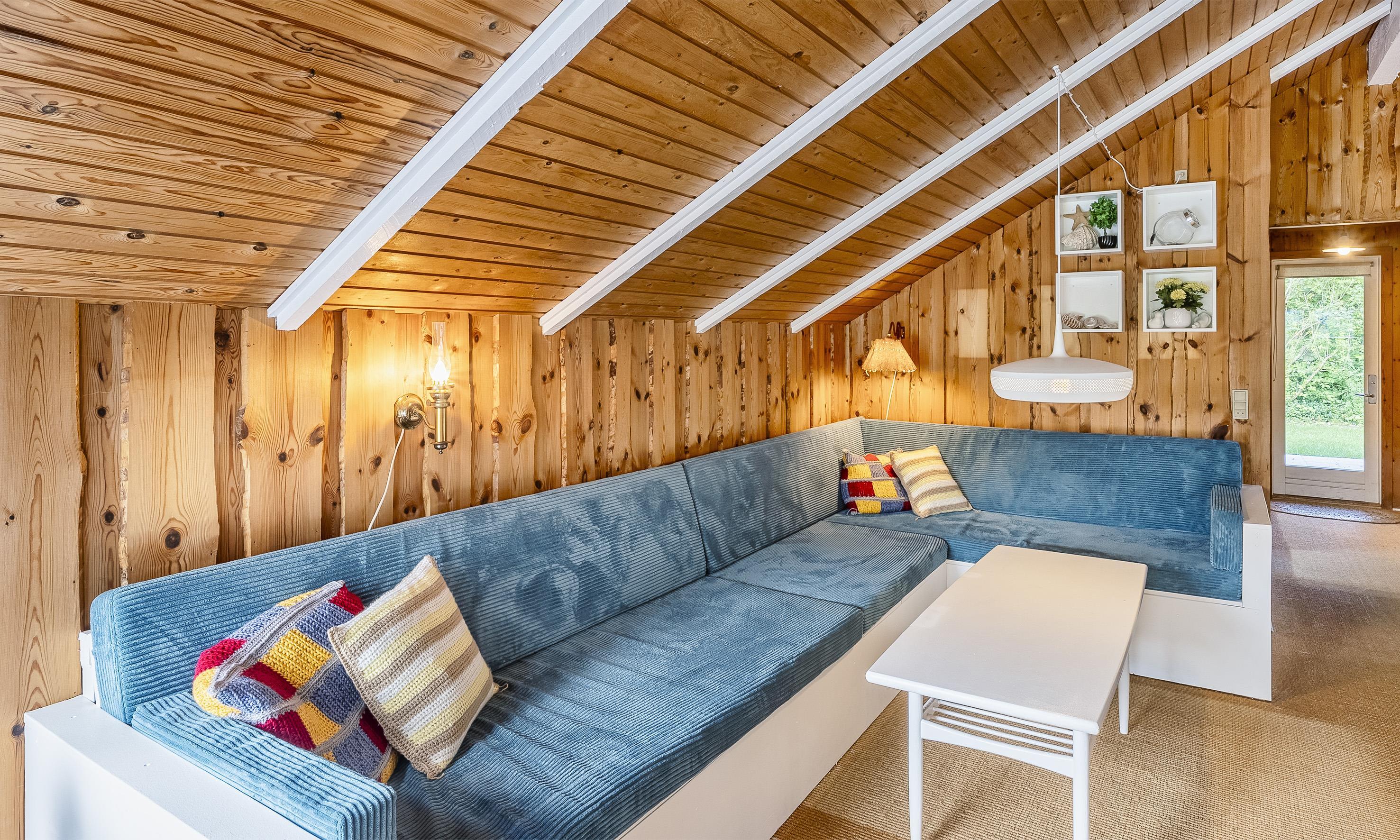 Sommerhuset er indrettet med et åbent køkken i forbindelse med spisepladsen og en stue med loft til kip samt udgang til den store terrasse. Badeværelset har toilet, håndvask og bruser. Der er to soveværelser med plads til i alt fire personer; ét med dobbeltseng og ét med to enkeltsenge (DS + 2 ES). I stuen finder du en brændeovn og energivenlig varmepumpe, som sikrer en hyggelig og behagelig varme. Den store have indbyder til mange aktiviteter for hele familien.