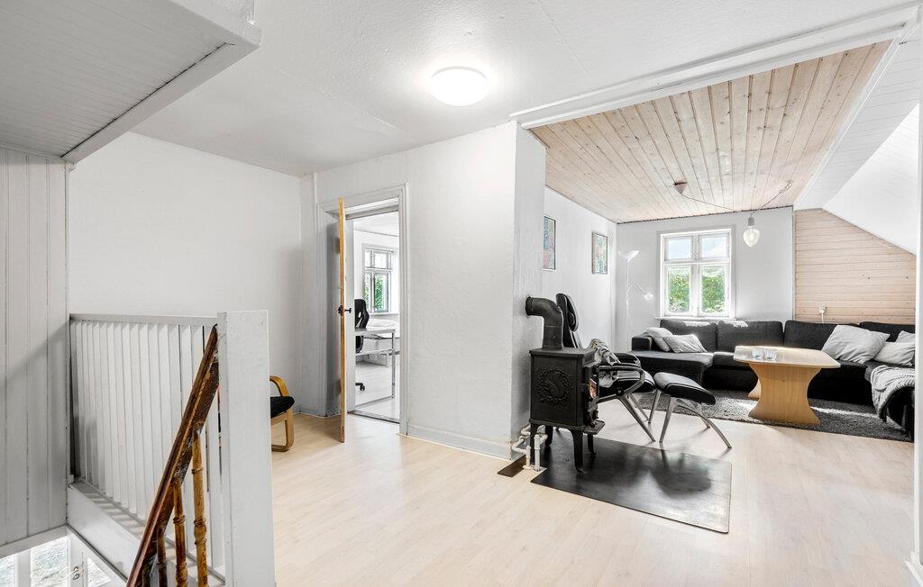 Velkommen til Jernved og denne skønne rummelige ferievilla. Her kan I bruge dagene på at lade op med hyggelige aktiviteter, nyde de charmerende rammer og glæde jer over lyset og luften. Begynd dagene med god tid til morgenmaden i det store, indbydende spisekøkken. Nyd udsigten over den grønne have, mens I planlægger jeres dag. Der er brændeovn i den klassiske stue, så I kan tænde op og mærke varmen brede sig på en kølig dag med bøger, film og brætspil på programmet.