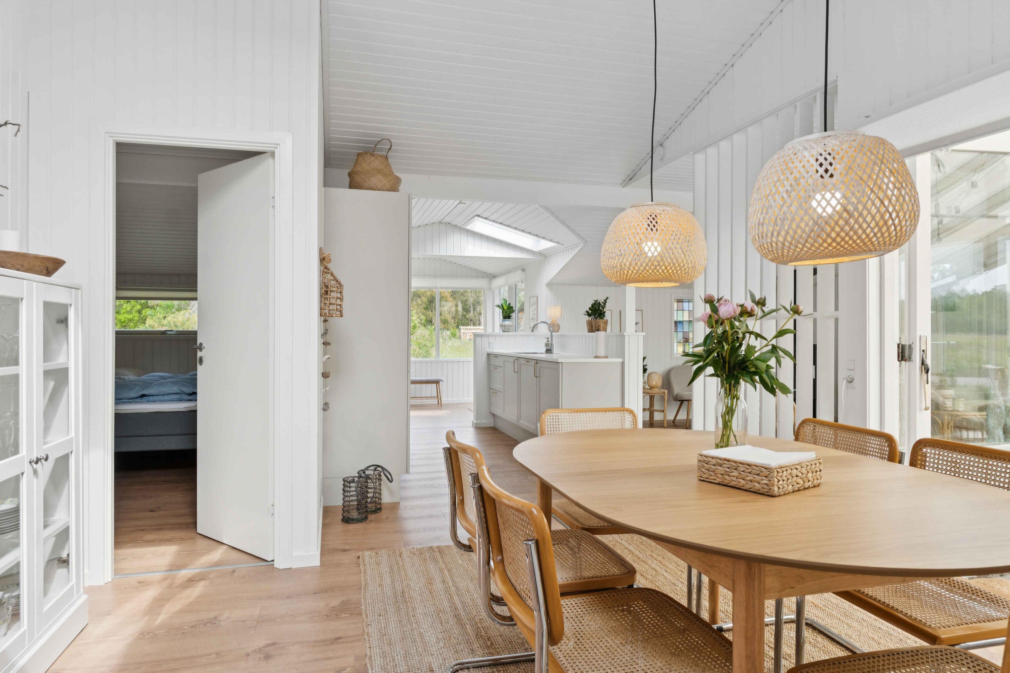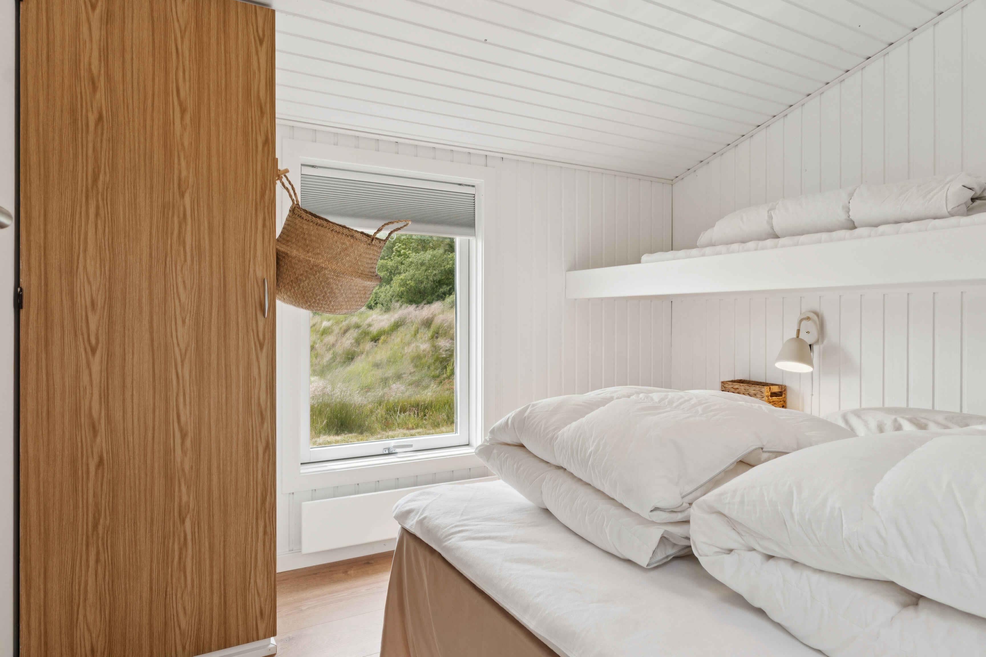 Dette sommerhus på 101 m² byder på en afslappende ferie i naturskønne omgivelser. Med tre soveværelser og 6 sovepladser er der god plads til både familie og venner. Den åbne stue samler alle omkring brændeovnen. Store vinduer giver lys og udsigt til haven. Internet sikrer, at man kan være online, hvis der er behov for det. Huset ligger ugeneret mod syd, hvor solen kan nydes hele dagen. Den store grund giver plads til leg, spil og afslapning, mens naturen danner en rolig baggrund. Kun 900 meter væk venter en børnevenlig strand. Det lave, klare vand gør den ideel til badeture, sandslotte og afslappende dage ved kysten. Området byder på storslået natur. Stier og små veje fører gennem klitlandskaber og grønne områder, perfekte til gåture og cykelture i frisk luft. Skagen ligger blot 30 km væk. Byen frister med kunst, kultur og charmerende havnemiljø. Her kan man besøge Grenen, spise frisk fisk eller opleve de berømte museer. Sommerhuset er et oplagt valg for dem, der ønsker fredelige omgivelser, nærhed til naturen og kort afstand til både strand og spændende udflugtsmål.