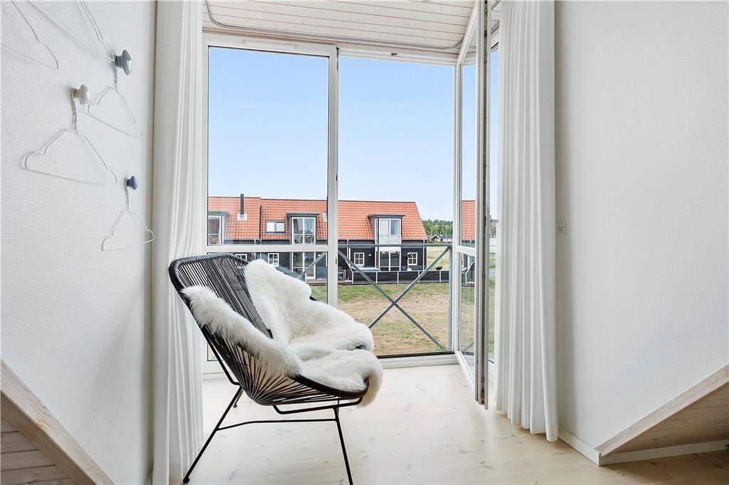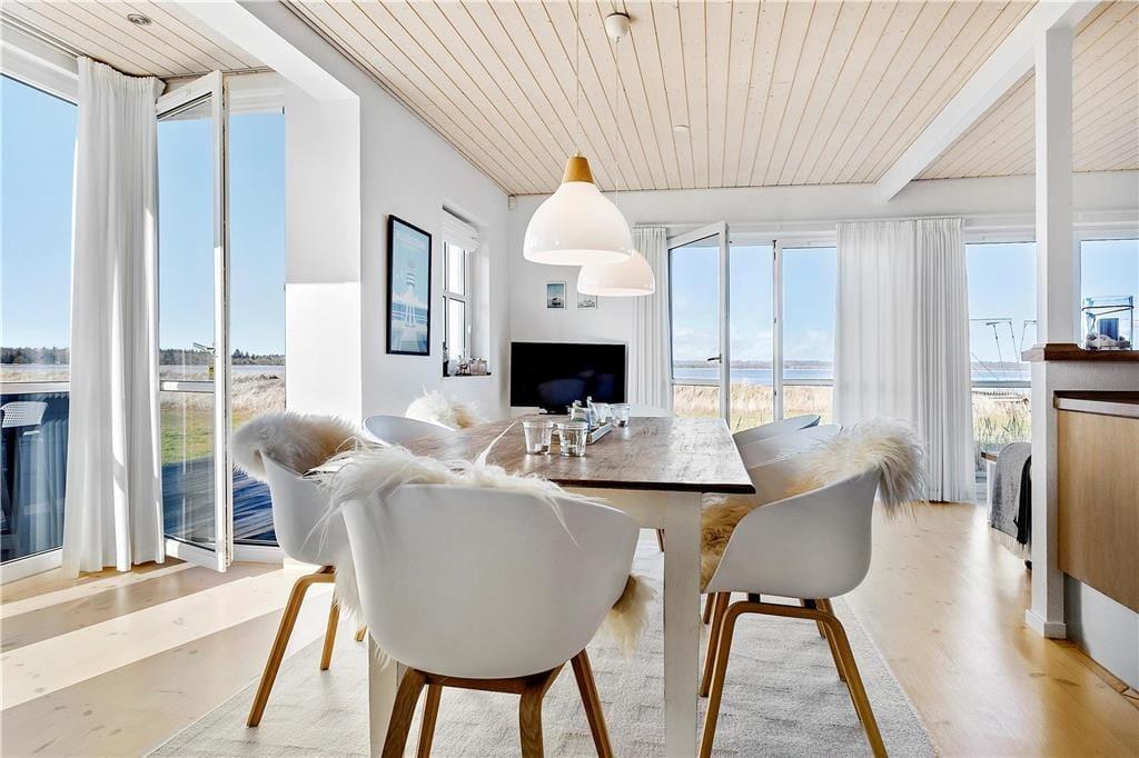Når du stiger ud af sengen, møder lyset dig fra alle sider, her træder solopgangens glødende stråler ind i rummet. Fra ferieboligen er der udsigt til lystbådehavnen, Sandbjergvig Bugten, hvor Palsgaard Gods troner i det fjerne, sammen med skov og strand. Velkommen til et sted, hvor hver dag begynder med et maleri af naturens egen skønhed.