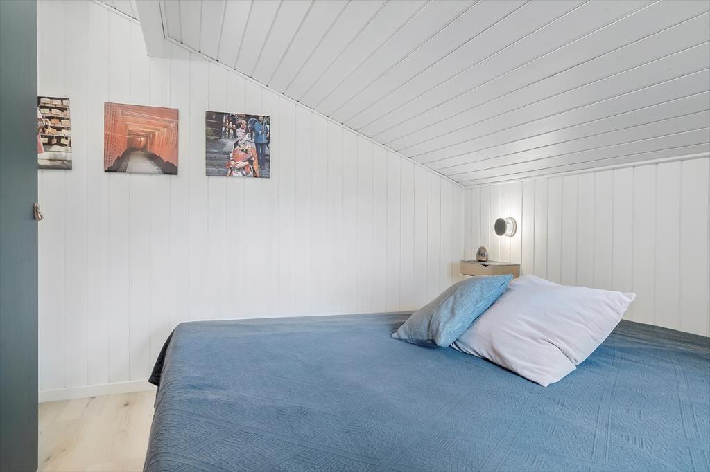 Huset har plads til 6 voksne feriegæster og 2 børn. Sengepladserne fordeler sig på 2 soveværelser med dobbeltseng, hvoraf det ene også har køjeseng samt en alkove, og en hems til børnene.