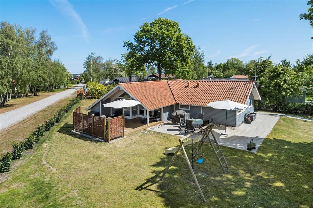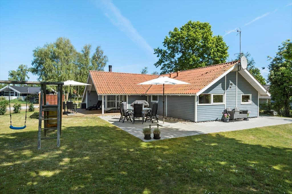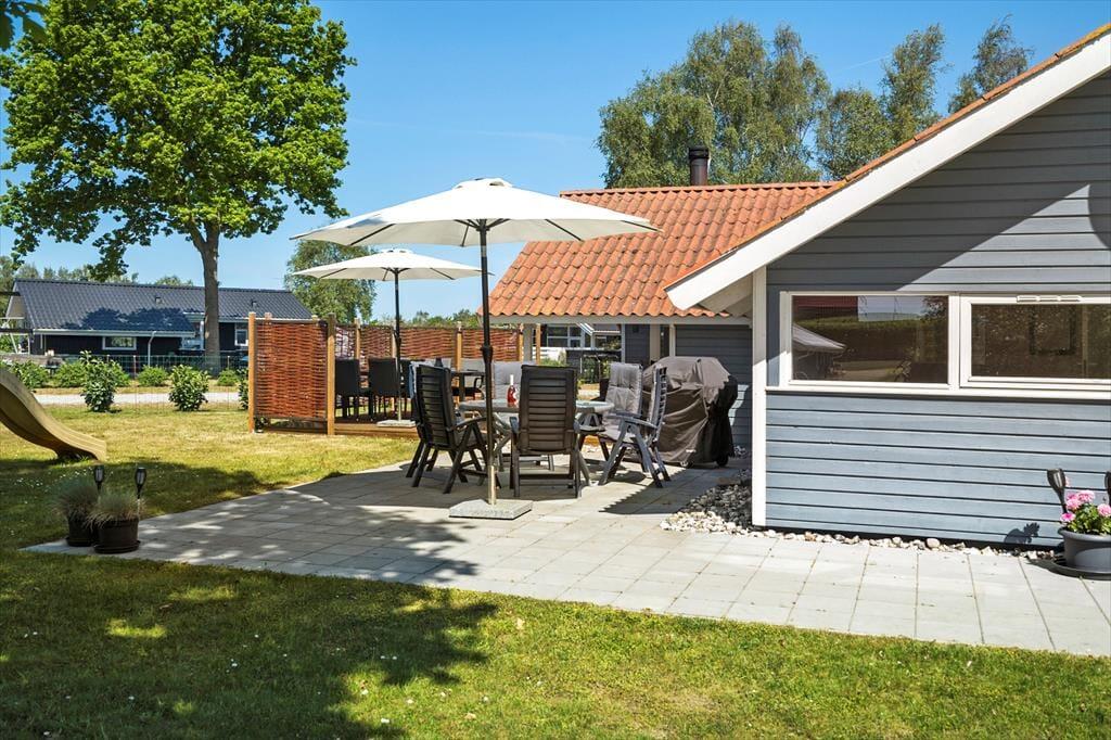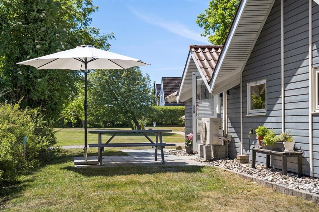 I haven omkring huset er mange muligheder for at finde et hyggeligt hjørne med eller uden skygge på huset terrasser, som er både åbne og overdækket. Her finder I flere havemøbler, liggestole og parasoller, så der er lidt til et hvert behov og ønske.