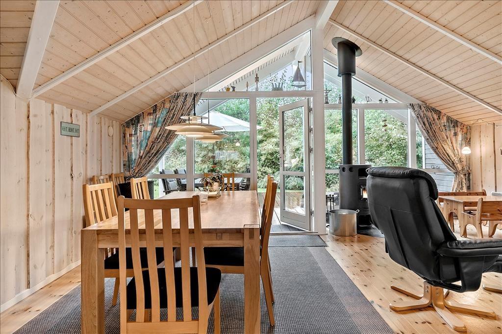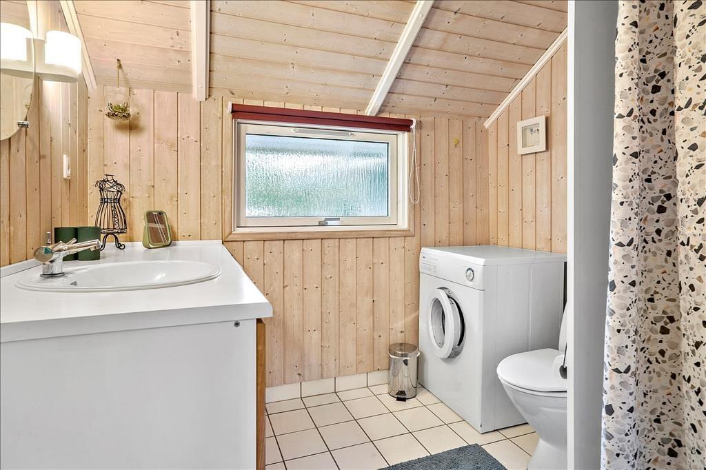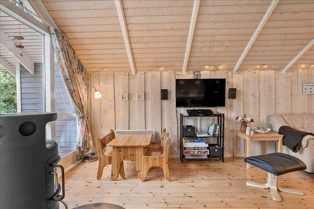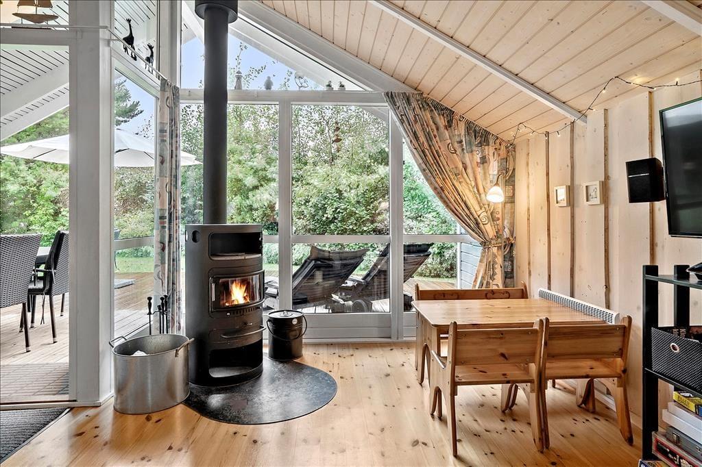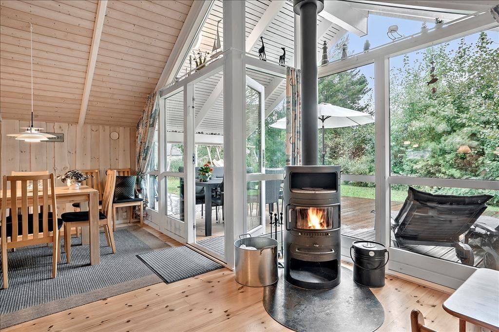 Sommerhuset har hele 3 soverum, køkken/alrum, hyggelig stue med brændeovn og badeværelse med toilet, brus, vaskemaskine og tørretumbler.