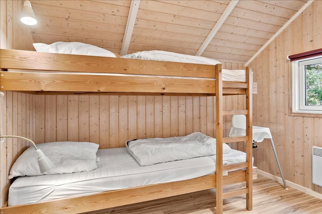 Sovepladserne i huset er fordelt på to soverum med gode dobbeltsenge og et soverum med køjeseng.