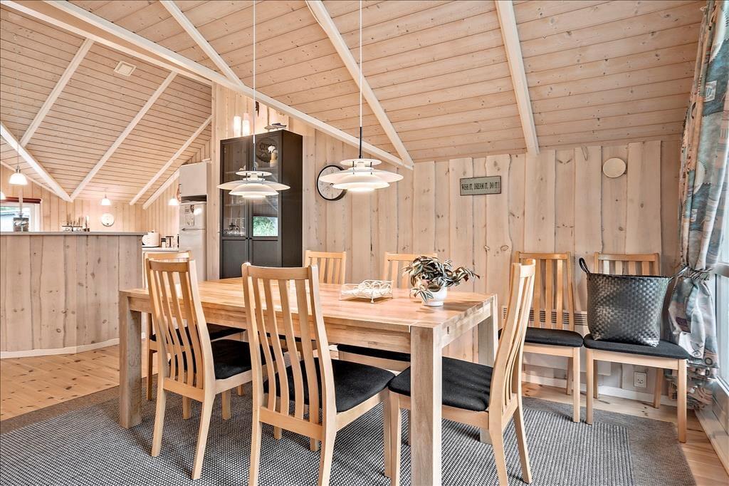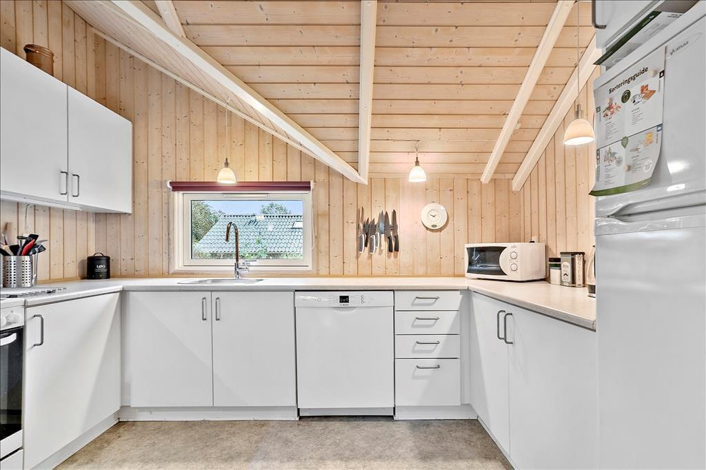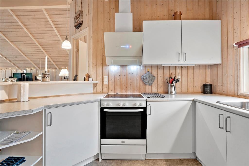 Huset køkken indeholder alt hvad der er brug for under jeres ophold, og er i direkte forbindelse med spiseplads og stue.