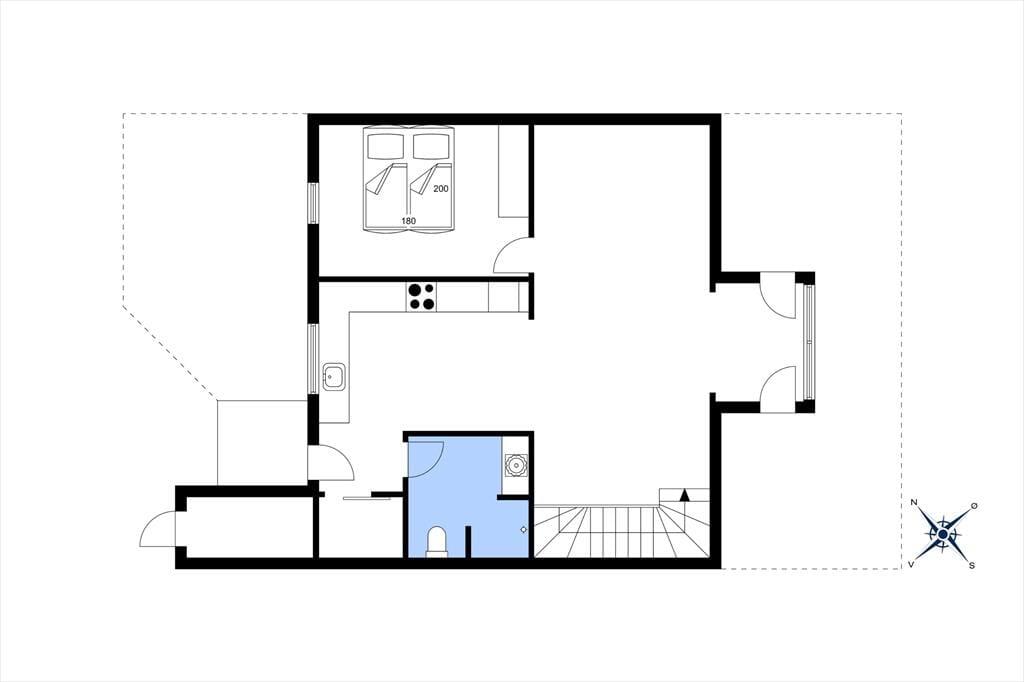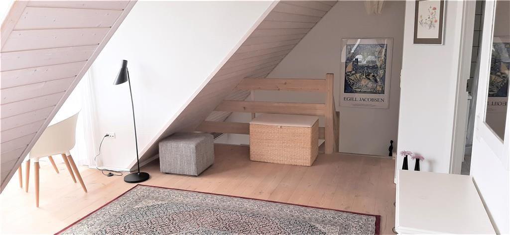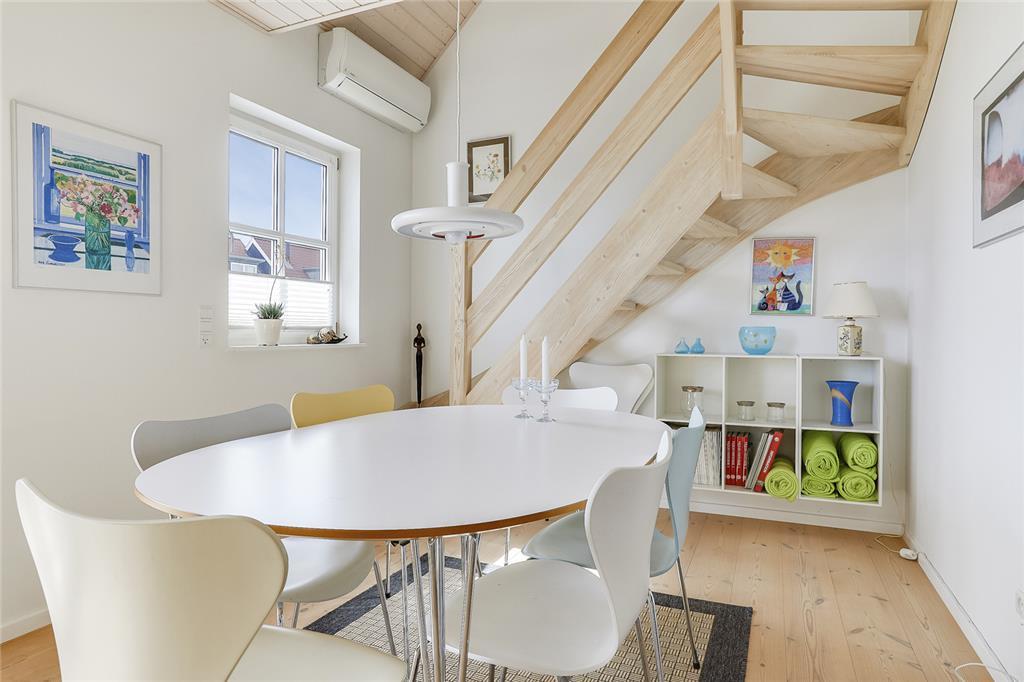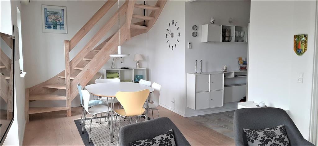 Strandengens lejligheder er individuelt indrettede og denne lejlighed er ingen undtagelse. I stueplan er der stor lys og smagfuldt indrettet stue og køkken-alrum. Derudover bad og et soverum med en dobbeltseng.