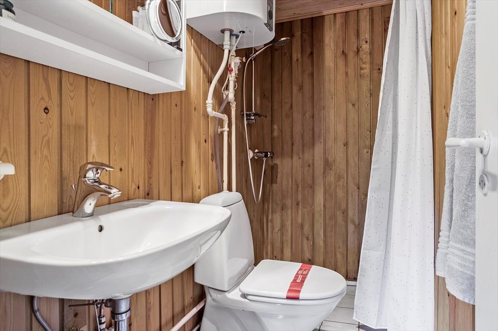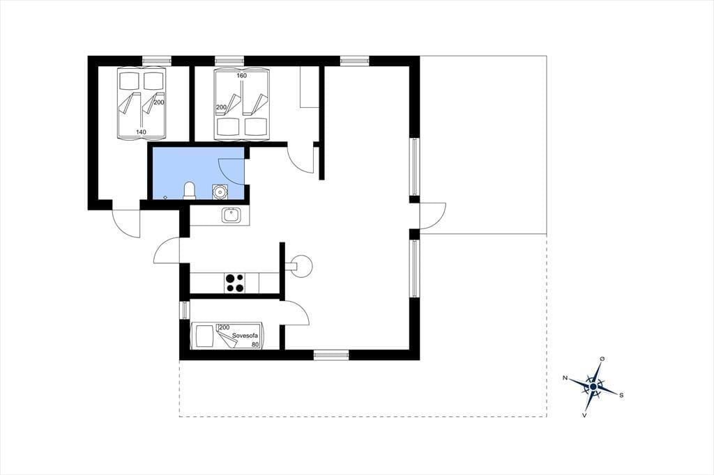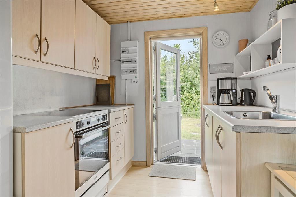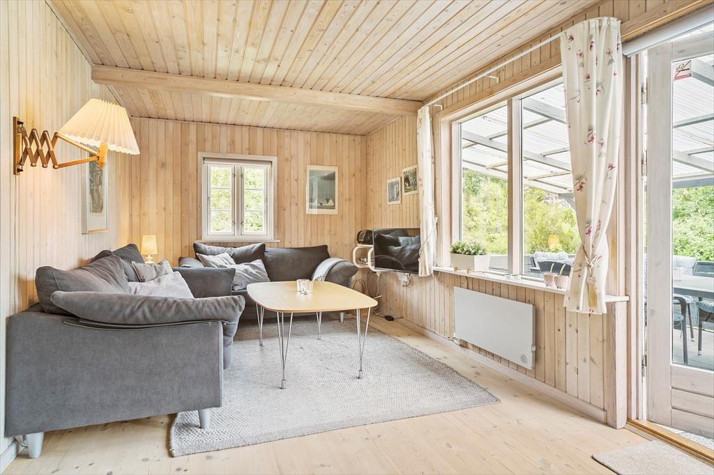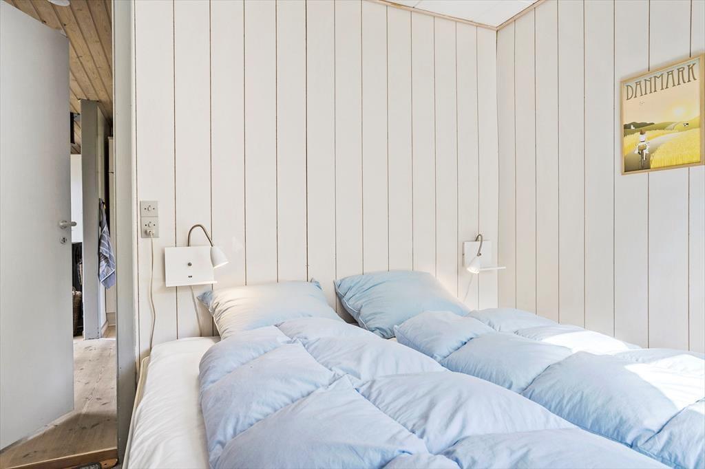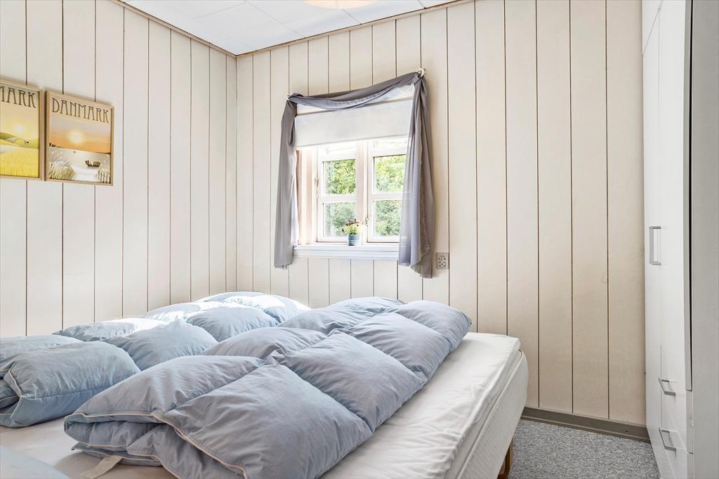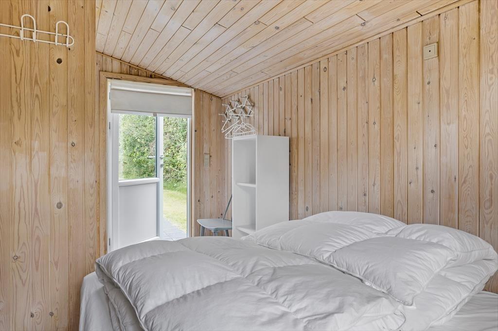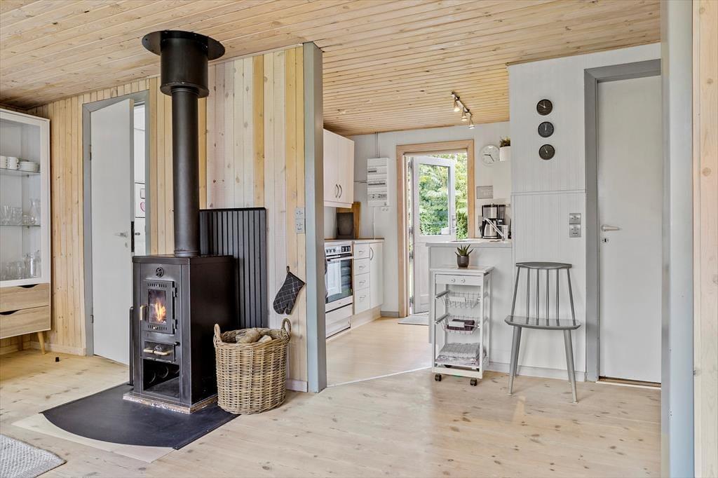 Dette er det ideelle sommerhus til at nyde hinandens selskab og lade feriestemningen indfinde sig. Sommerhuset er som et rigtigt sommerhus skal være med en afslappet og hyggeligt indretning. Husets indgang leder dig direkte ind i køkkenet som er i åben forbindelse med stuen. Stuen har et hyggeligt sofahjørne hvor også husets TV står. I stuen er der også brændeovn til de kolde aftener samt spiseplads. Huset har i alt 5 sovepladser fordelt på 2 værelser med dobbeltseng samt et værelse med en dobbelt sovesofa. Det ene soveværelse med dobbeltseng har adgang udefra. Derudover badeværelse med brus.