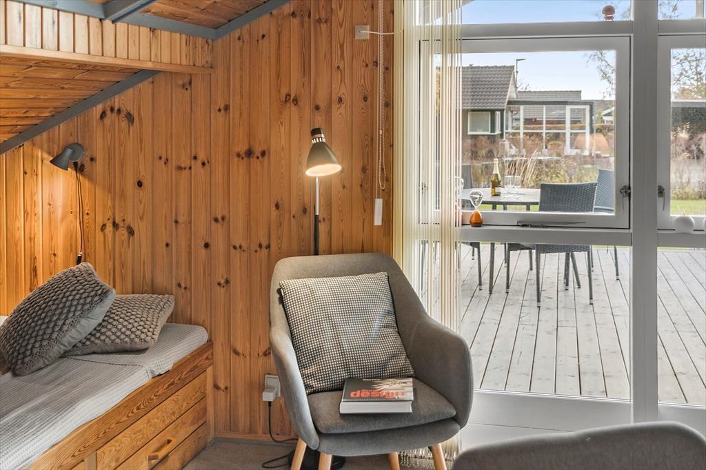 Stuen med sofahjørne hænger fint sammen med resten af køkken/alrummet. Fra sofaen kan man nyde de store vinduer, læse en god bog eller tænde for Tv’et, der har både danske, tyske, norske og svenske kanaler. I huset er der også gratis Wi-Fi. I den hyggelige alkove i stuen er der også 2 gode sovepladser, hvor man kan trække sig lidt tilbage og slappe af i puderne eller benytte alkoven som ekstra sovepladser.