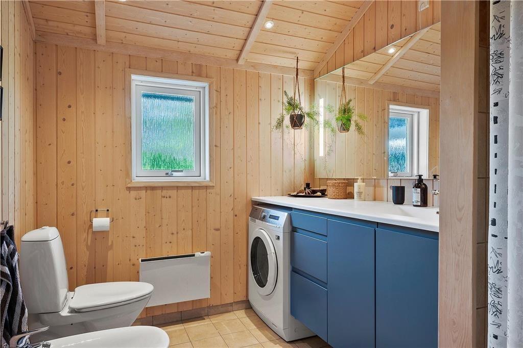 Badeværelset er med brus og vaskemaskine og pænt moderniseret.