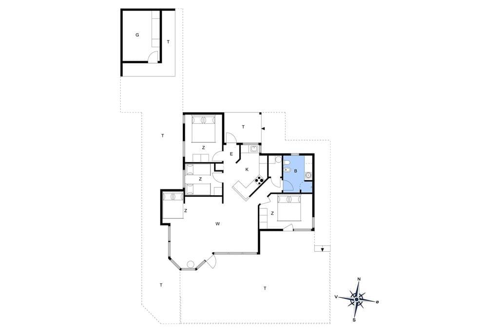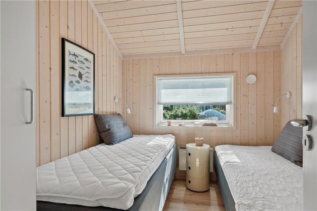 Sommerhusets sengepladser fordeler sig på 3 værelser med henholdsvis 2 dobbeltsenge og 2 enkeltsenge.
