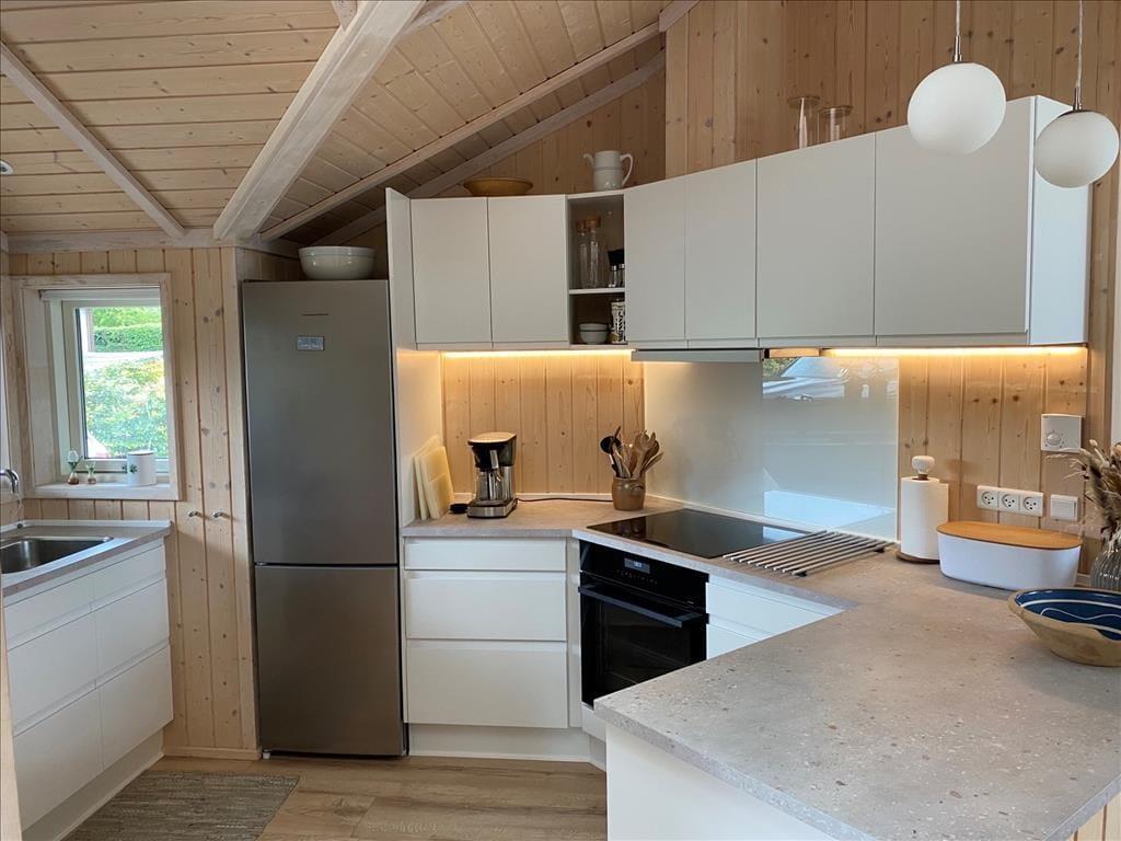 Husets hjerte er det store åbne køkkenalrum hvor der er plads til hygge og samvær om det store spisebord. Er det tid til tv er alkoven oplagt at lægge sig godt tilrette i mens der ses en film på tv'et, som har både danske og tyske kanaler. Huset har også internet.