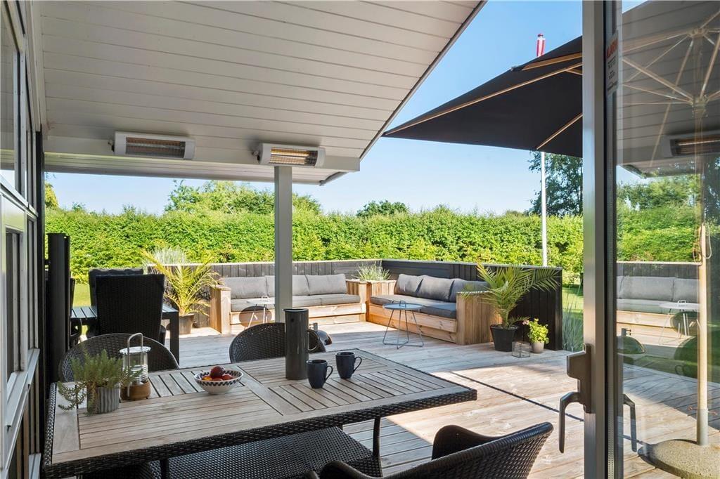 Den store terrasse emmer af hygge og indbyder til til at nyde udelivet enter under den overdækkede terrasse eller i loungemøblerne. Her er også grill til fri afbenyttelse.