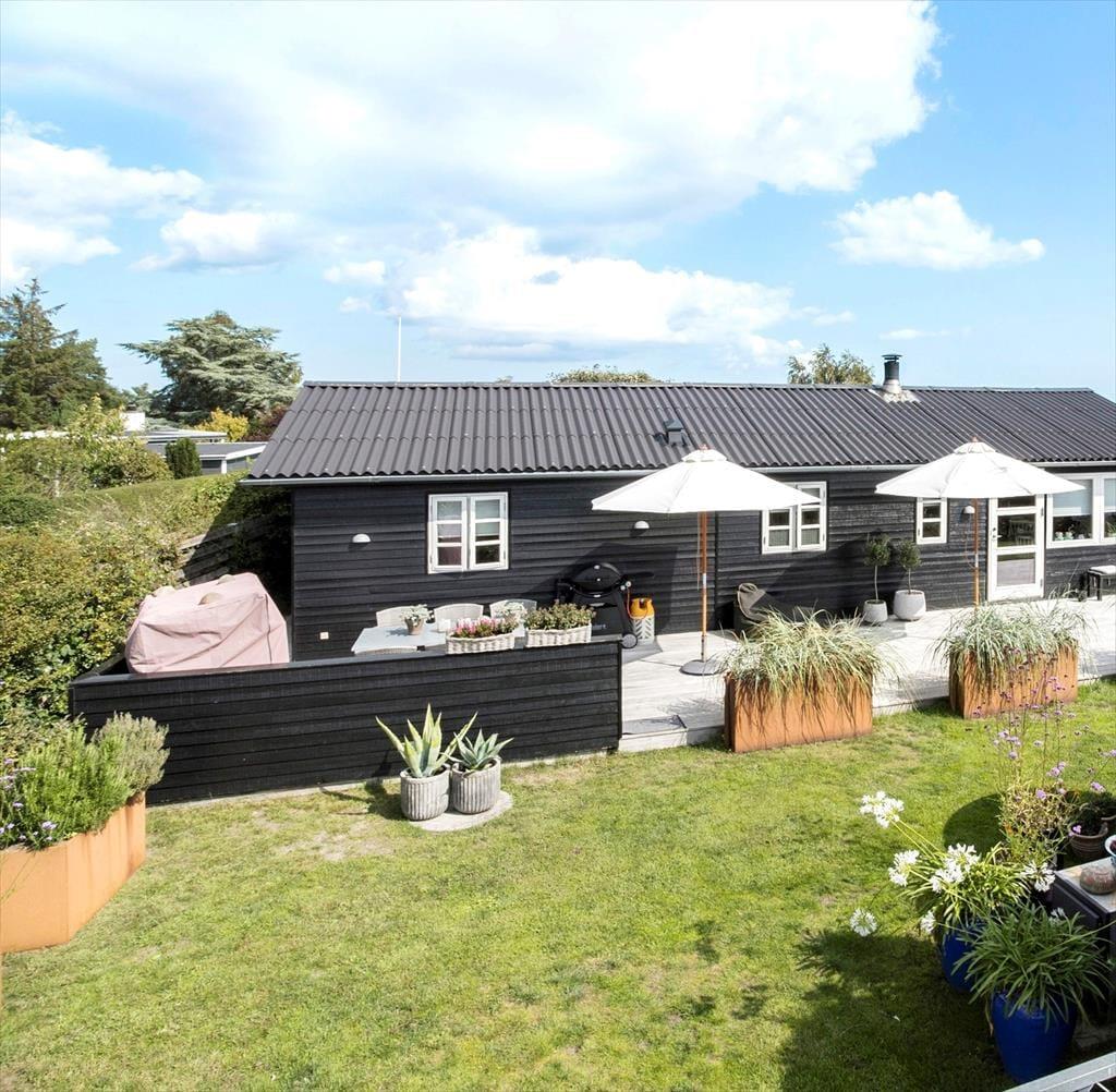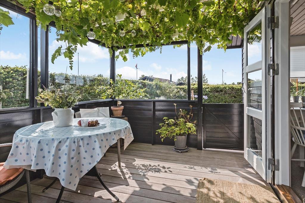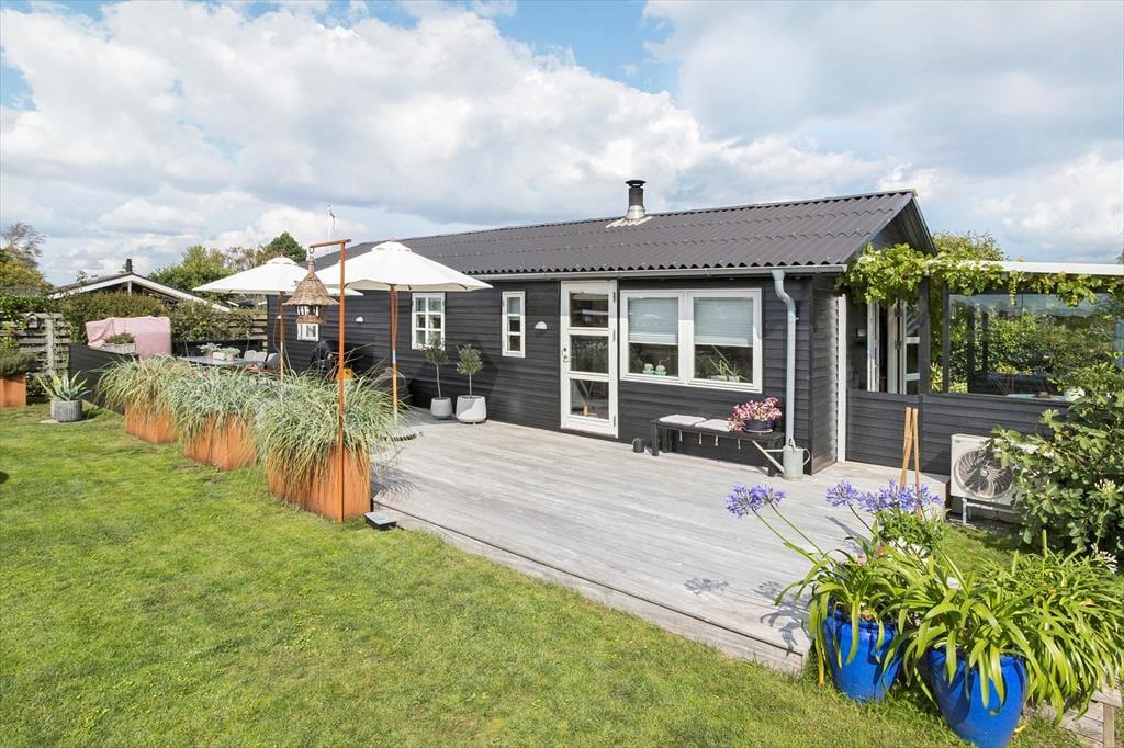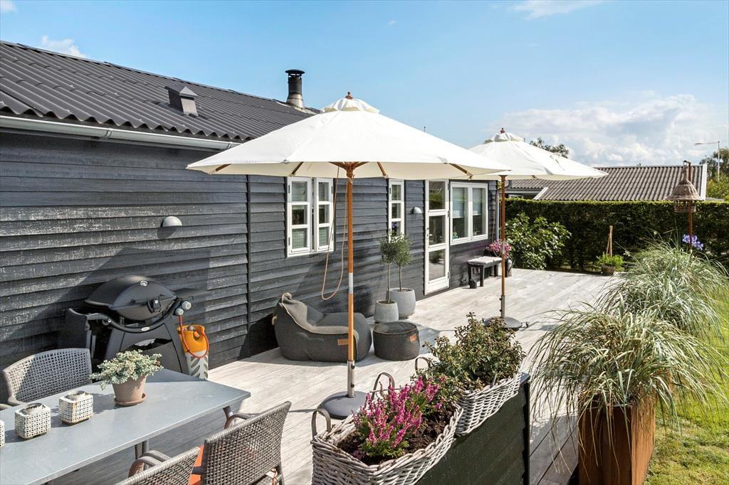I får mange muligheder for at nyde udelivet ved huset. På husets store træterrasser kan I nyde solen hele dagen i de fine havemøbler. En af terrasserne er overdækket. Der kan altid findes et sted, hvor der er læ og mon ikke en del af opholdets måltider vil blive tilberedt på huset grill.