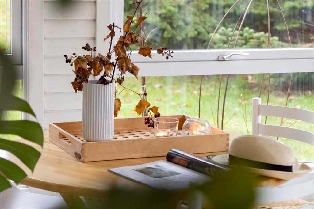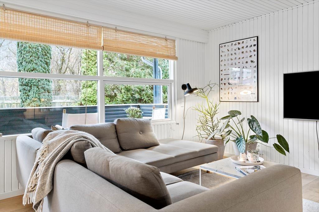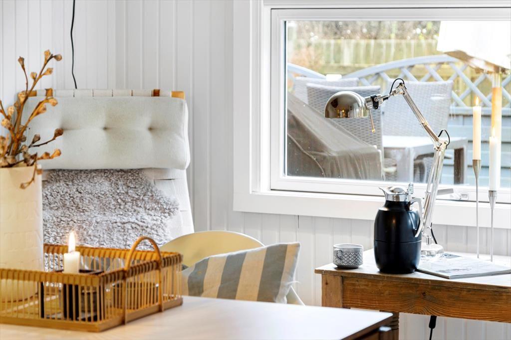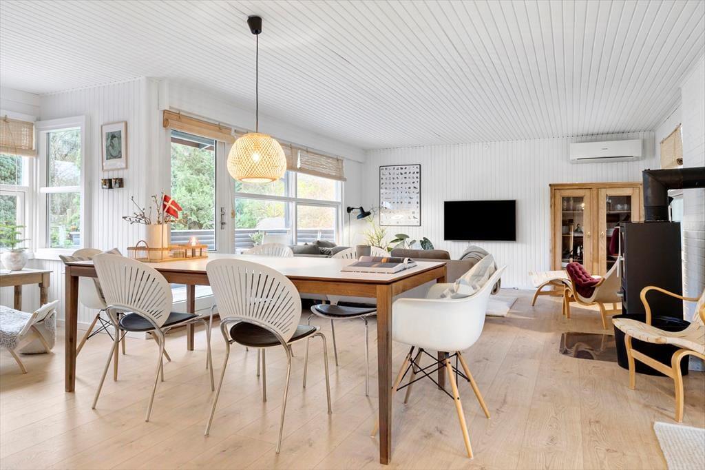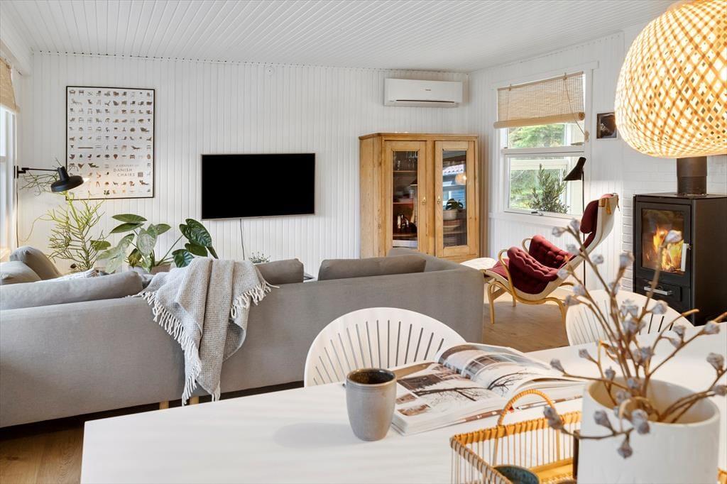 Det åbne køkken er fuldt udstyret og skaber en behagelig forbindelse til stuen, hvor en brændeovn sørger for hygge på kølige aftener. Stuen er indrettet med komfortable møbler og har både Apple TV og Chromecast, så du kan nyde dine yndlingsfilm og -serier.