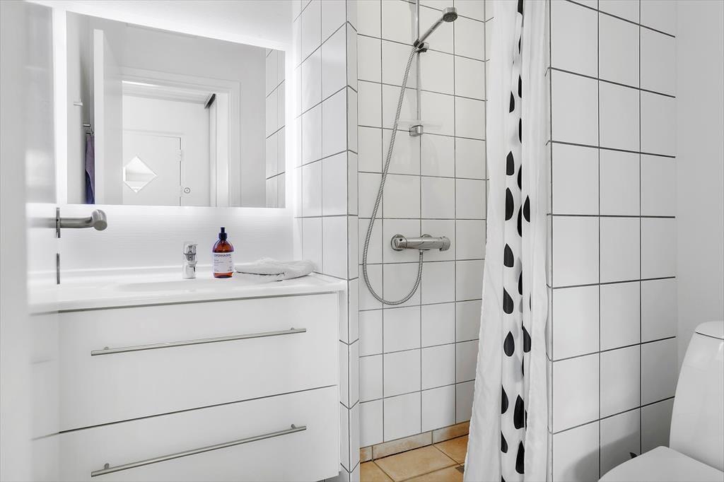 I stueetagen finder du en hyggelig stue med direkte adgang til en åben terrasse, hvor du kan nyde udsigten eller fordybe dig i en god bog. Det åbne køkken er fuldt udstyret og klar til at imødekomme dine kulinariske eventyr. Køkkenets åbne design skaber en behagelig forbindelse mellem madlavning og samvær, så du kan deltage i samtaler med familien eller venner, mens du tilbereder lækker mad.