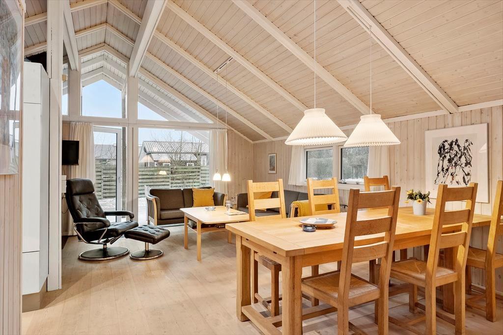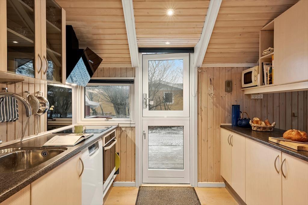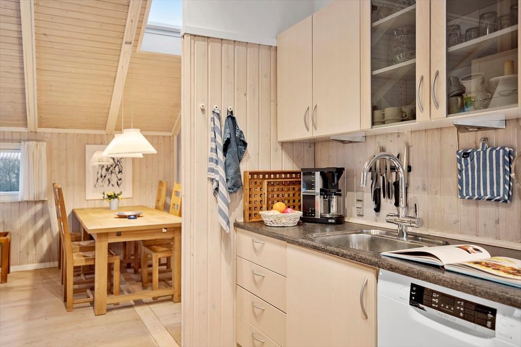 Sommerhus i Juelsminde strand og by, Østjylland, med plads til 6 voksne. Der er en hyggelig indretning med bl.a. brændeovn, og du finder desuden vaskemaskine, opvaskemaskine og tørretumbler i boligen.