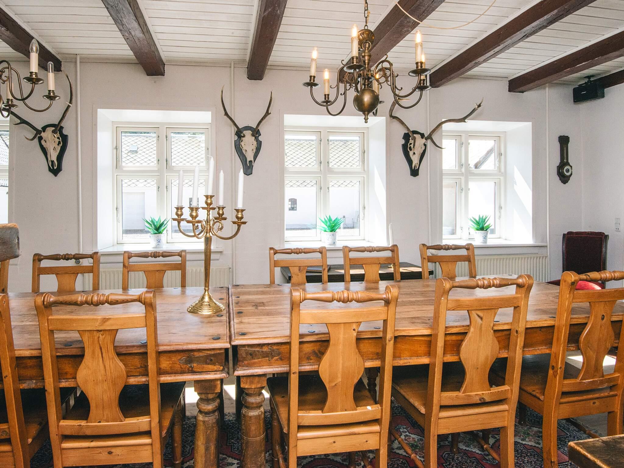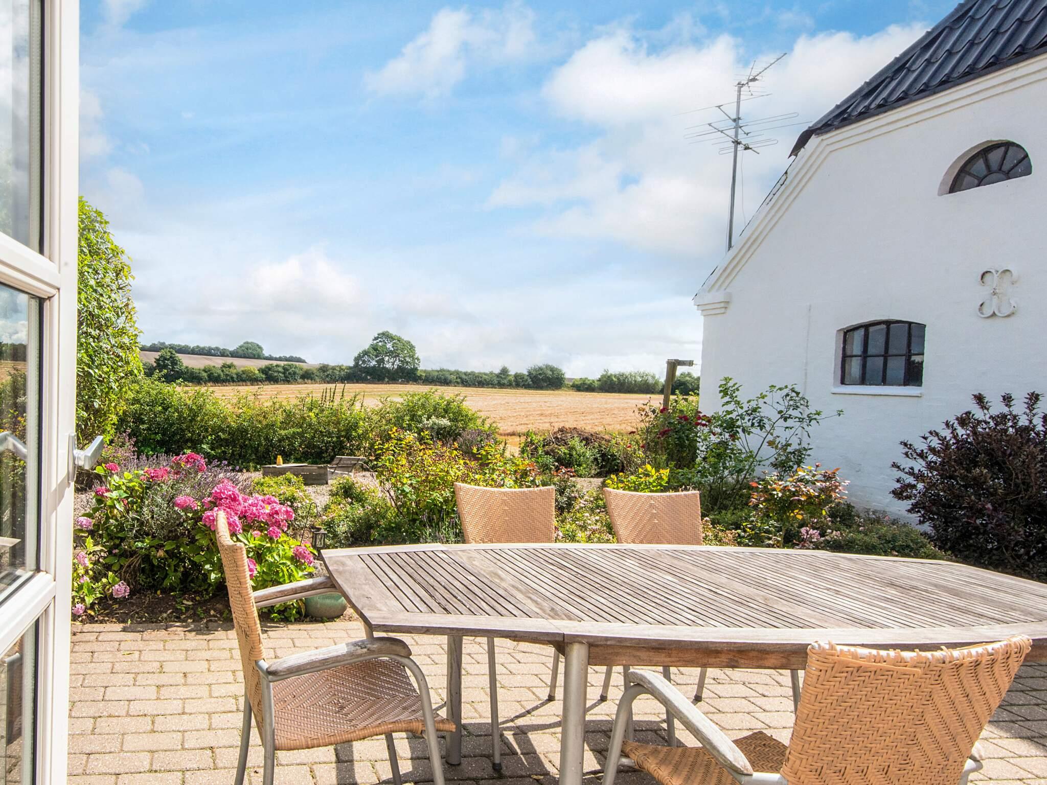 Idyllisk landejendom til leje – en sand perle Drømmer du om fred, ro og smuk natur? Dette charmerende landsted ligger på en ugenert grund og byder på masser af plads, både ude og inde. Den enorme have er fyldt med hyggekroge – perfekt til både sol og skygge. Det er det rene paradis for børn, da haven er så stor, at der er plads til fodbold, gemmeleg og mange andre lege. De kan også lave brød på pind på bålpladsen, hvor der stilles gratis brænde til rådighed. Alle frugter og krydderurter er også gratis at bruge. For de eventyrlystne er der et rummeligt shelter med plads til fire personer og et veludviklet stisystem til gåture i det naturskønne område. Huset har 5 gode soveværelser, et stort og veludstyret landkøkken med rummelig kogeø og indbygget friture – og med friske krydderurter lige uden for døren. Og den er altid fyldt med de mest tilgængelige dagligvarer, som også er gratis at bruge. Og hvis du skulle have brug for noget, er købmanden kun 5 minutters kørsel væk. Derudover har huset flere hyggelige stuer, hvor I kan nyde stemningen og den naturskønne beliggenhed. I sidebygningen finder du Hestestalden, som er omdannet til en stemningsfuld lounge med bar og god plads til 12 personer – det perfekte samlingssted, når børnene er gemt i og de voksne vil nyde en afslappet aften. En sand perle midt i naturen – perfekt til afslapning og fordybelse Ønskes mere soveplads, kan sidebygningen bookes E10031