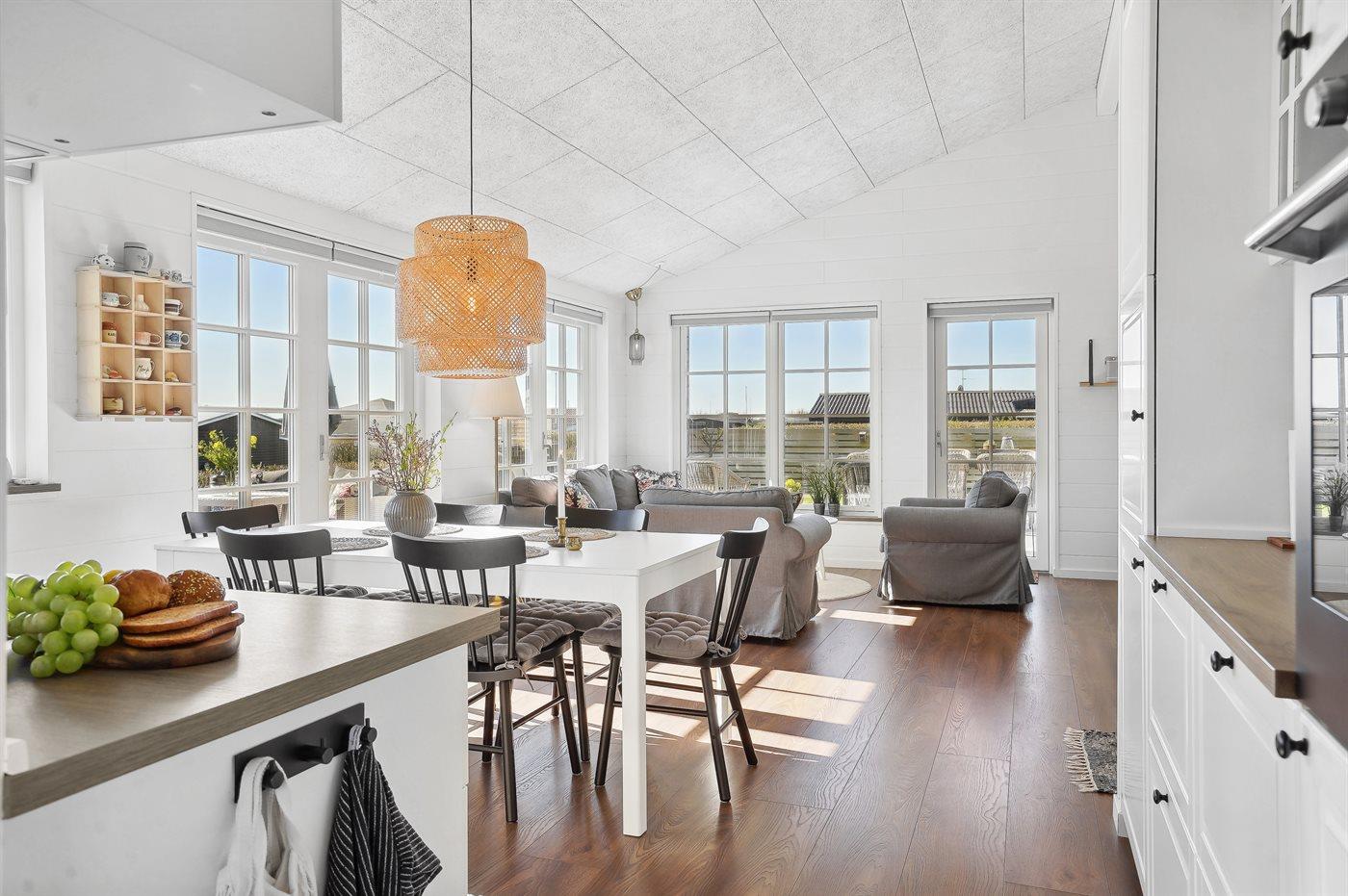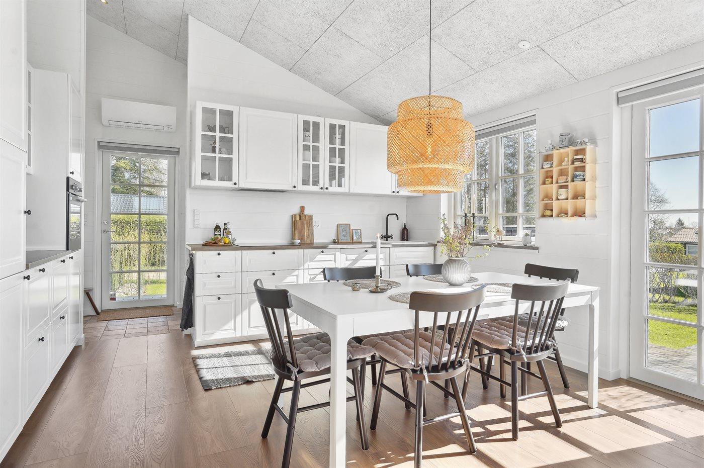 Køkkenet er udstyret med 1 køleskab. Der er 4 induktionskogeplader, varmluftovn, mikrobølgeovn samt opvaskemaskine.