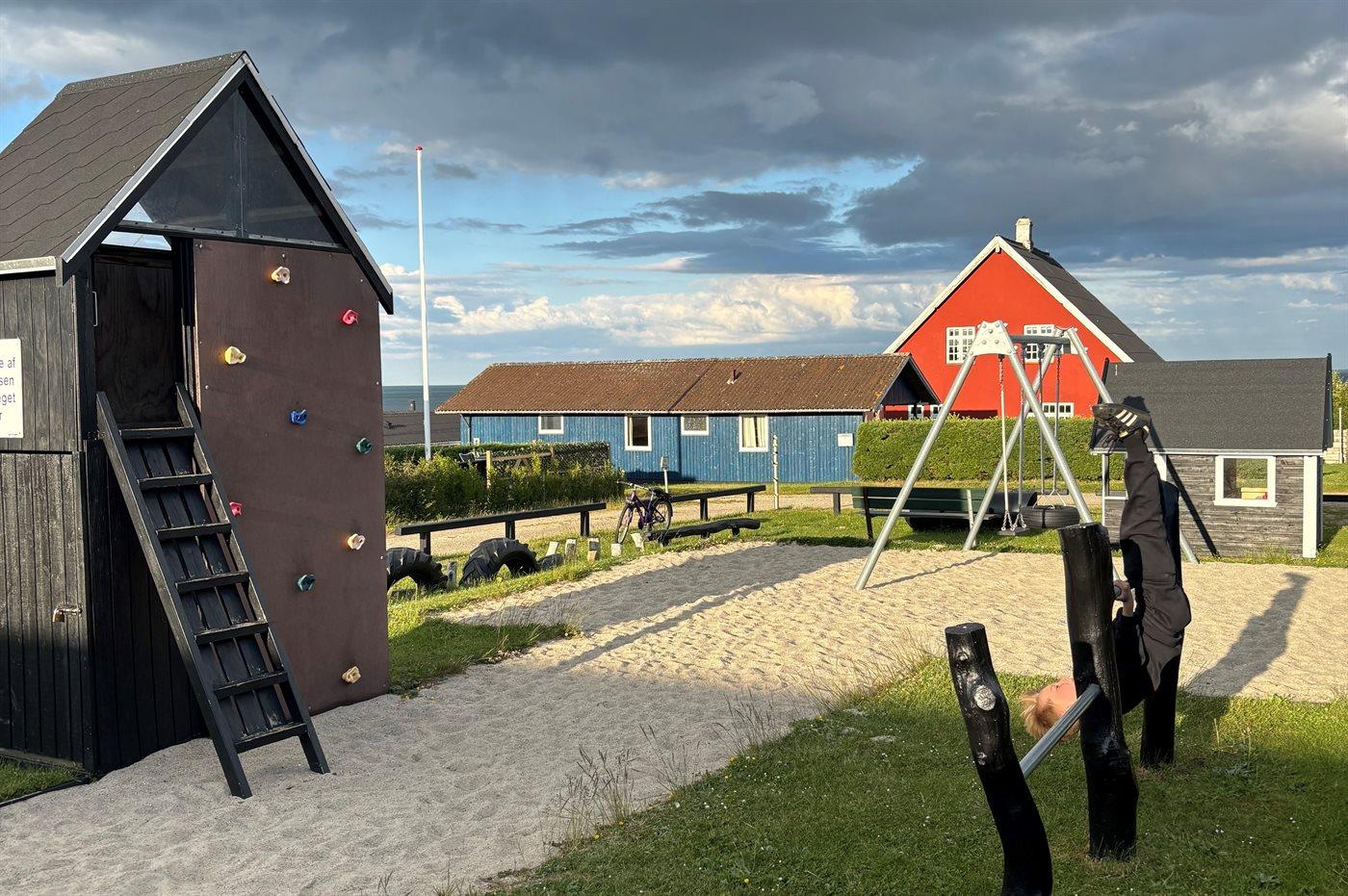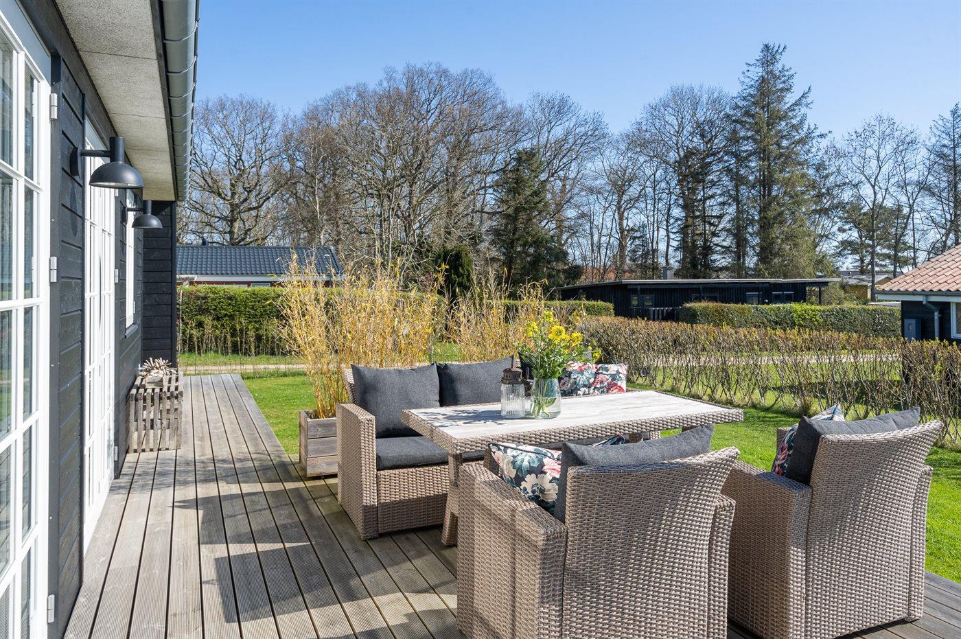 Ferieboligen er beliggende på en 818 m² stor havegrund. Der er 300 m til havet. Der er en badebro i nærheden. Nærmeste forretning er beliggende i en afstand af 1500 m. Der er en golfbane i en afstand af 7000 m. Til ferieboligen hører åbent terrasseareal. Der er redskabsrum. Gynge. Trampolin. Der ligger en legeplads i en afstand af 300 m. Udendørs bruser. Grill til rådighed. Parkering ved ferieboligen.