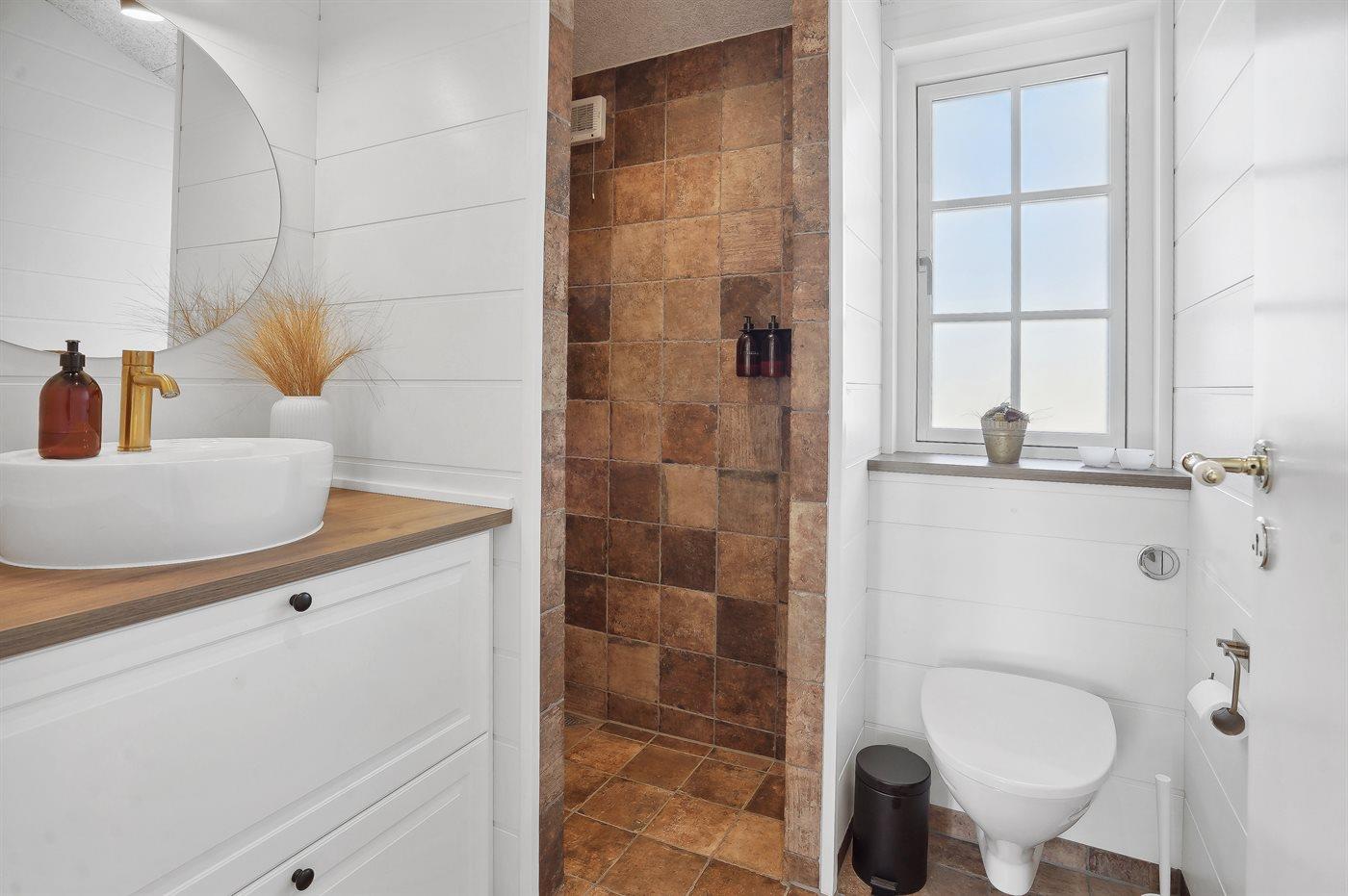 Der er 1 badeværelse med bruseniche og 1 toilet.. Der er gulvvarme på 1 badeværelse.