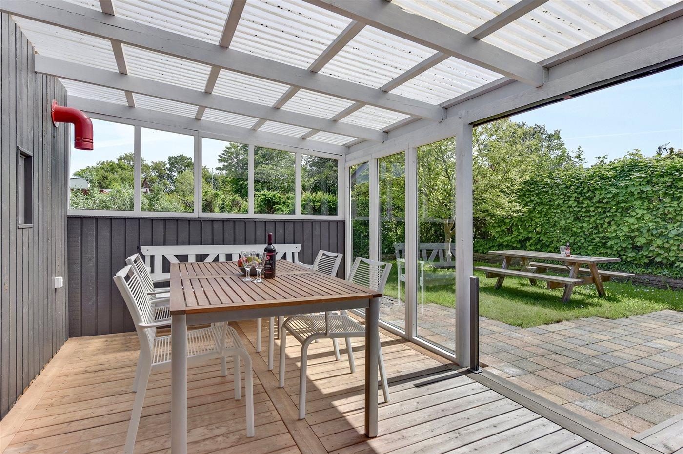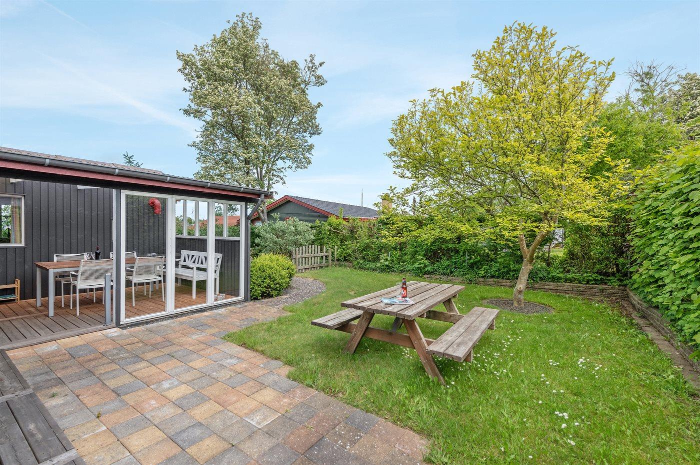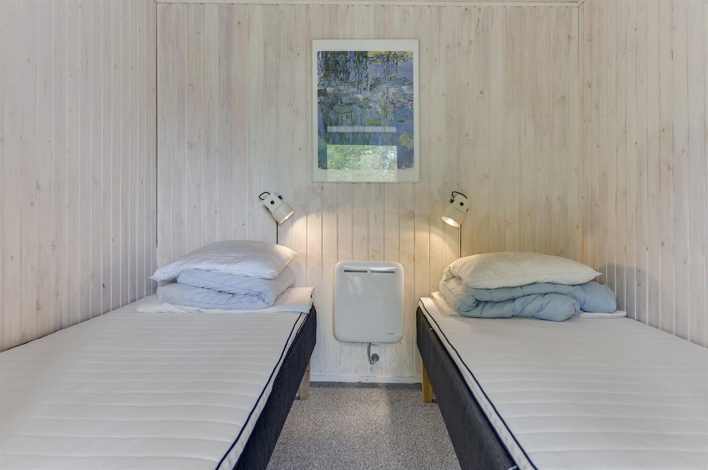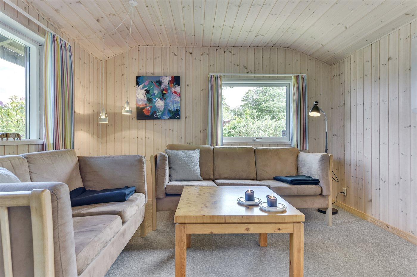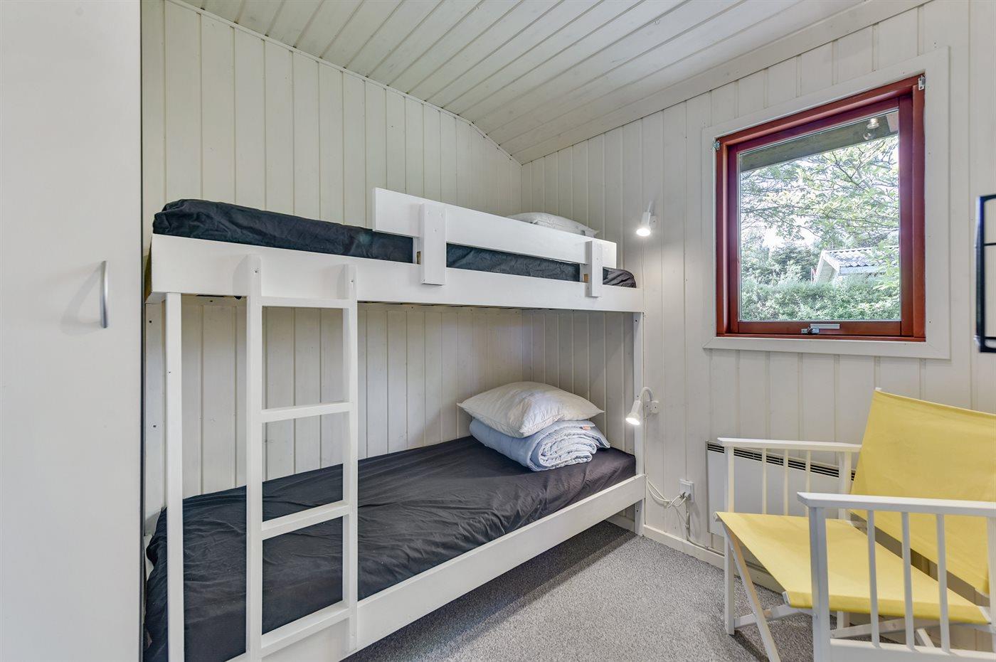 Dette pæne sommerhus i træ, renoveret i 1999, ligger på en delvist lukket havegrund - kun 50 m fra fælles legeplads. Til huset hører en åben samt en dejlig overdækket terrasse med havemøbler. Køkkenet ligger i åben forbindelse med spise-/opholdsstuen og er bl.a. udstyret med opvaskemaskine, lille fryser, mikrobølgeovn, varmluftovn og komfur med keramiske kogeplader. I spise-/opholdsstuen finder I TV med parabol (digital), DVD-afspiller samt stereoanlæg med CD-afspiller. Sovepladserne fordeler sig på 1 værelse med dobbeltseng, 1 værelse med køjeseng samt 2 sovepladser (enkeltsenge) i husets anneks. Til de mindste feriegæster står barneseng og høj barnestol til rådighed. Der er installeret energibesparende varmepumpe. Et pænt sommerhus i et familievenligt område med god badestrand.