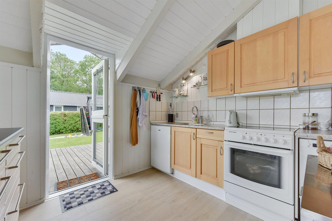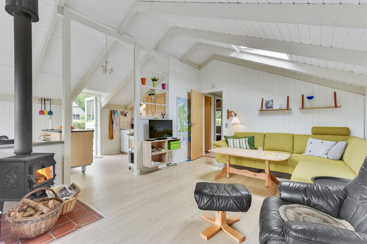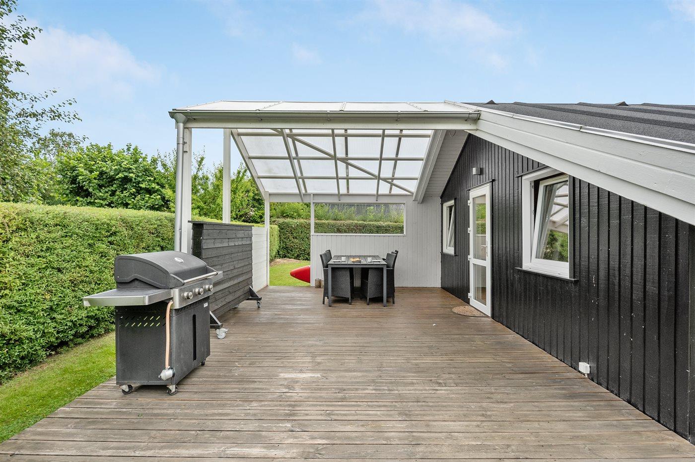 I et skønt ferieområde ca. 350 m fra vandet ligger dette fine og velholdte sommerhus. Sommerhuset ligger ganske ugenert og der findes fine, delvist overdækkede terrassearealer. Indvendig fremstår huset lyst og moderne og er godt indrettet. Bemærk, at 2 af de i alt 6 sovepladser befinder sig i en alkove i opholdsstuen. Indenfor ca. 10 kilometer nås Juelsminde, som er en fantastisk ferieby med bl.a. en hyggelig havn, gode spisesteder m.m.