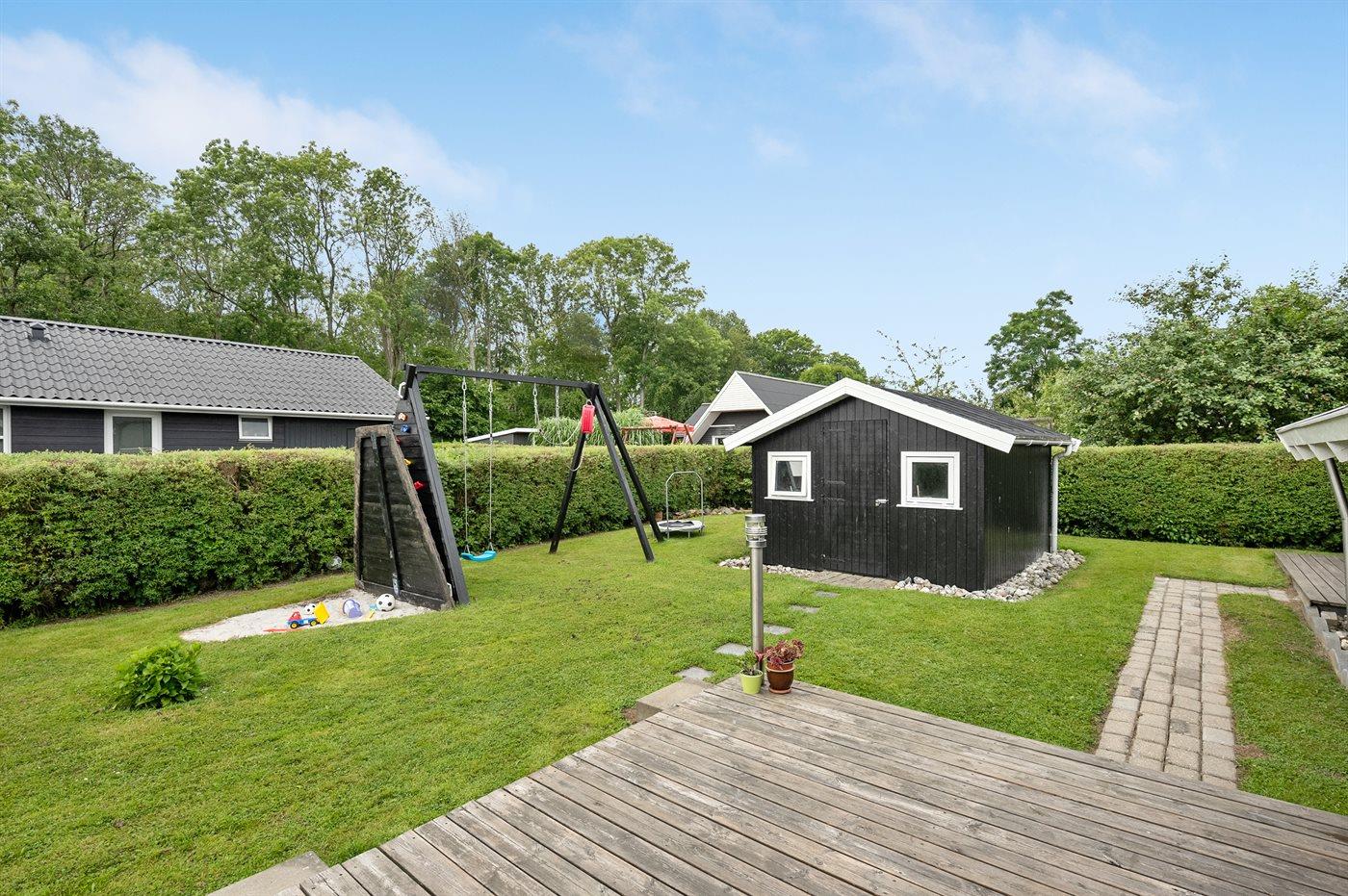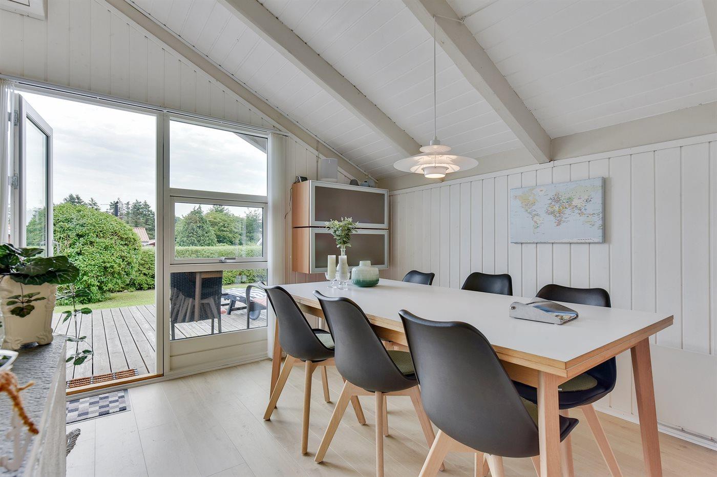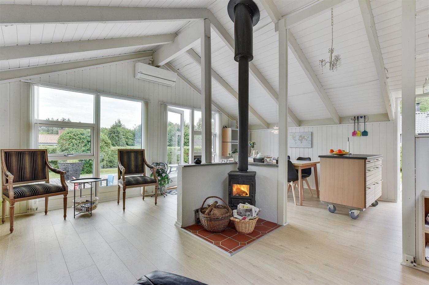 I et skønt ferieområde ca. 350 m fra vandet ligger dette fine og velholdte sommerhus. Sommerhuset ligger ganske ugenert og der findes fine, delvist overdækkede terrassearealer. Indvendig fremstår huset lyst og moderne og er godt indrettet. Bemærk, at 2 af de i alt 6 sovepladser befinder sig i en alkove i opholdsstuen. Indenfor ca. 10 kilometer nås Juelsminde, som er en fantastisk ferieby med bl.a. en hyggelig havn, gode spisesteder m.m.