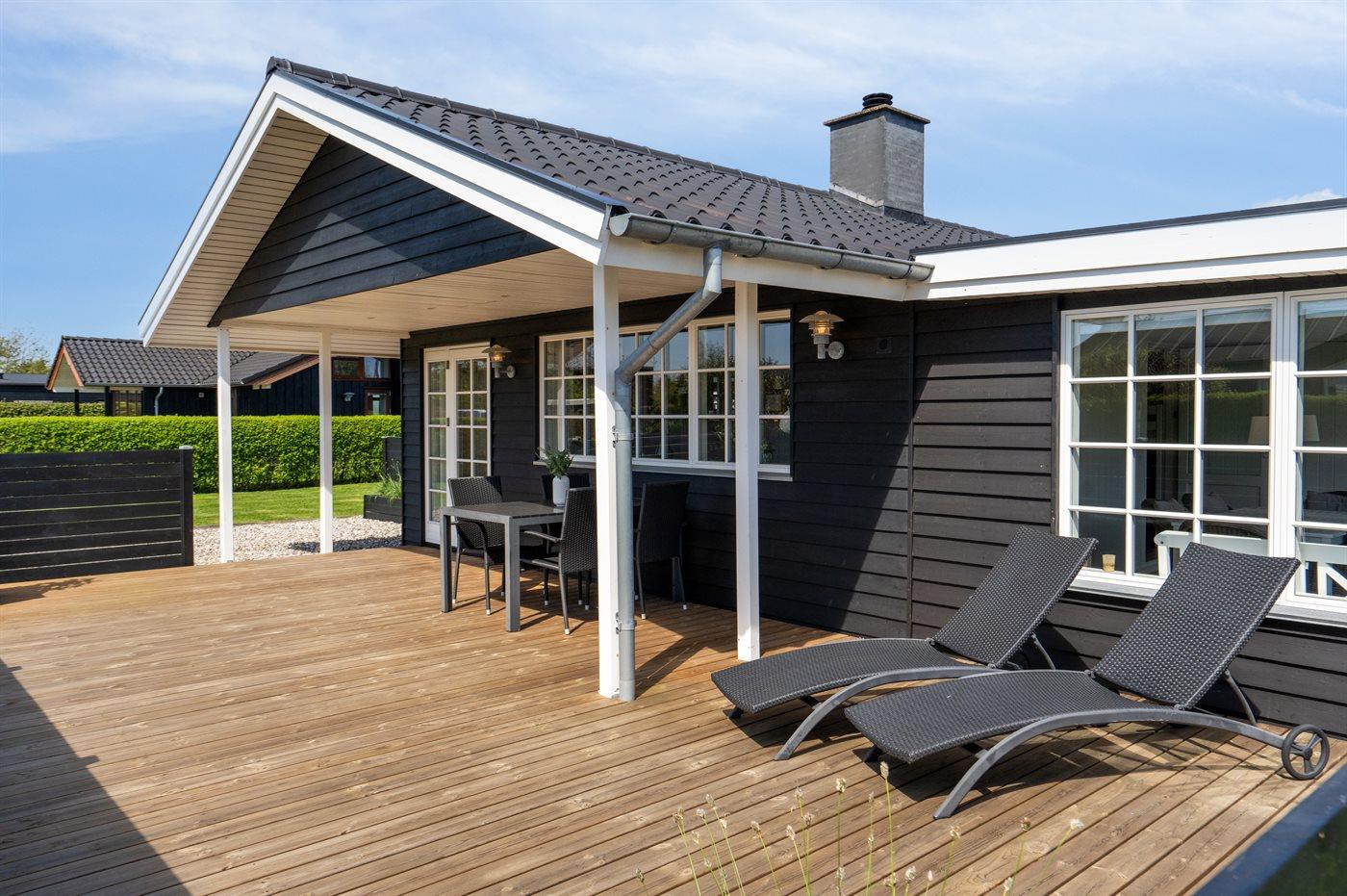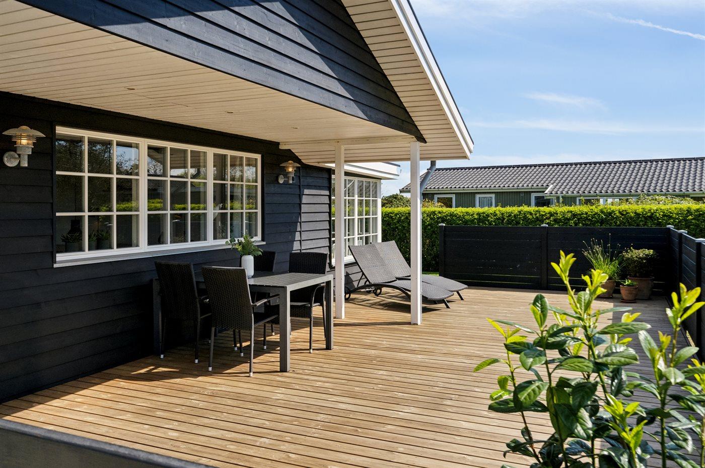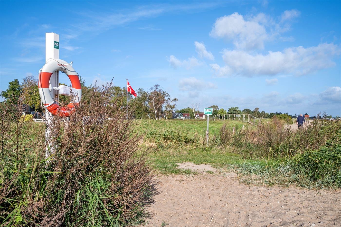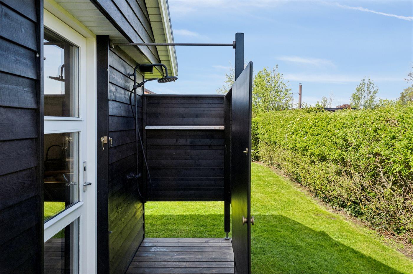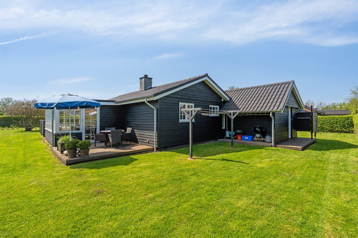 Ferieboligen er beliggende på en 800 m² stor havegrund. Der er 125 m til havet. Der er en badebro i nærheden. Nærmeste forretning er beliggende i en afstand af 1000 m. Der er en golfbane i en afstand af 3000 m. Til ferieboligen hører 50 m² terrasseareal. Desuden er der 10 m² overdækket terrasse. Ligeledes er der adgang til udestue. Gynge. Der ligger en legeplads i en afstand af 1000 m. Udendørs bruser. Grill til rådighed. Parkering ved ferieboligen.