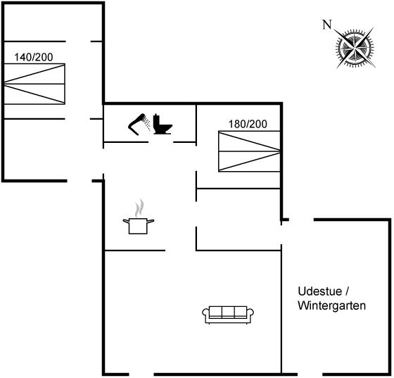 Der er i alt 2 soveværelser. Sovepladserne fordeler sig på: 4 sovepladser i dobbeltsenge. Derudover er der 1 stk. barneseng.