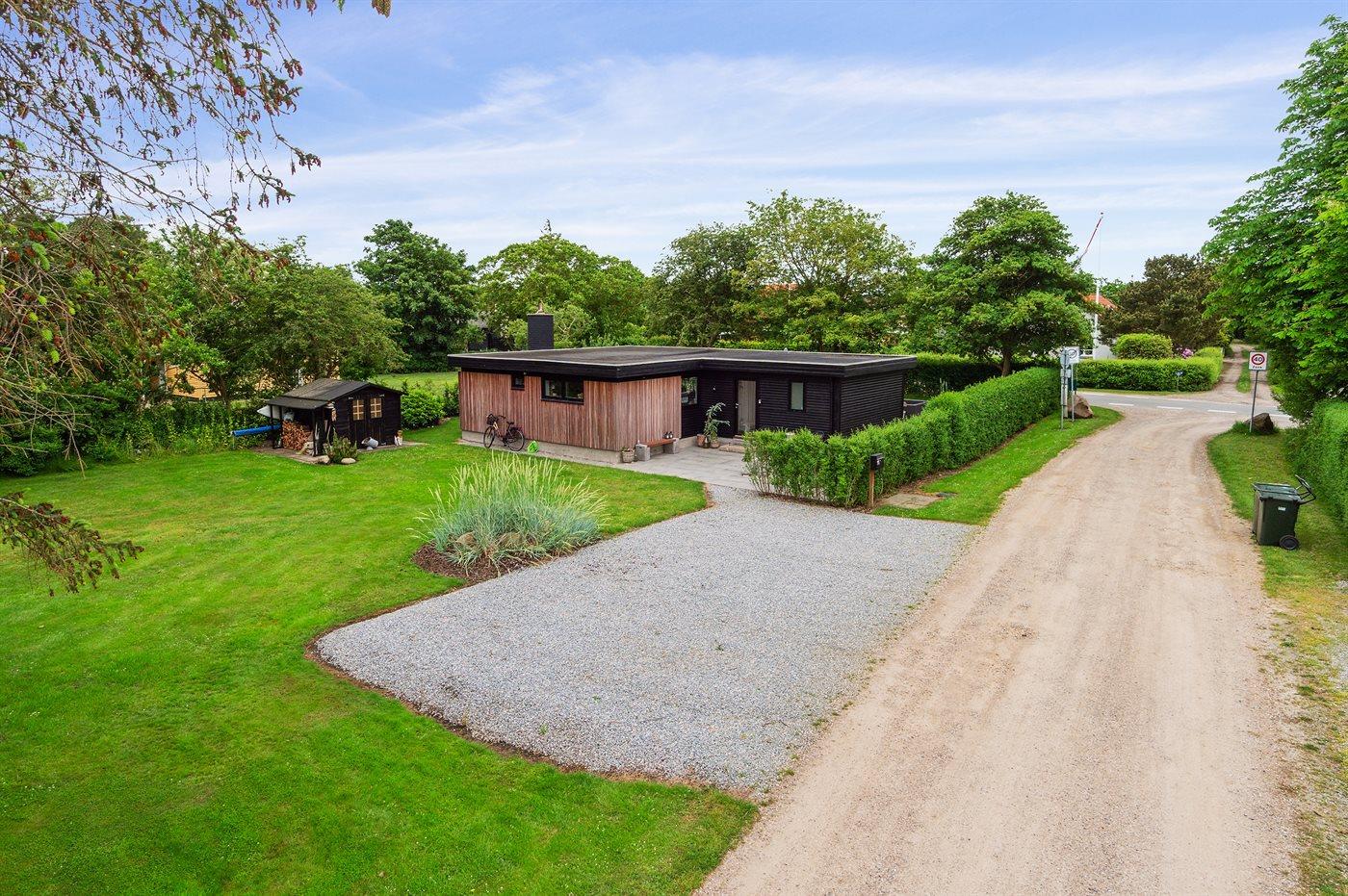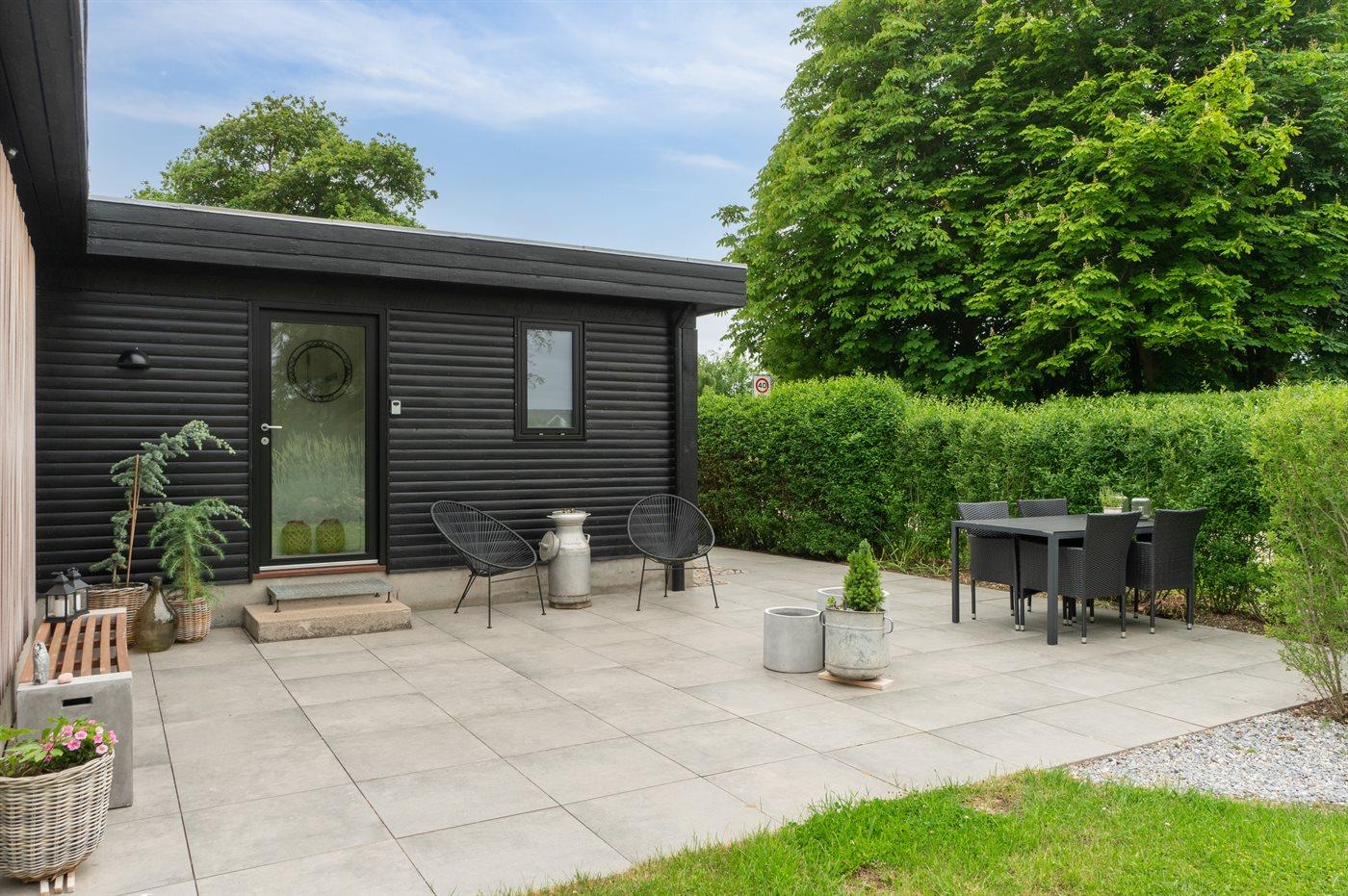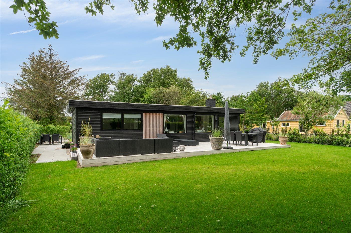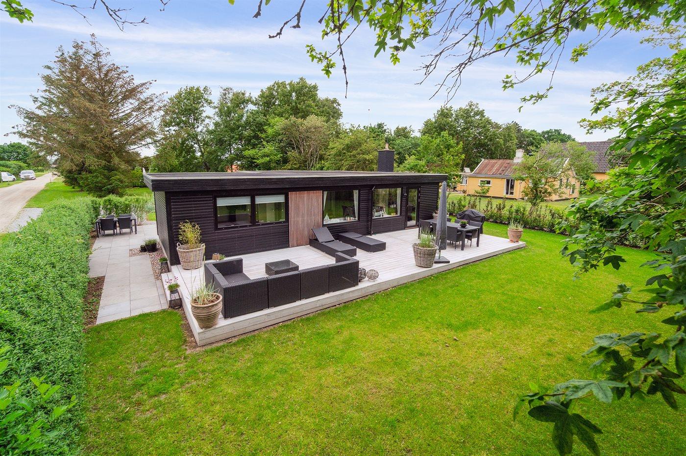 Moderne sommerhus tæt på vand og bymidte i Juelsminde med gode terrasser og hyggelig atmosfære.