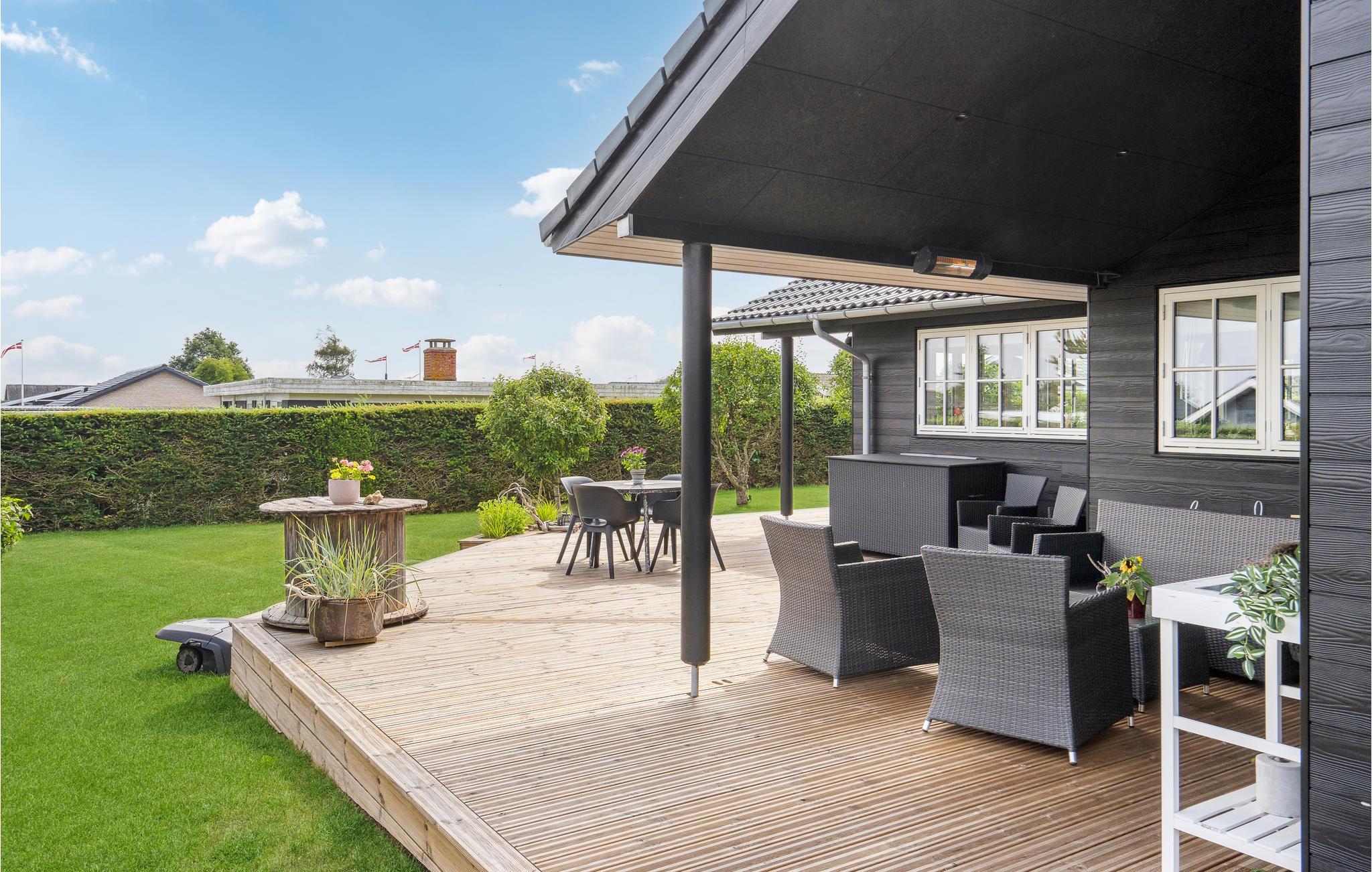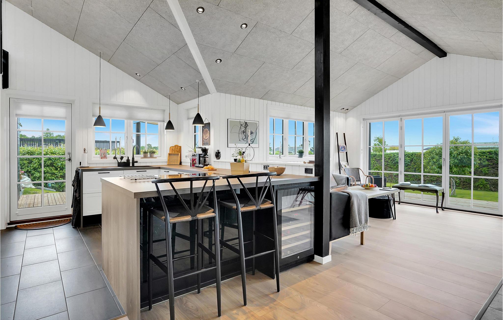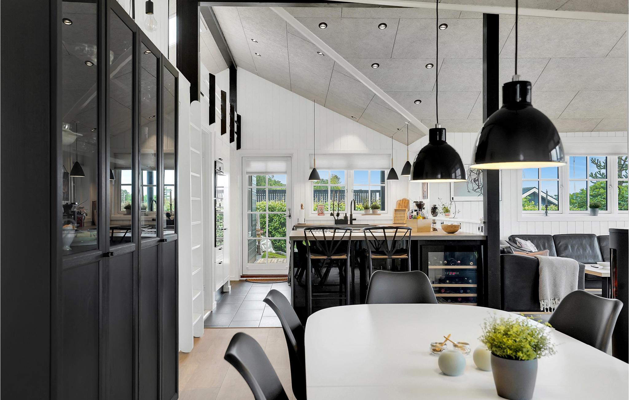 Nyd et moderne sommerhus i Juelsminde med brændeovn, terrasse, havudsigt og kort afstand til vandet.