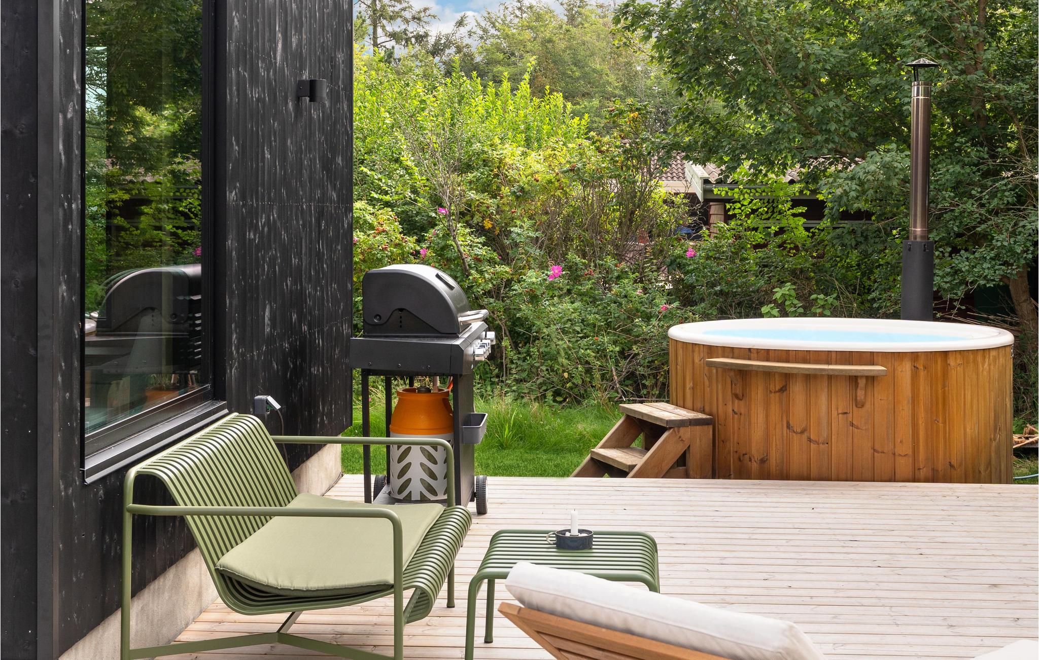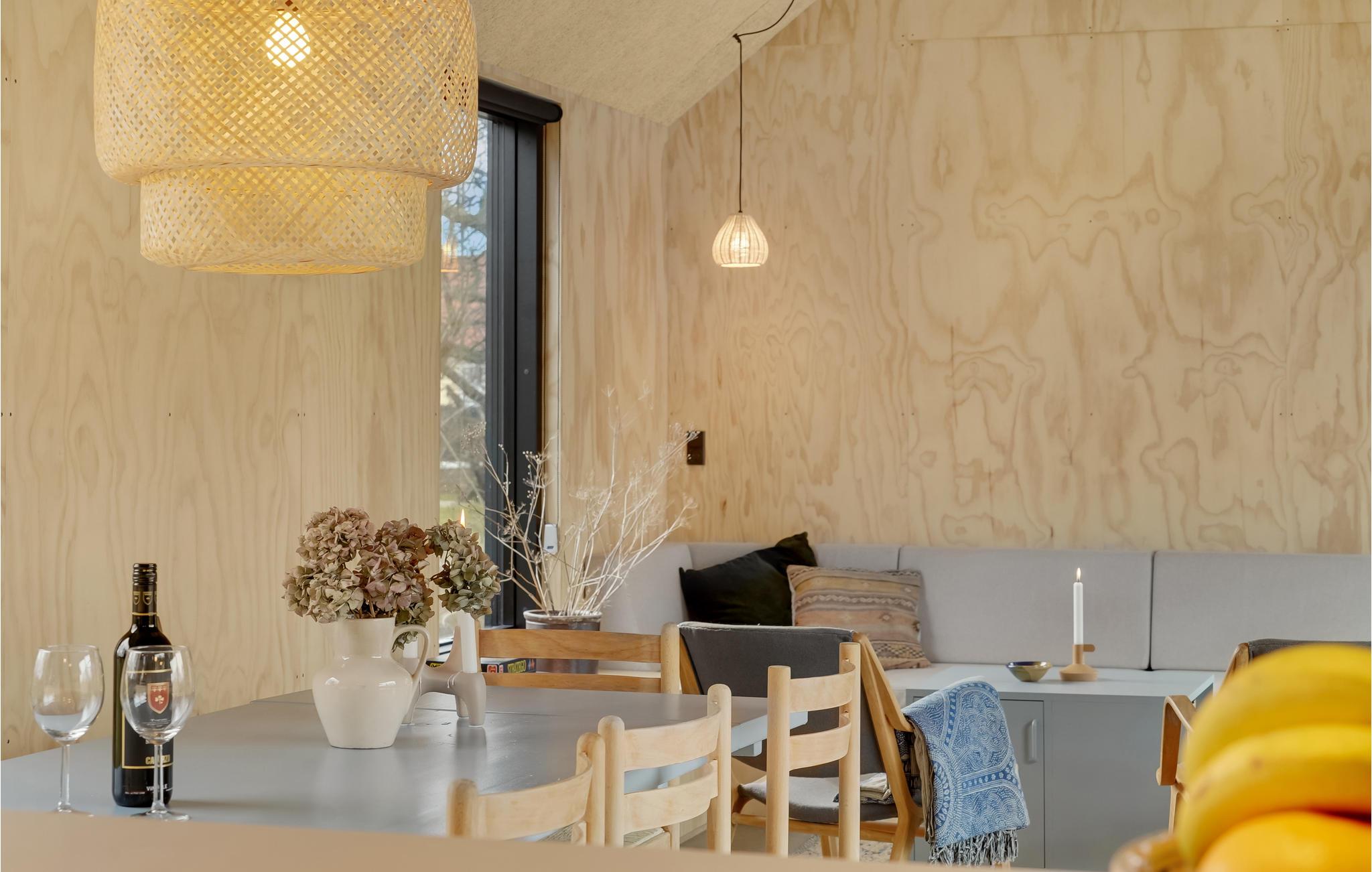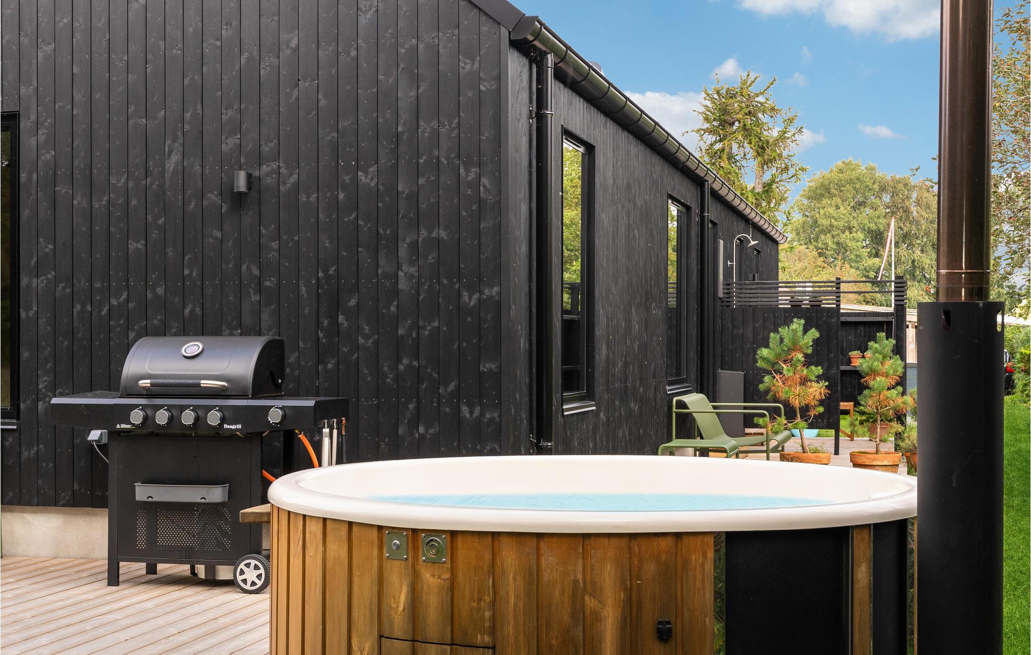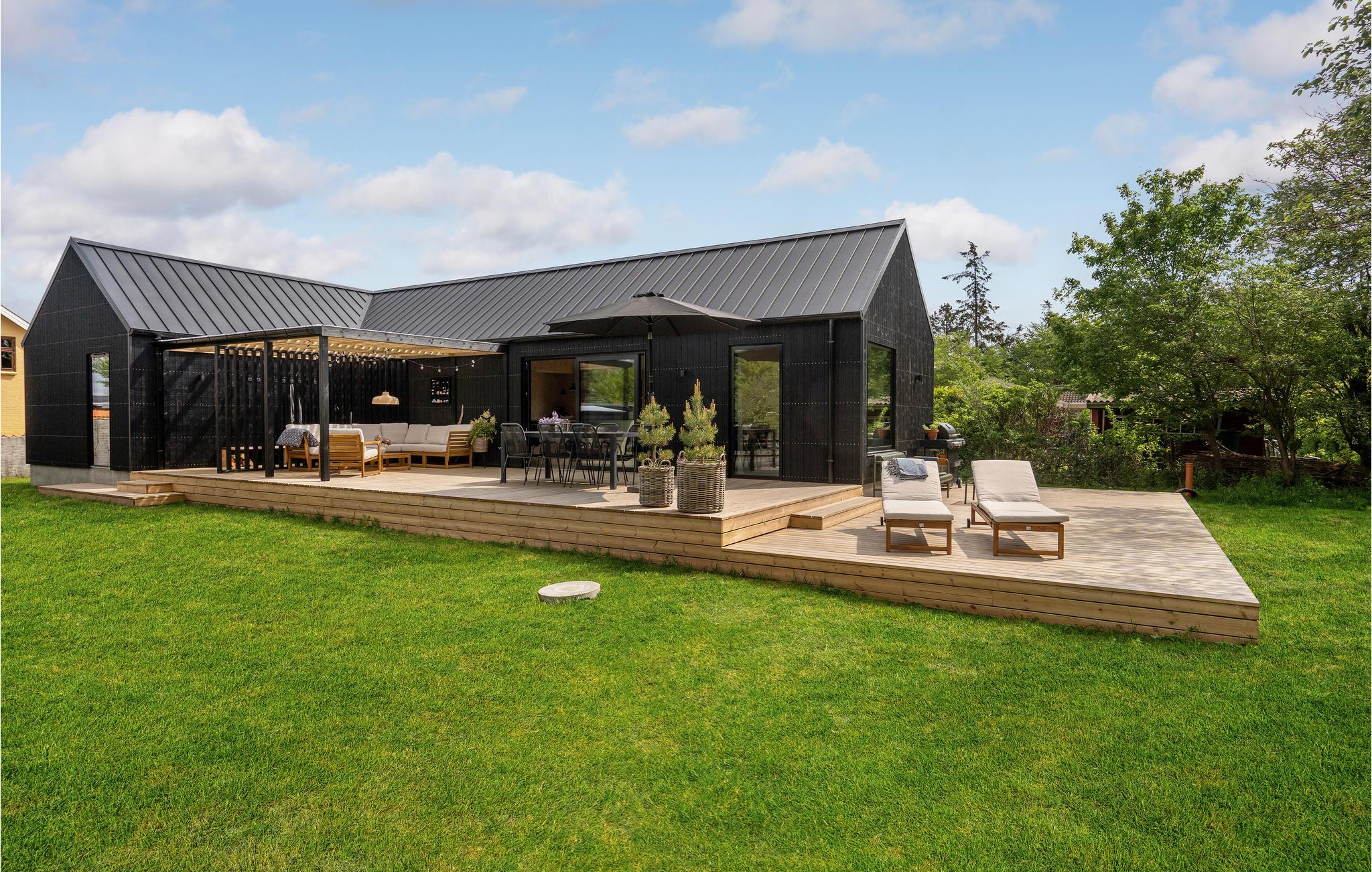 Moderne feriehus i Juelsminde med skandinavisk stil og tæt på stranden, perfekt til afslapning og aktiviteter.