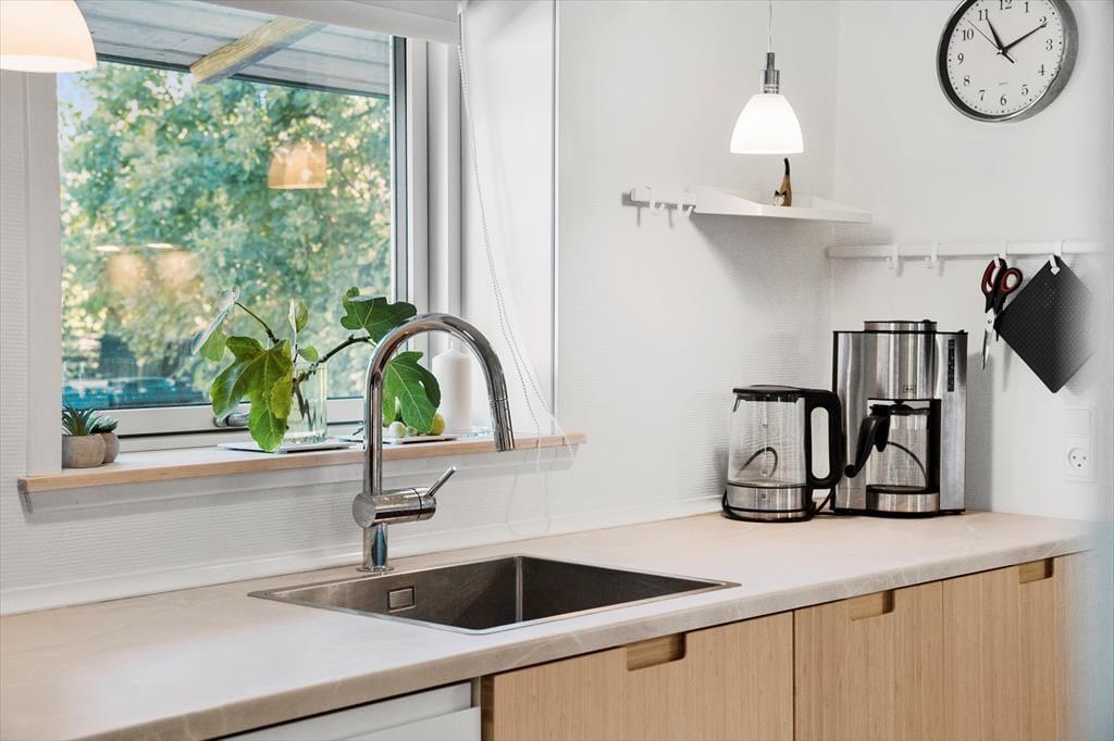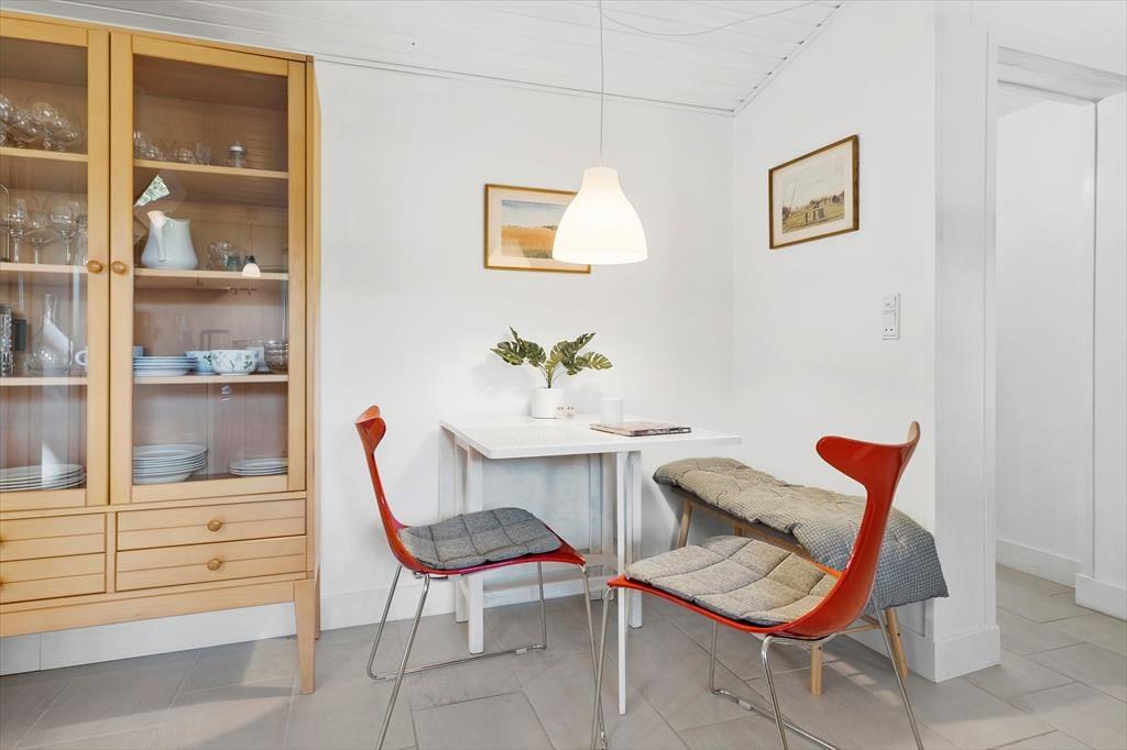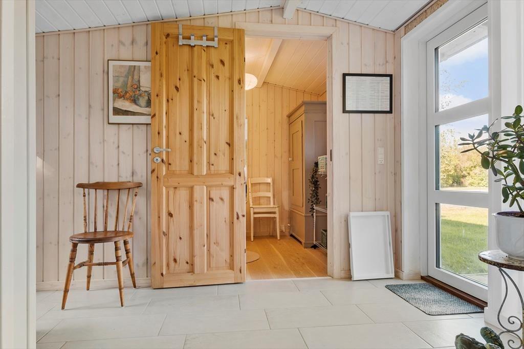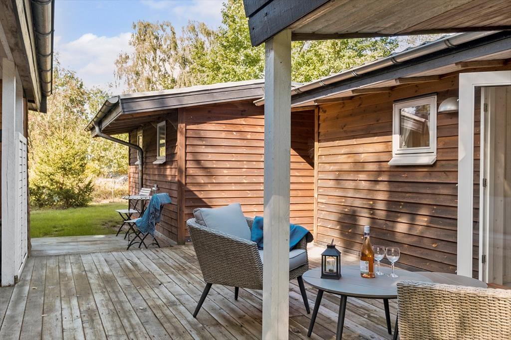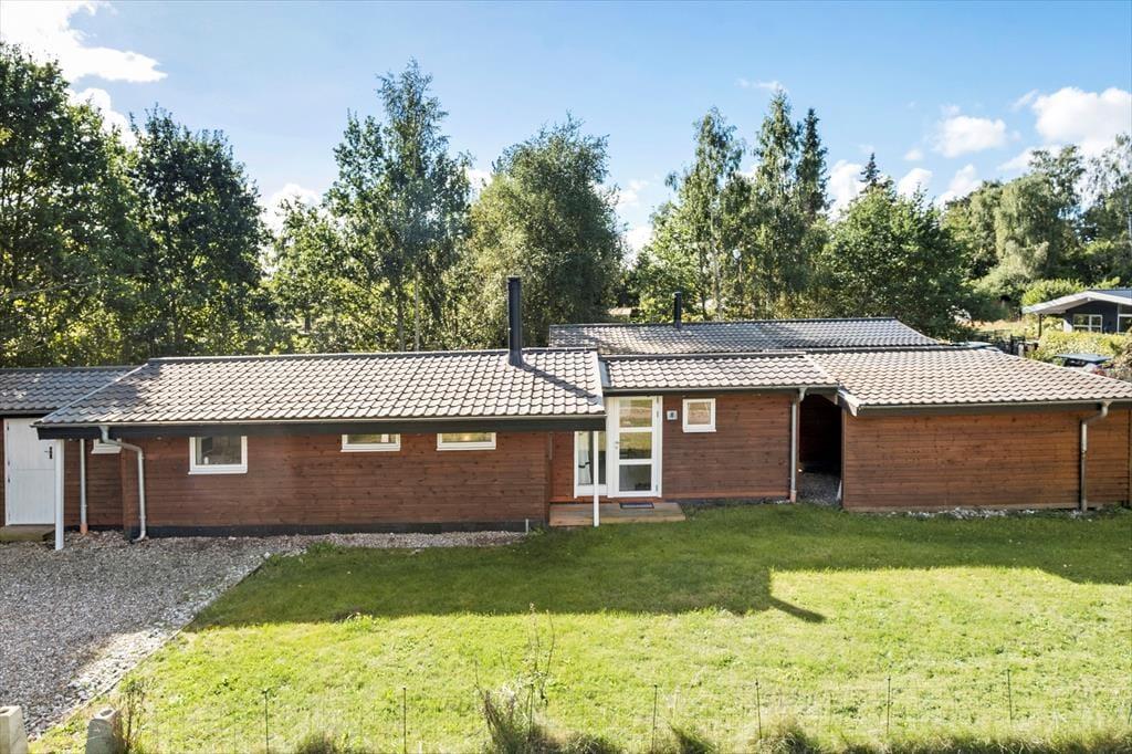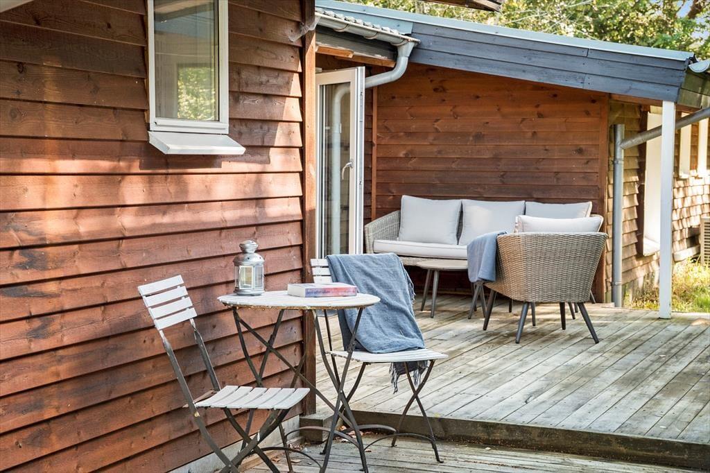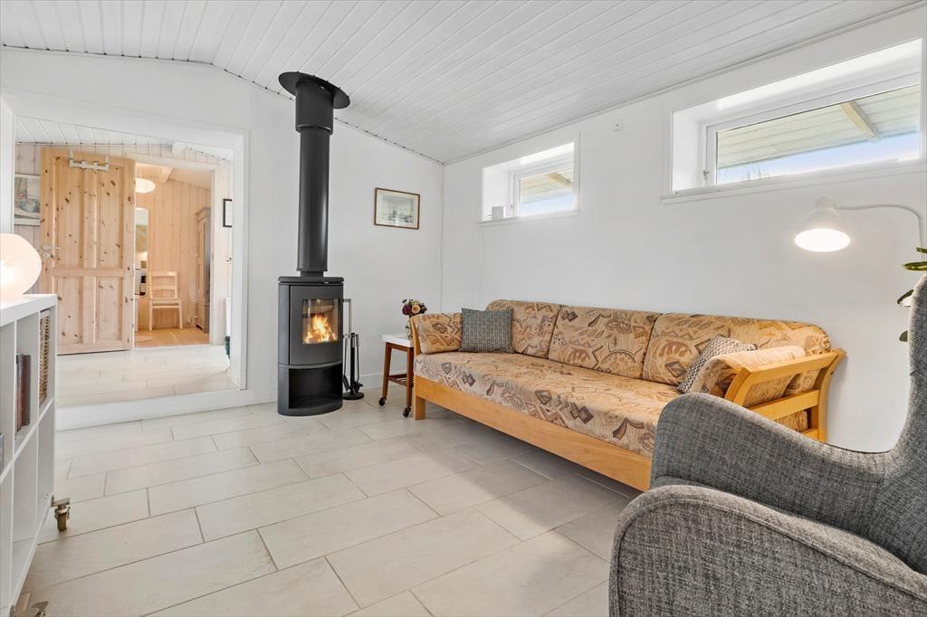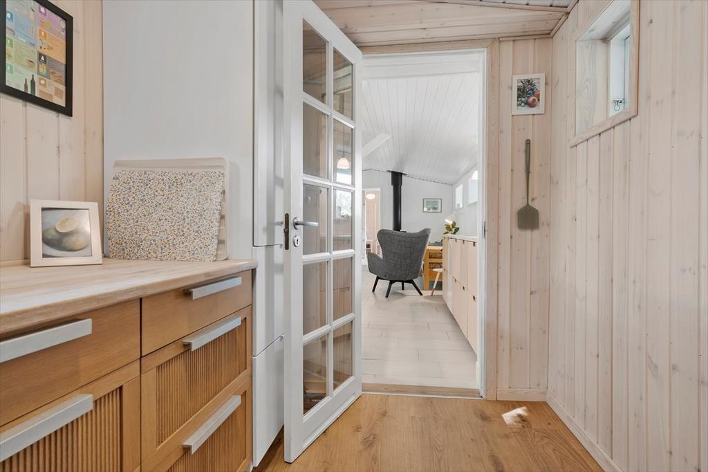 Træd ind i den lyse entré, hvorfra du har adgang til både stuen og videre til værelserne. Det moderne køkken er i åben forbindelse med spiseplads og stue, og derfra er der udgange til terrasserne og den omkringliggende have. Der er 2 soveværelser med hver 2 sovepladser samt et badeværelse med bruseniche og gulvvarme. Huset opvarmes via luft til luft varmepumpe eller du kan tænde op i brændeovnen på de kolde aftener - og skabe den perfekte sommerhusstemning.