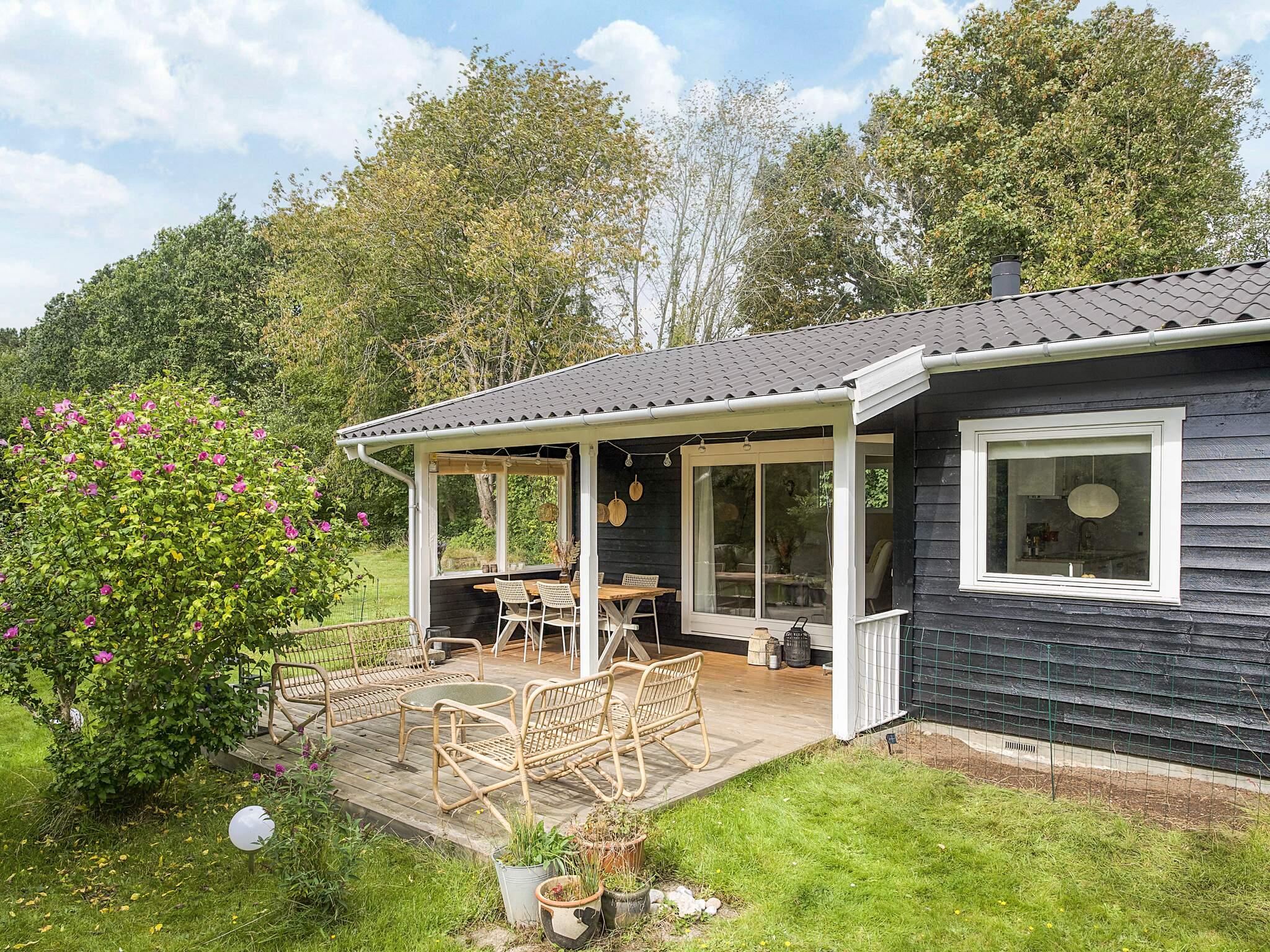 Der er to soveværelser – et med dobbeltseng og et med køjeseng – samt et charmerende anneks med el, varme og en stor seng, ideelt til gæster eller ekstra sovepladser. Fra stuen træder man direkte ud på en stor overdækket terrasse, der fortsætter til en hyggelig, åben terrasse. Her kan man tænde grillen, åbne en flaske vin, nyde solen og følge med i børnenes leg i haven. Fodboldmål er til rådighed, og i haven er der god plads til leg og aktiviteter.