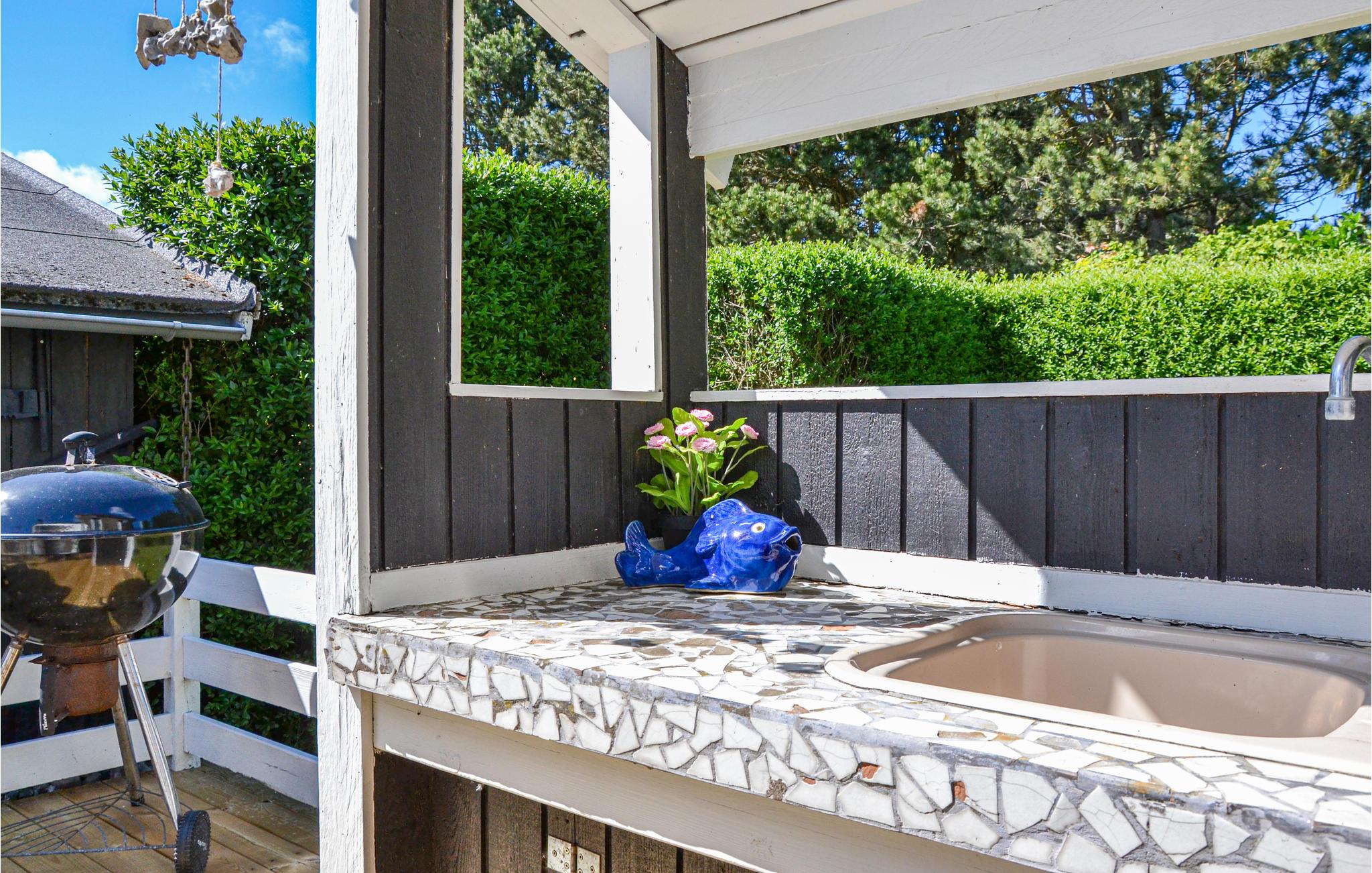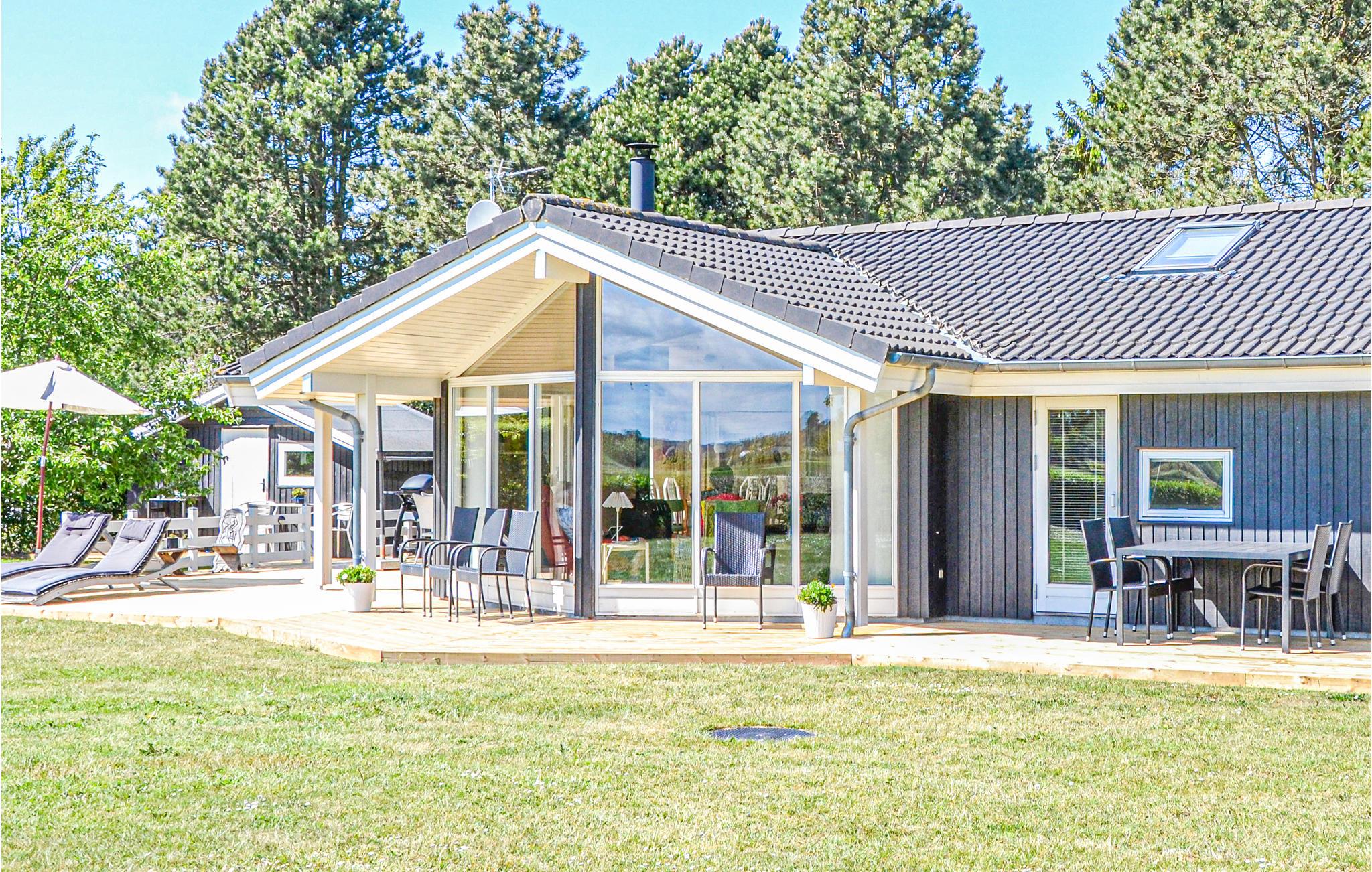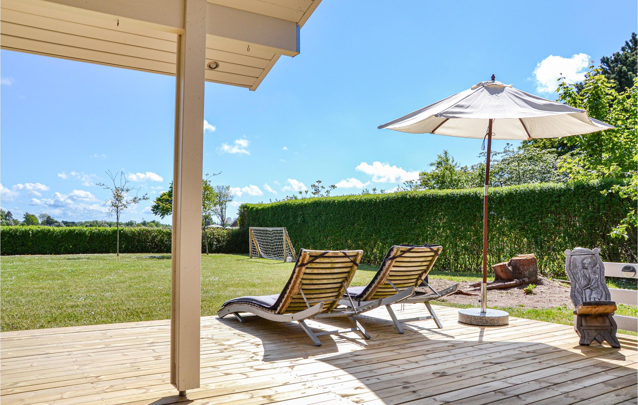 Charmerende sommerhus med stor terrasse, legeområde og nærhed til badestrand og fiskemuligheder.