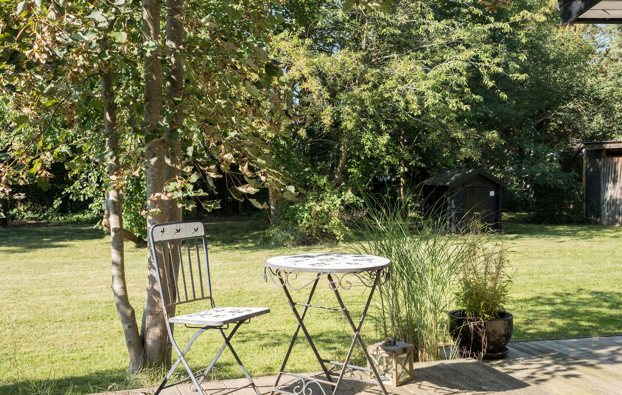 Huset ligger på en skøn grund med god plads til at lege og spille fodbold. Tænd op i grillen på en sommeraften og nyd tonerne af fuglefløjt fra trætoppene.