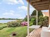 Stue med separat rum med skydedør, her er der 1 dobbelt seng 140 x 200 – fantastisk udsigt fra stuen ud over Stege Bugt og Ulvsund. Fra stuen er der udgang til svalegang med havemøbler. TV kun via streaming.