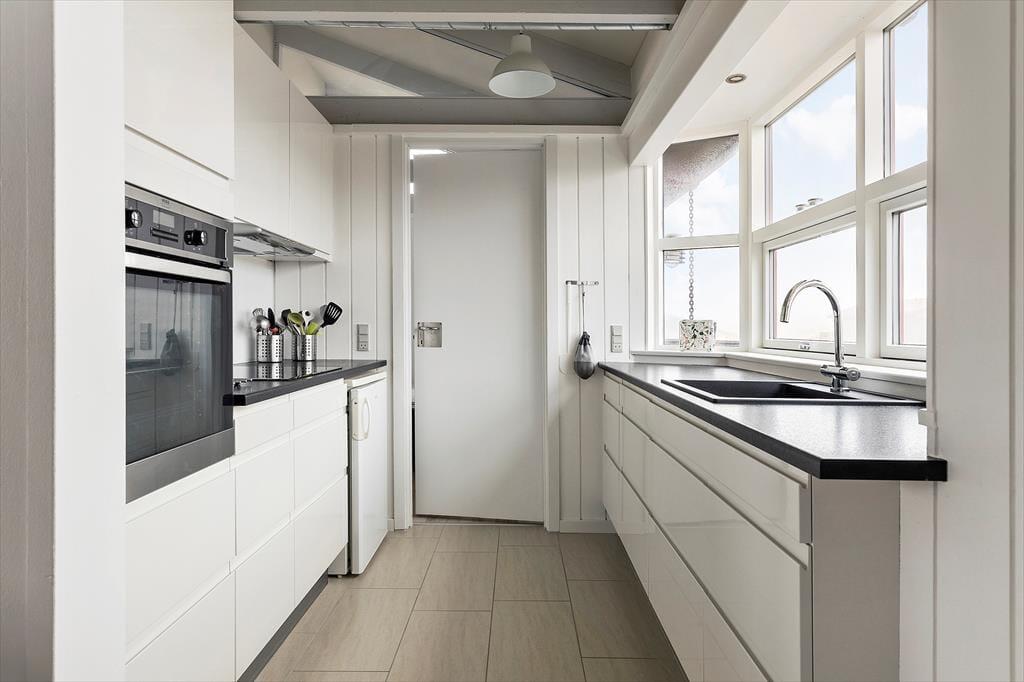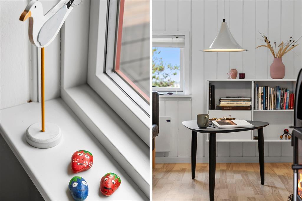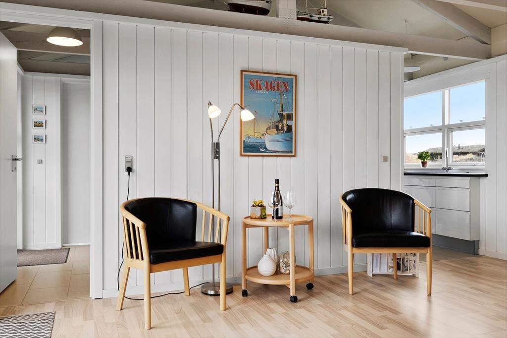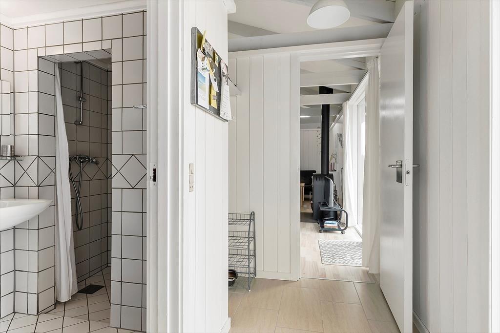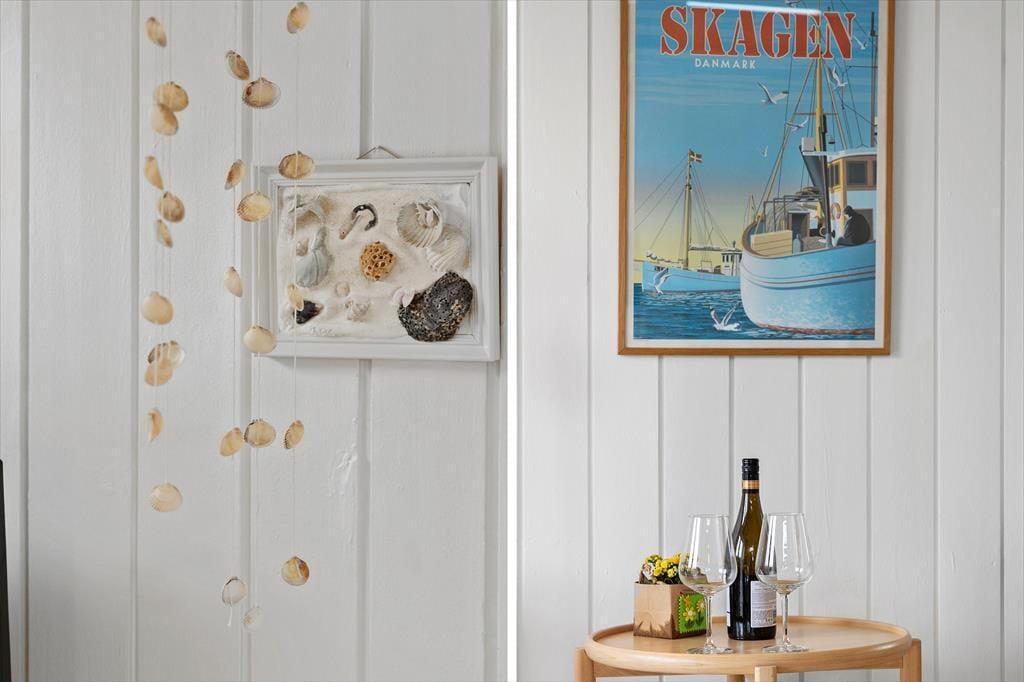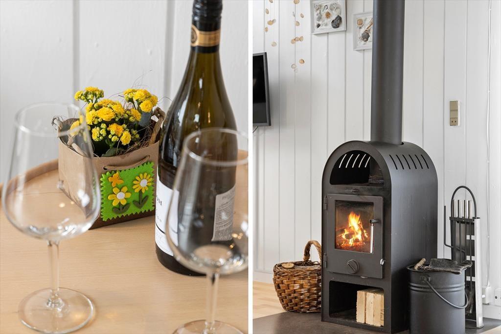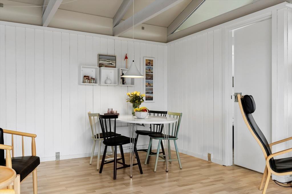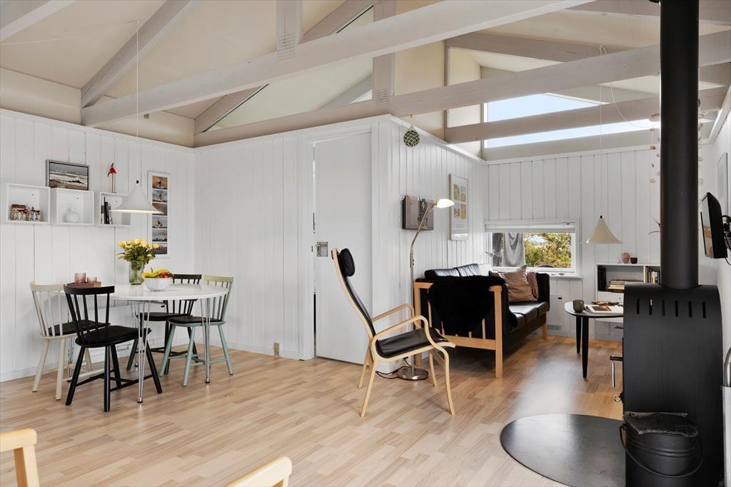 Indenfor bliver du mødt af en lys og indbydende atmosfære, hvor loftet går til kip og skaber en skøn rumfornemmelse. Brændeovnen står klar til at sprede varme og hygge, når aftenerne bliver kølige, og den velindrettede planløsning sikrer, at du og dine kære har god plads til både samvær og afslapning. Indretningen oser af klassisk sommerhuscharme, hvor træbeklædte vægge og bløde møbler indbyder til lange, langsomme morgener med friskbrygget kaffe og hyggelige aftener med kortspil og gode bøger. Uanset om du søger ro med en god film eller ønsker at nyde et godt måltid sammen med familien, er der plads til det hele her.