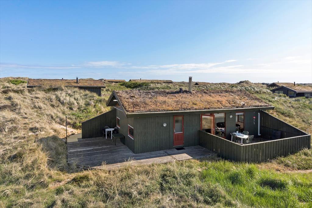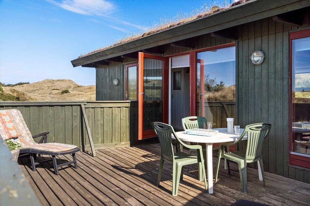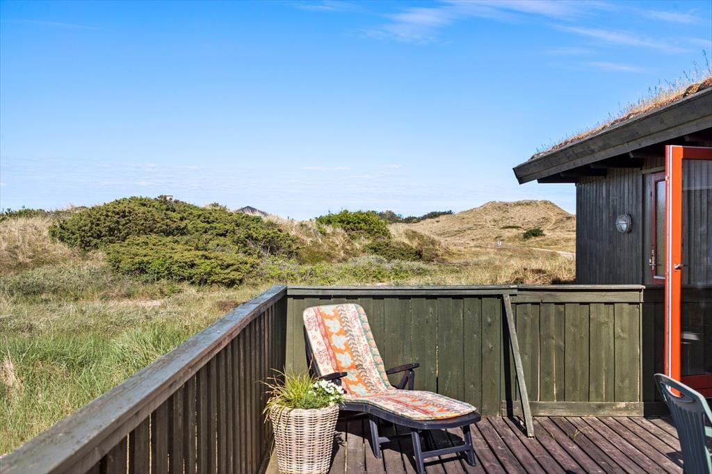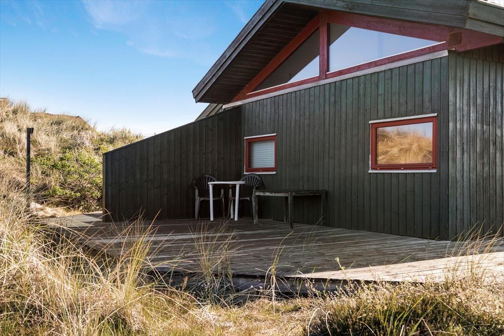 På husets dejlige terrasse er der rig mulighed for at nyde ferielivet i det fri. Her kan du starte dagen med morgenkaffen i solen, spise frokost i læ af huset eller slutte dagen af med grillmad, mens aftensolen kaster gyldne stråler over klitterne. Naturgrunden omkring huset indbyder til afslapning såvel som leg, og udsigten til klitterne giver en helt særlig stemning. Du kan tage hunden med på en frisk gåtur direkte fra huset, hvor stierne fører dig gennem den fredelige natur og ned til stranden – perfekt til både morgen- og aftenture.
