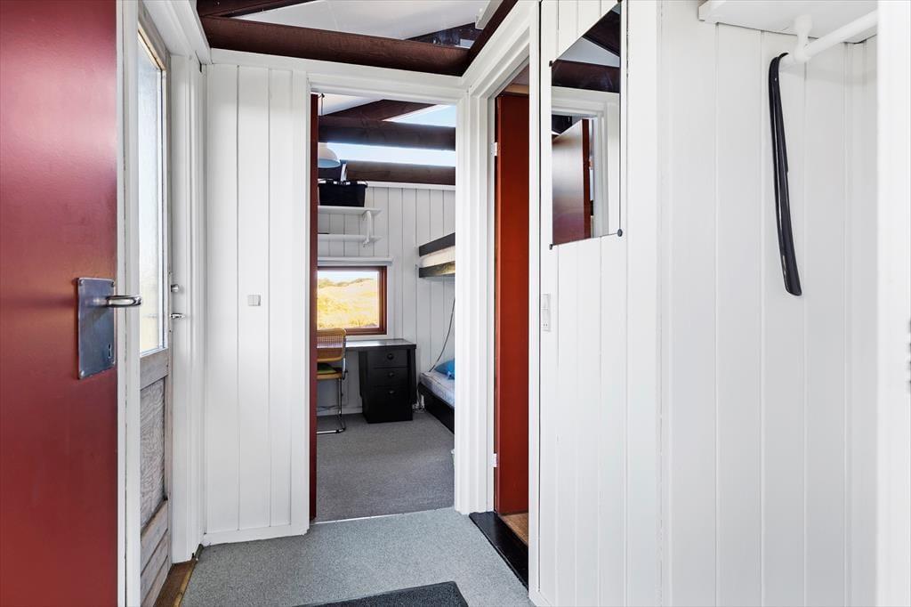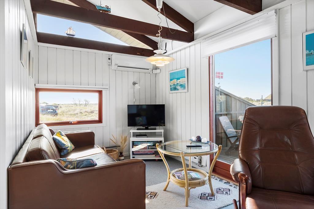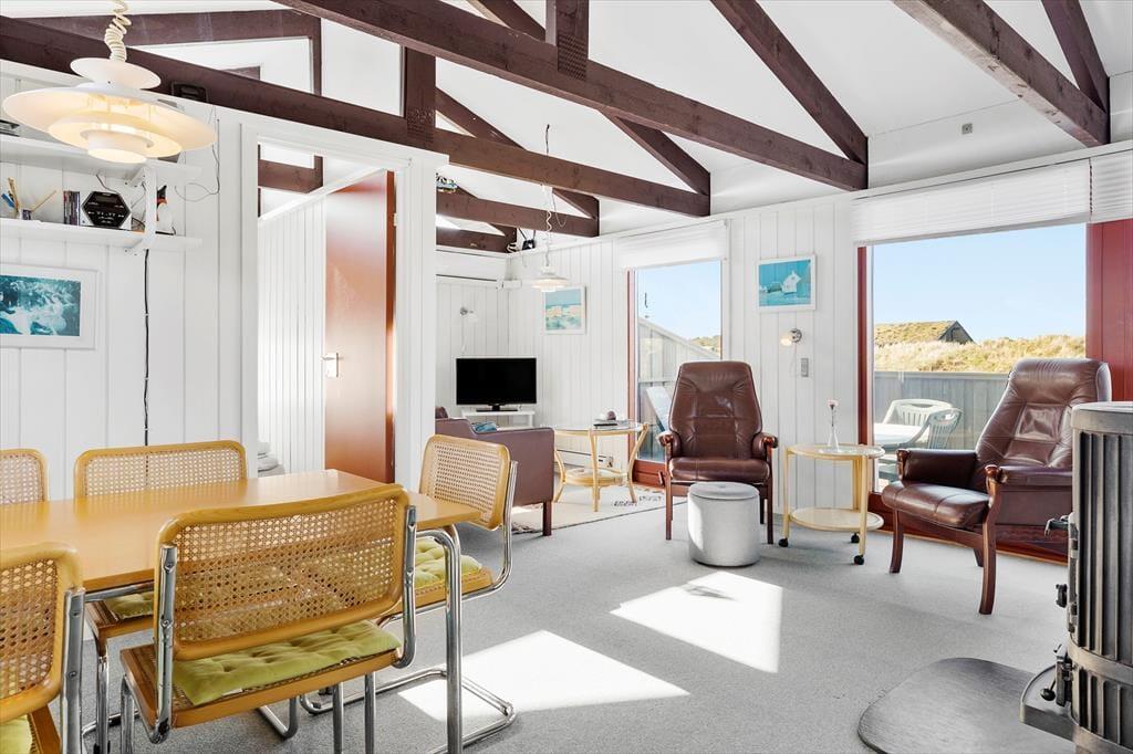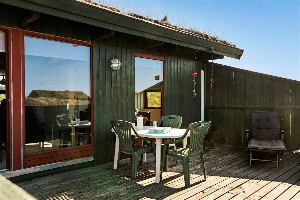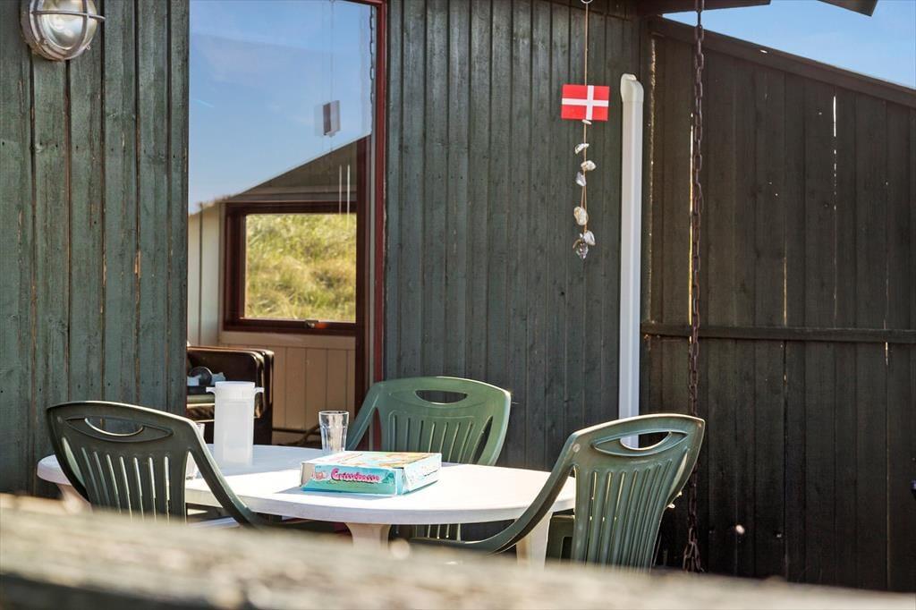 På husets dejlige terrasse er der rig mulighed for at nyde ferielivet i det fri. Her kan du starte dagen med morgenkaffen i solen, spise frokost i læ af huset eller slutte dagen af med grillmad, mens aftensolen kaster gyldne stråler over klitterne. Naturgrunden omkring huset indbyder til afslapning såvel som leg, og udsigten til klitterne giver en helt særlig stemning. Du kan tage hunden med på en frisk gåtur direkte fra huset, hvor stierne fører dig gennem den fredelige natur og ned til stranden – perfekt til både morgen- og aftenture.