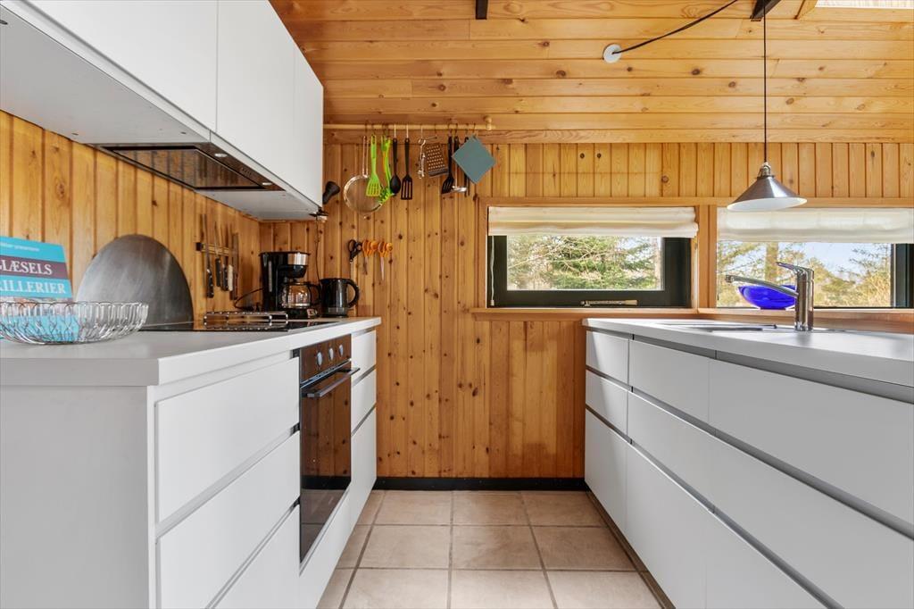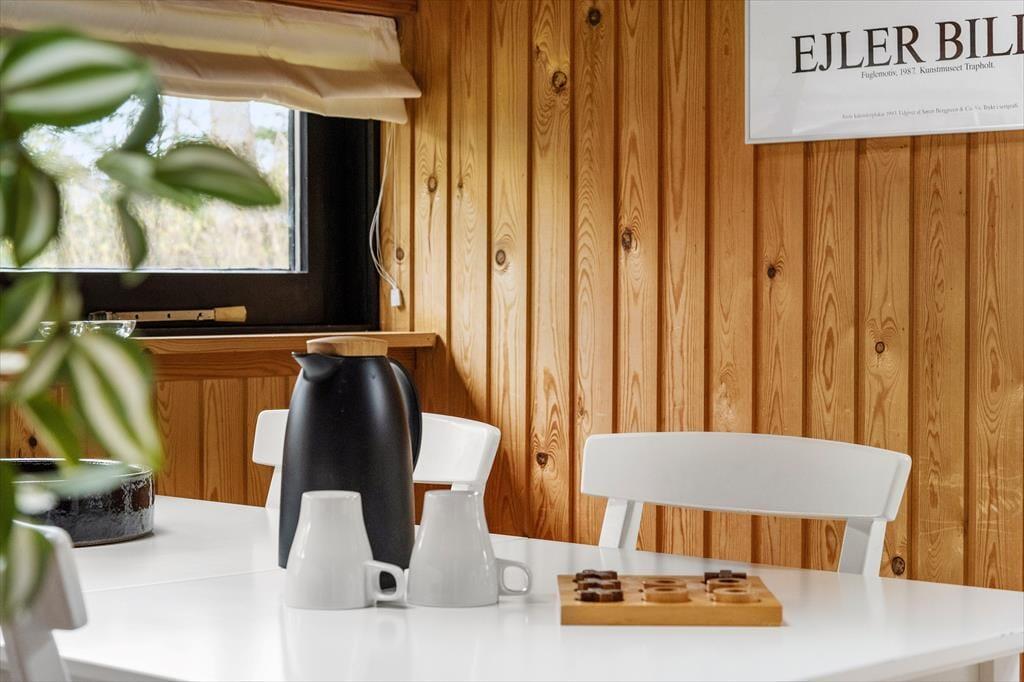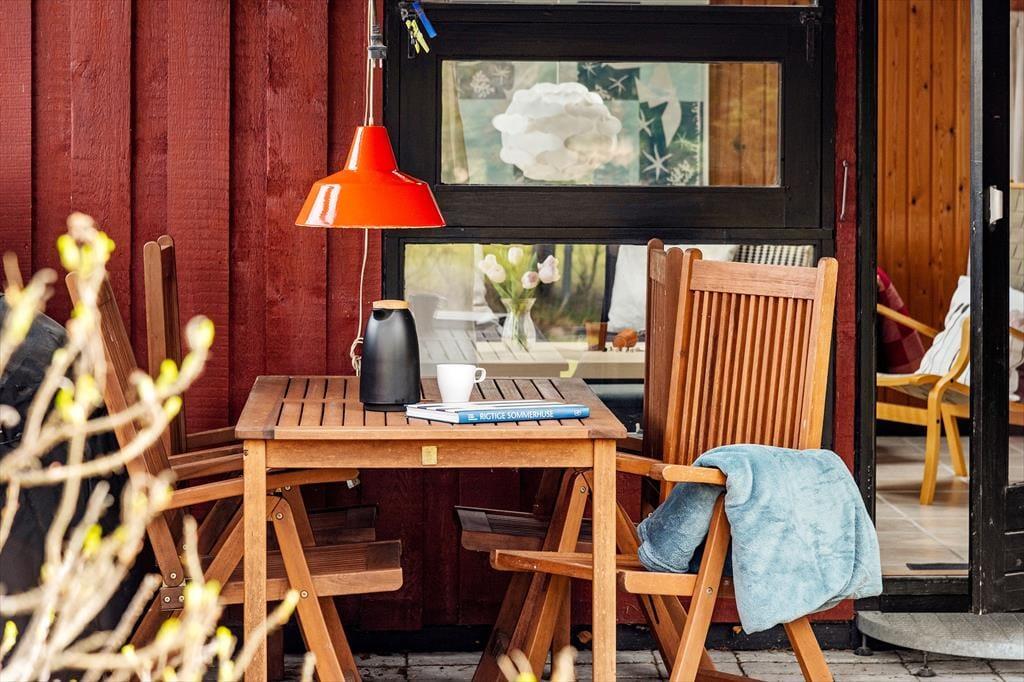Når sommervejret er lunt og lækkert, er det sikkert fristende at åbne stuens glasdør og rykke ud på terrassen på den grønne naturgrund. Der er en delvist overdækket terrasse på vestsiden af huset, mens den sydvendte er helt åben, så du kan lige tage bestik af sol- og vindforhold, inden du vælger din siddeplads. Hvis du vil skrue helt op for feriestemningen, kan du bære kølige forfriskninger ud i det fri og begynde at tænde op i havegrillen, så den er helt klar, når det er tid til at tilberede aftensmaden.
