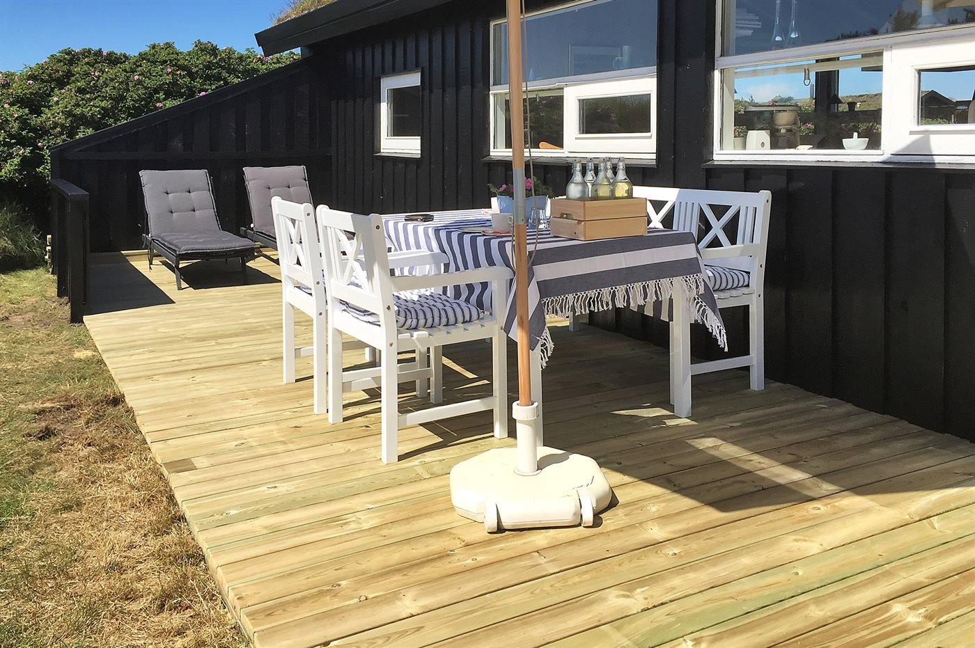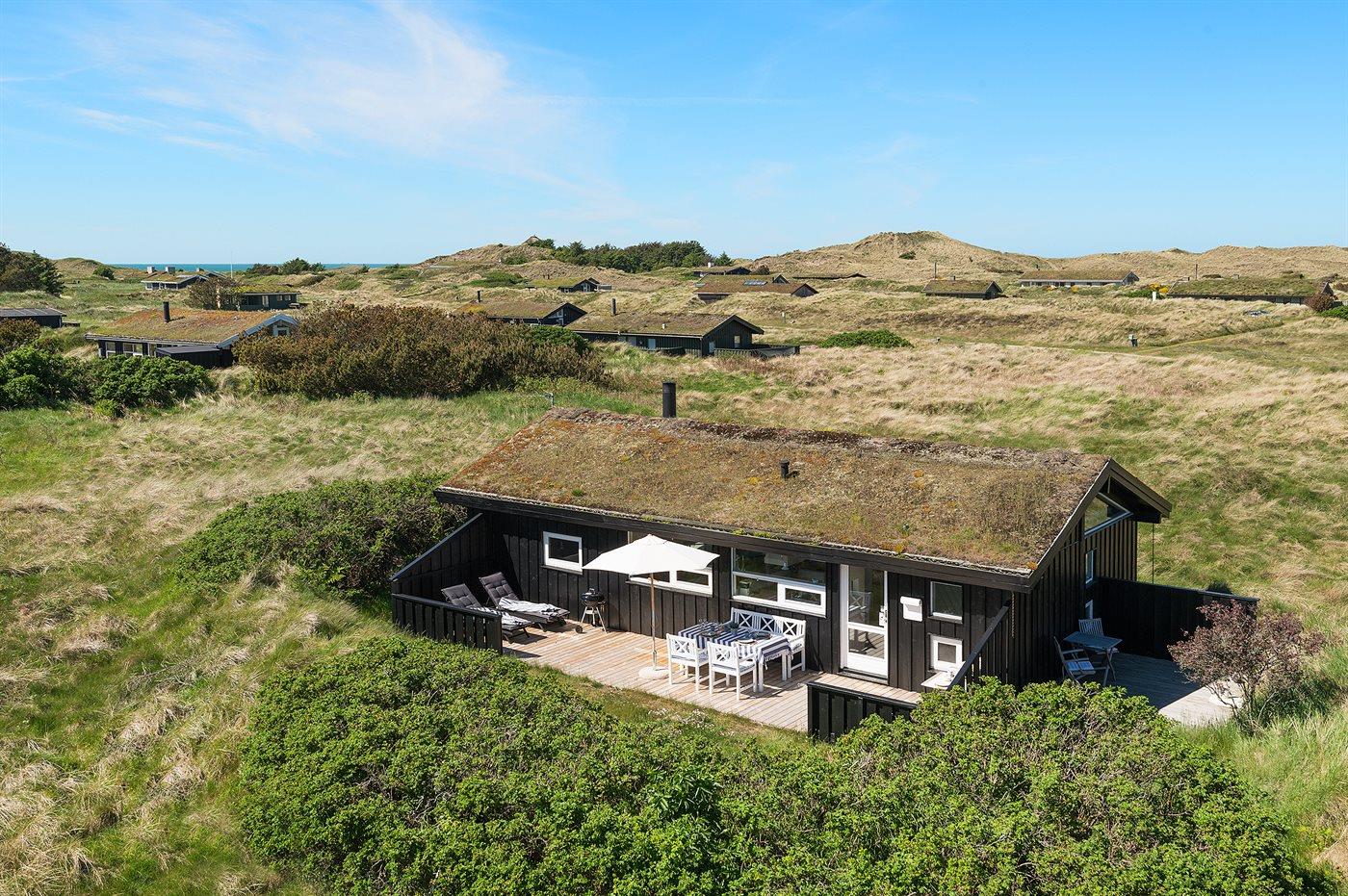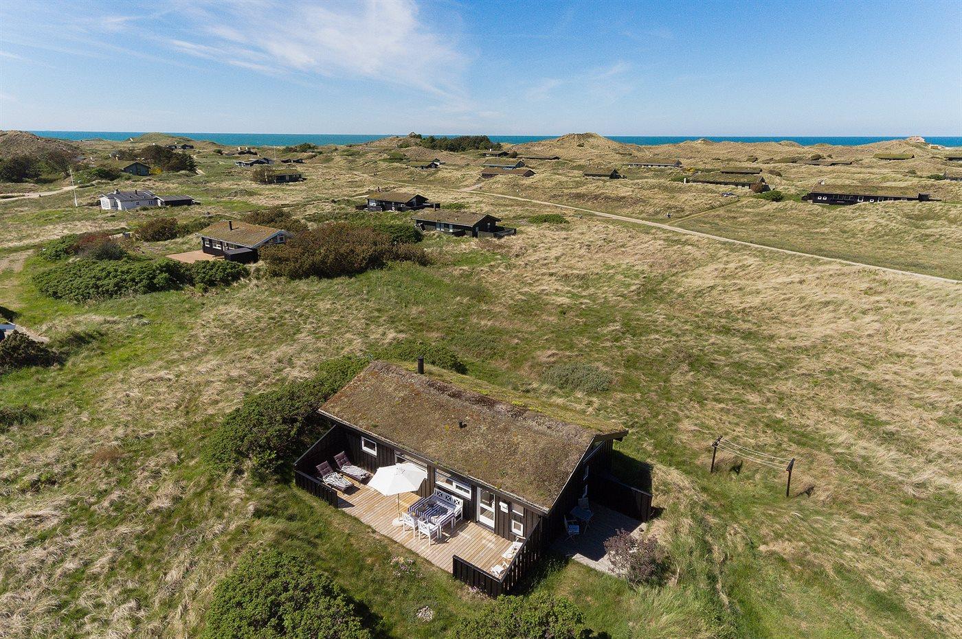 I smukt og varieret natur ligger dette skønne sommerhus tilbagetrukket på en meget stor og let kuperet grund i et roligt og attraktivt område nær dejlig sandstrand. Fra husets opholdsstue er der fri udsigt til klitterne og Dødningebakken med store naturoplevelser lige uden for døren. Ugenerte og læfyldte solterrasser omkring huset, hvor udelivet kan nydes.
