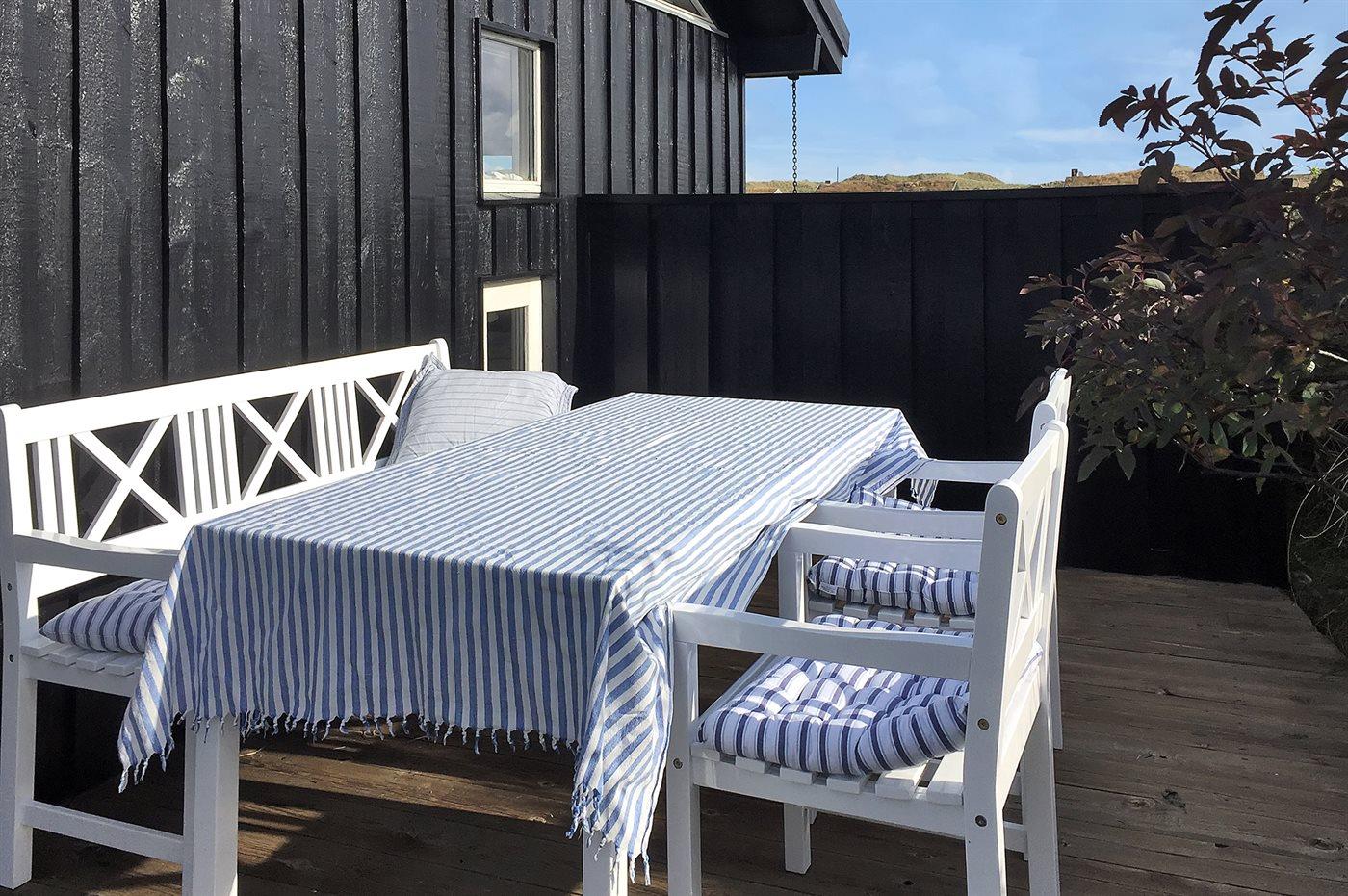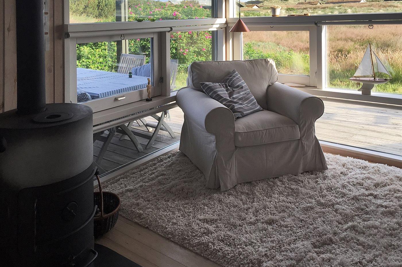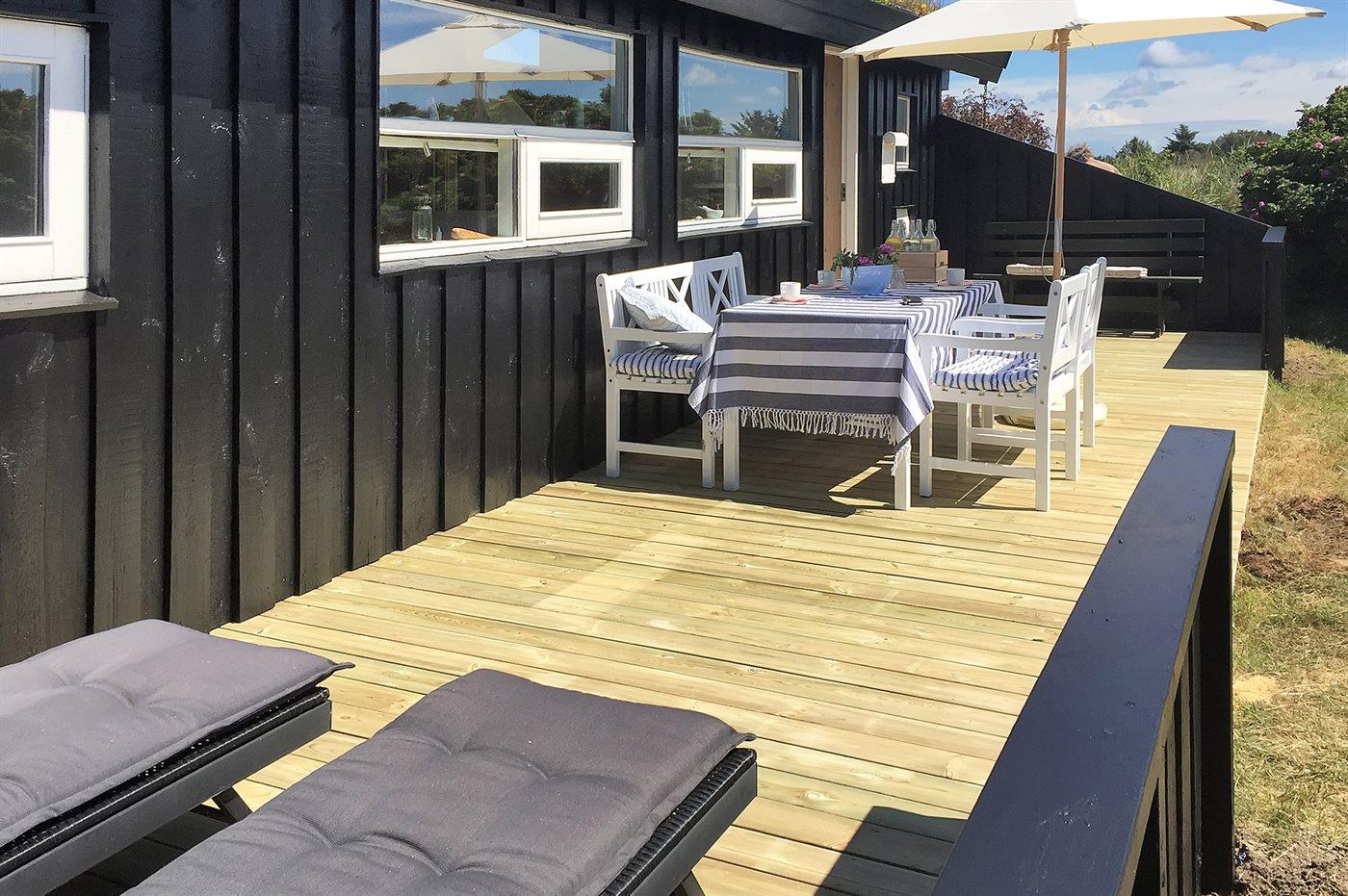 I smukt og varieret natur ligger dette skønne sommerhus tilbagetrukket på en meget stor og let kuperet grund i et roligt og attraktivt område nær dejlig sandstrand. Fra husets opholdsstue er der fri udsigt til klitterne og Dødningebakken med store naturoplevelser lige uden for døren. Ugenerte og læfyldte solterrasser omkring huset, hvor udelivet kan nydes.