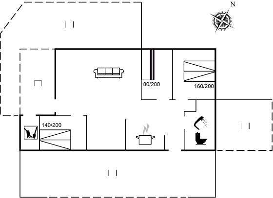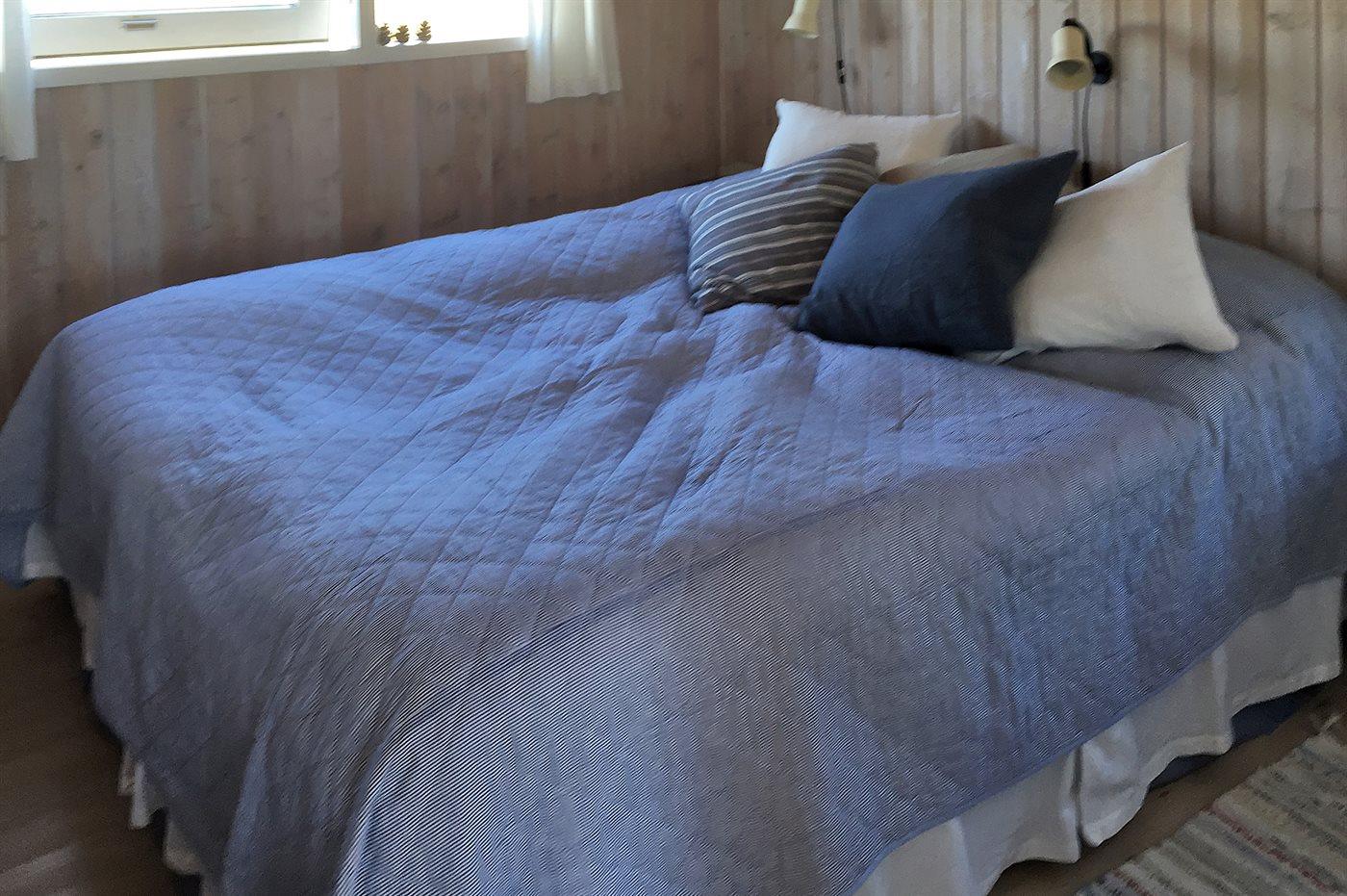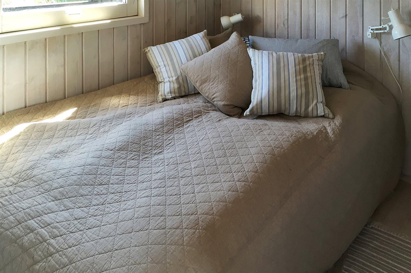 Der er i alt 3 soveværelser. Sovepladserne fordeler sig på: 4 sovepladser i dobbeltsenge. 2 sovepladser i køjeseng. Derudover er der 1 stk. barneseng.