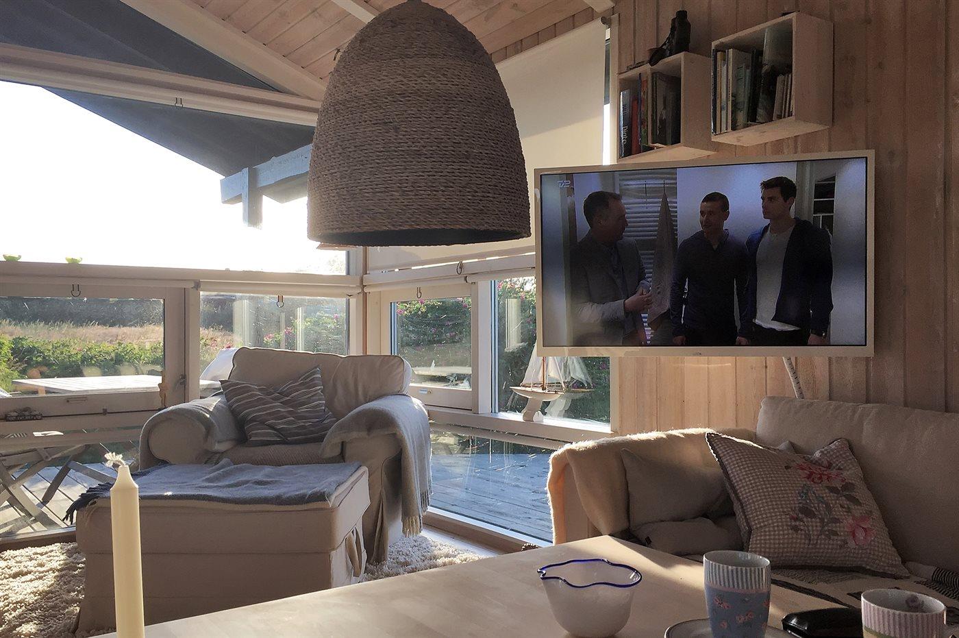 I ferieboligen er der 1 TV. DVD-afspiller. Radio. Stereoanlæg. CD-afspiller. Der er mindst 4 danske kanaler – alt andet er via streaming. Der er trådløst internet til rådighed.