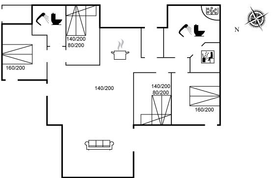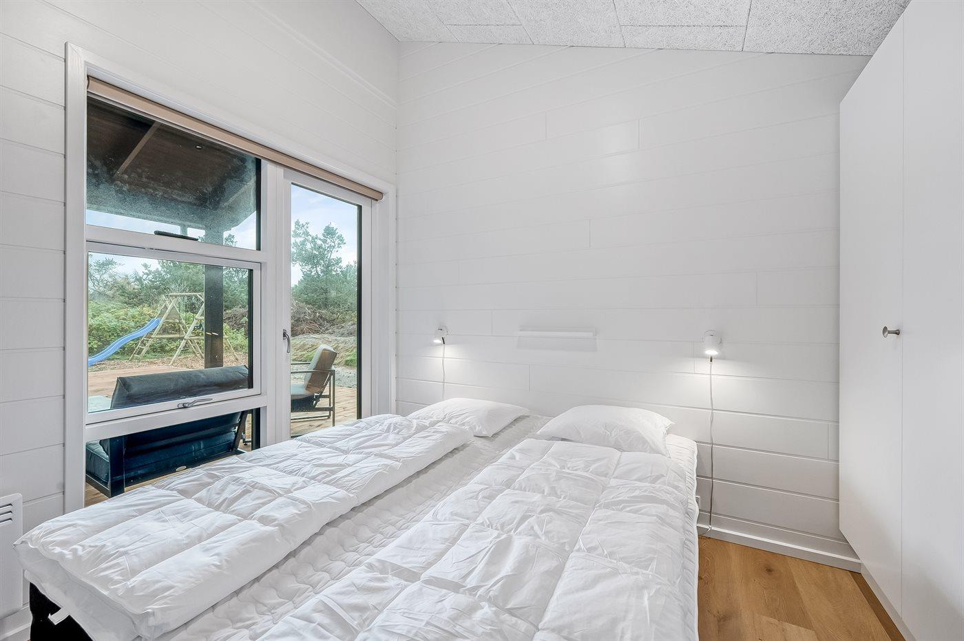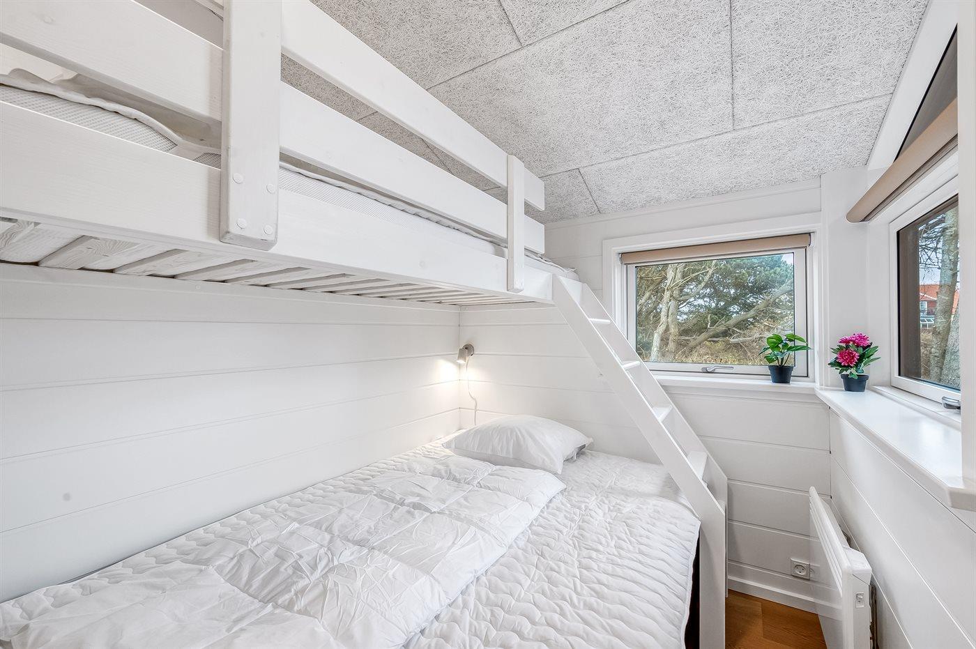 Der er i alt 4 soveværelser. Sovepladserne fordeler sig på: 8 sovepladser i dobbeltsenge. 2 sovepladser i køjeseng.