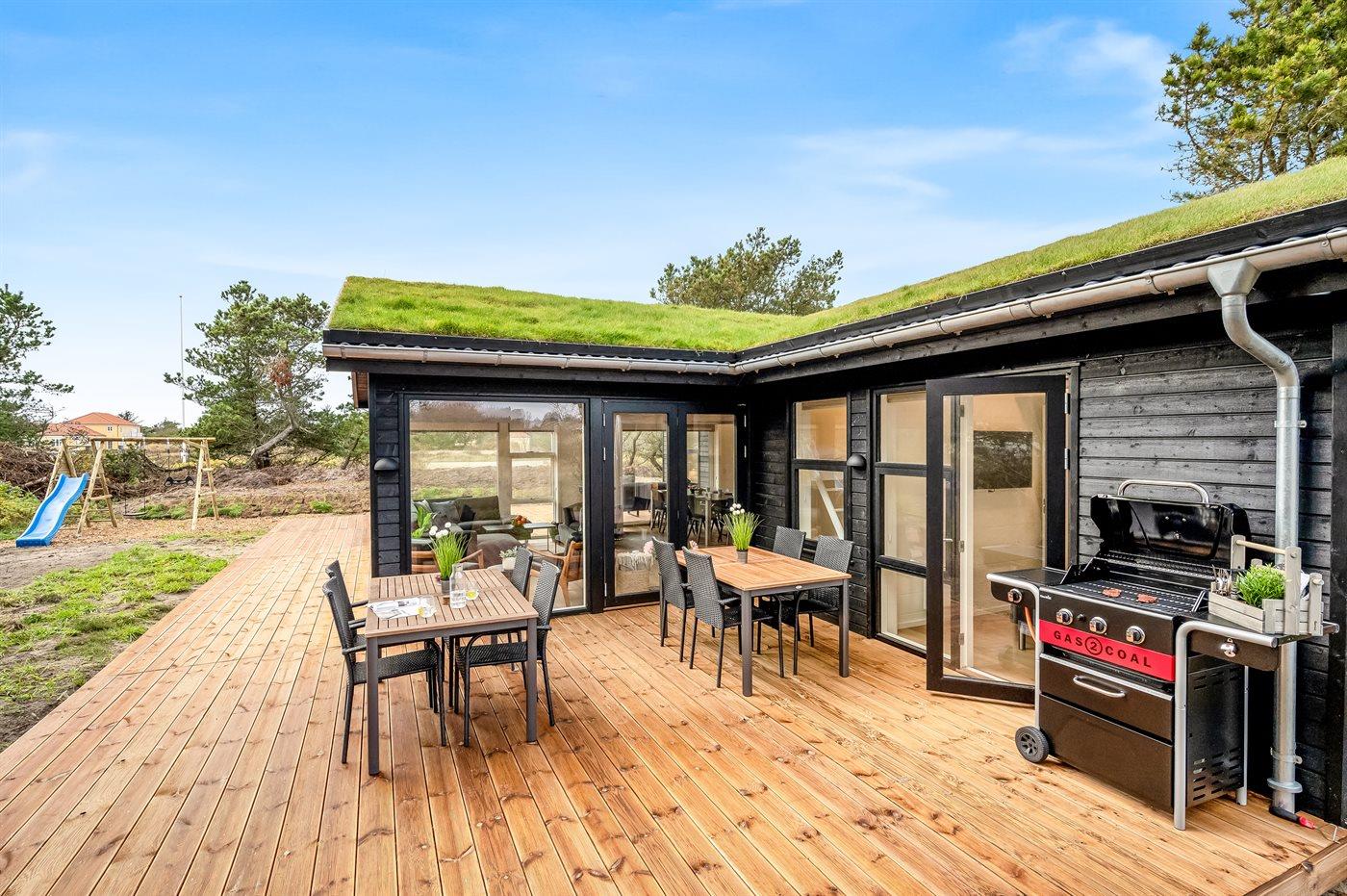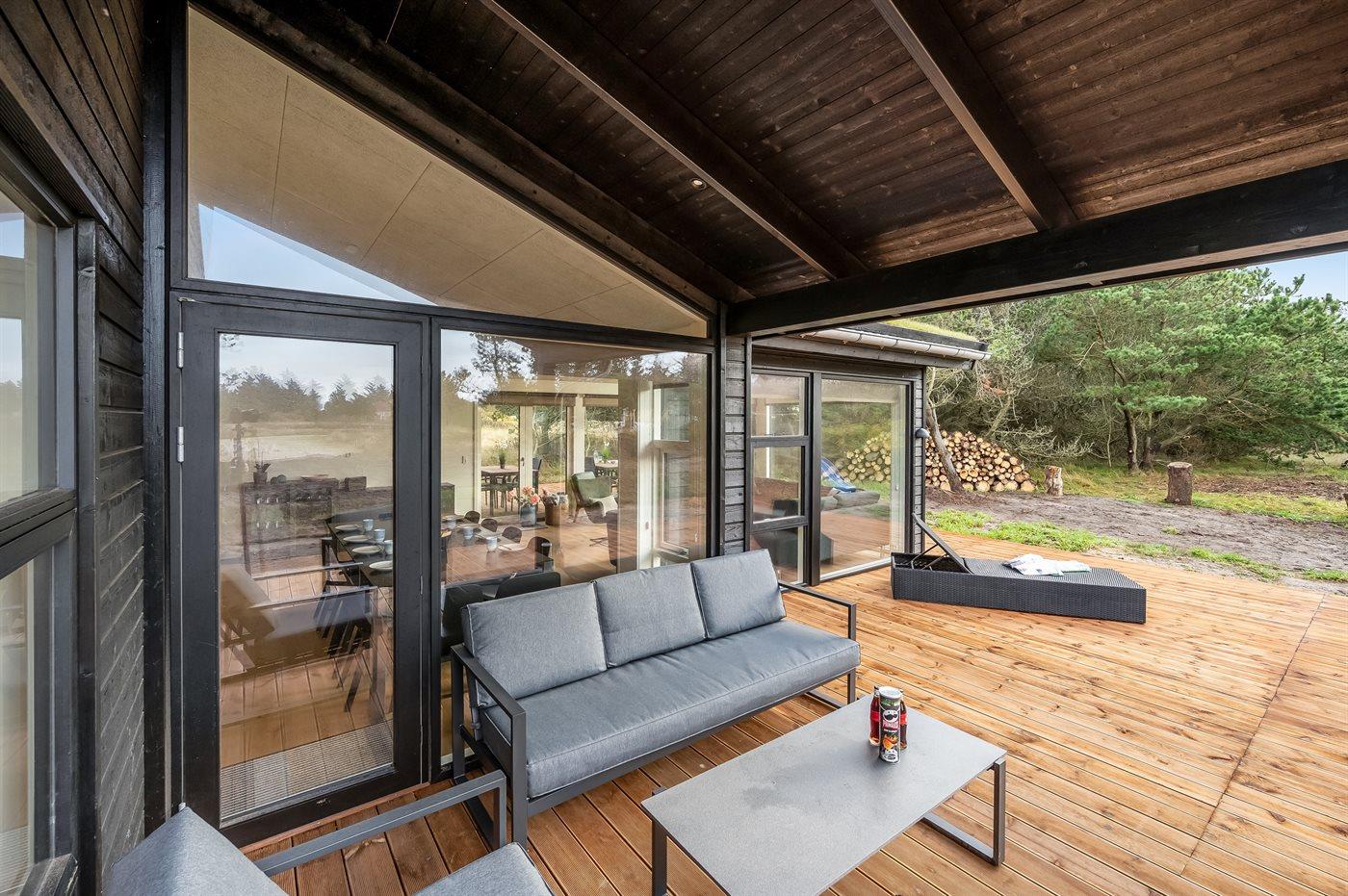 Ferieboligen er beliggende på en 2100 m² stor naturgrund. Der er 625 m til havet. Nærmeste forretning er beliggende i en afstand af 7500 m. Til ferieboligen hører åbent terrasseareal. Desuden er der overdækket terrasse. Gynge. Rutchebane. Grill til rådighed. Der er installeret stik til opladning af elbil. Parkering ved ferieboligen.