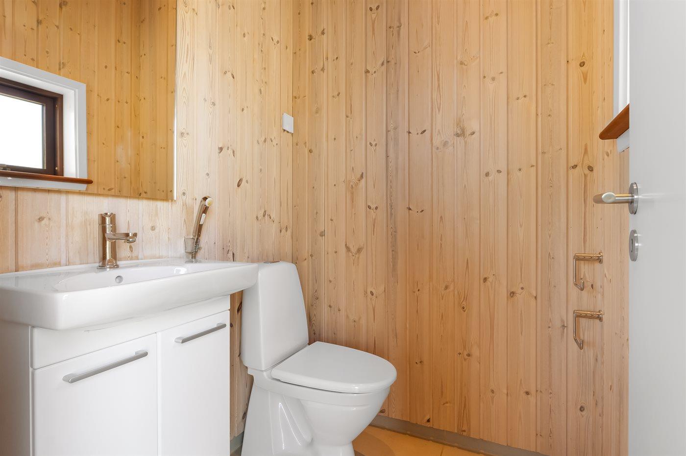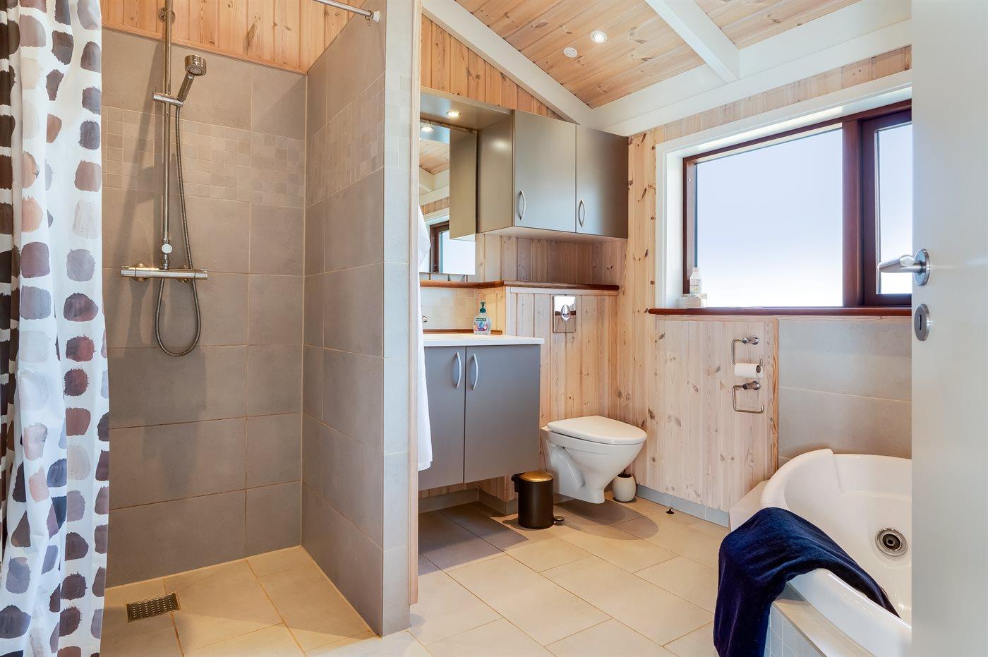 Der er 1 badeværelse med bruseniche og 2 toiletter, heraf 1 gæstetoilet. Der er gulvvarme på 1 badeværelse.