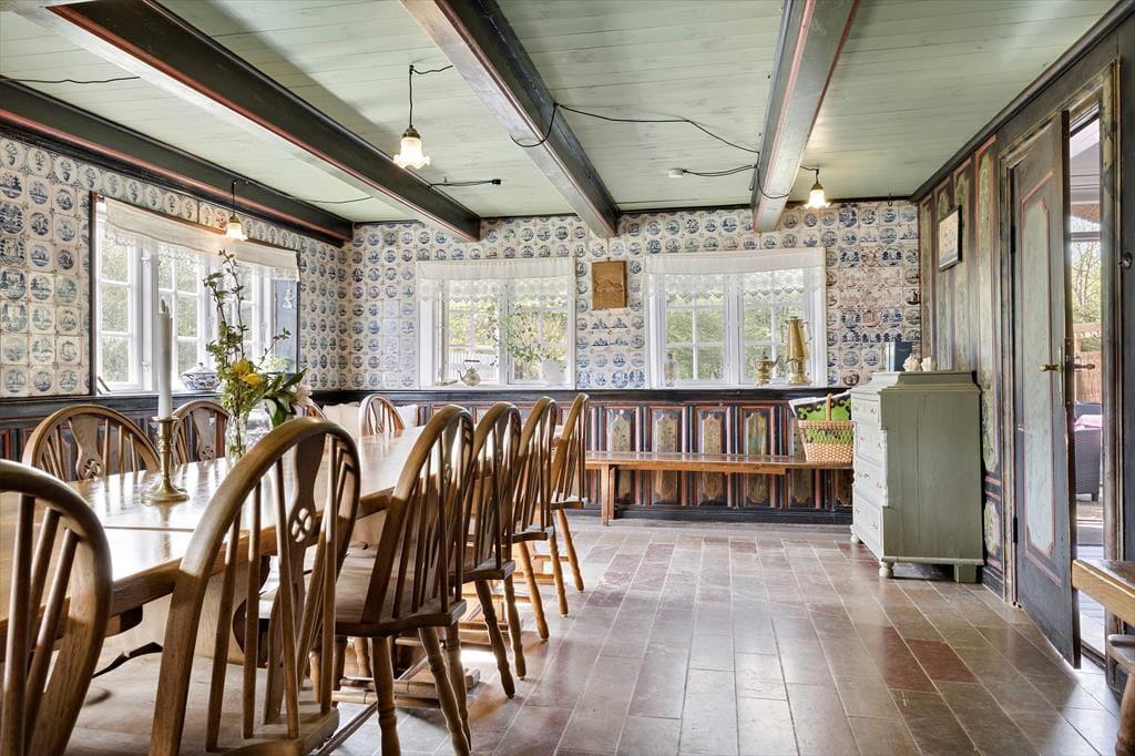Rundt omkring på Rømø kan du finde flere gamle kommandørgårde, og netop Poppelgården går helt tilbage til storhedstiden, hvor øens kommandører sejlede ud som kaptajner på store hvalfangerbåde. Et oprids af gårdens historie kan du finde længere nede på denne side – her skal det blot bemærkes, at der er sket meget i mellemtiden, for gården har sidenhen været anvendt som både B&B og vandrehjem, og nu bliver den udlejet som feriebolig med fire separate enheder. I netop denne enhed er der plads til 16 personer, og planløsningen breder sig over to etager med soveværelser både oppe og nede. Husets to badeværelser og ene gæstetoilet ligger alle i stueplan – og det er også her på etagen, at du finder det store og veludstyrede køkken samt de skønne opholdsrum, der tæller blandt andet et aktivitetsrum med bordtennisbord og en stue med elpejs, sofa og fladskærms-tv. Det allersmukkeste rum er spisestuen, der har hollandske fliser på væggene, almuemalede paneler og andre detaljer, der hører en klassisk kommandørgård til. Her mærker du for alvor historiens vingesus, og det er et herligt sted at nyde et lækkert måltid mad i godt selskab.